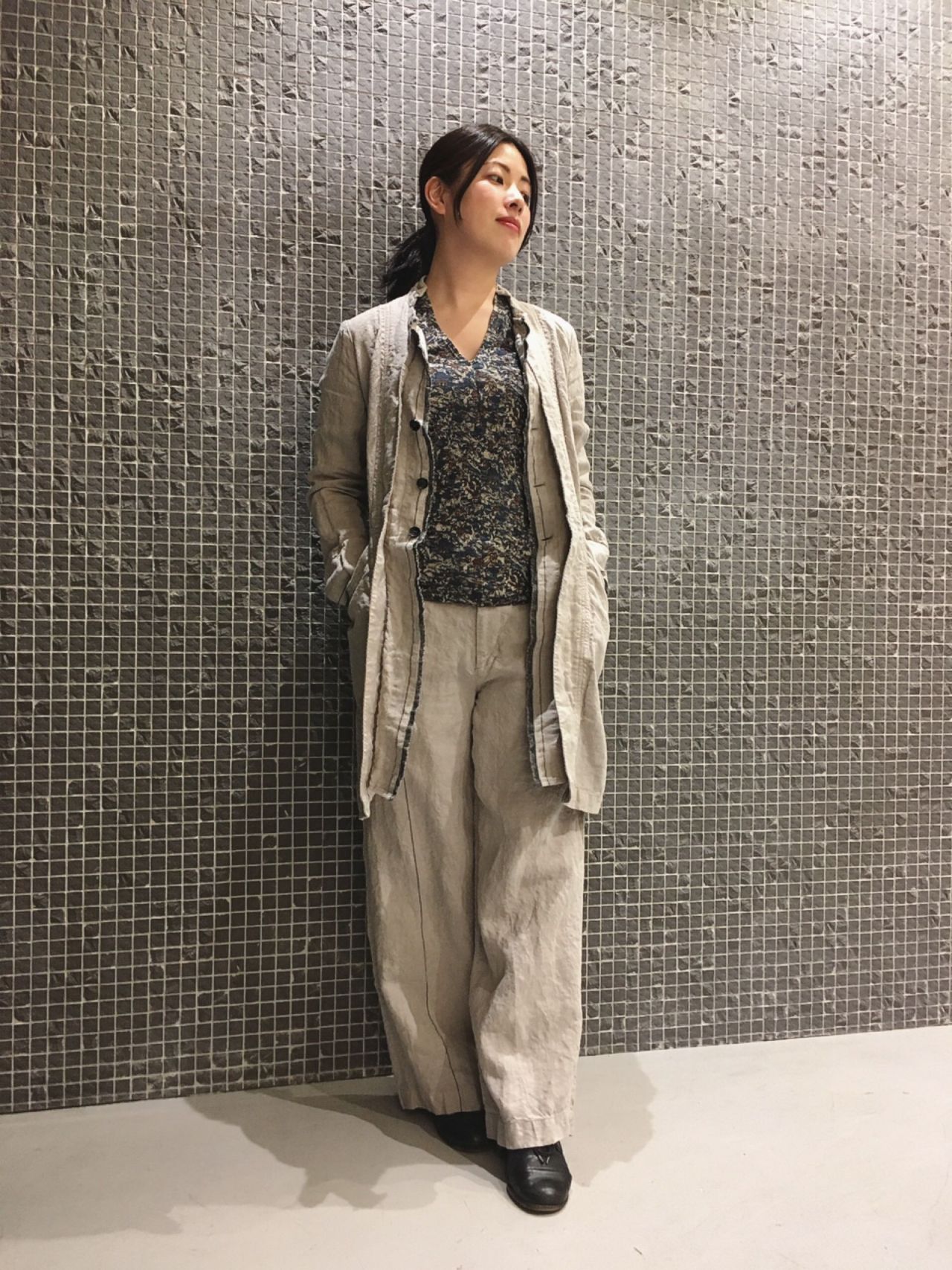 先染めリネンコート
