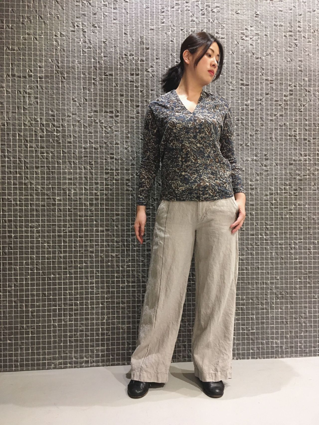 地柄プリント長袖