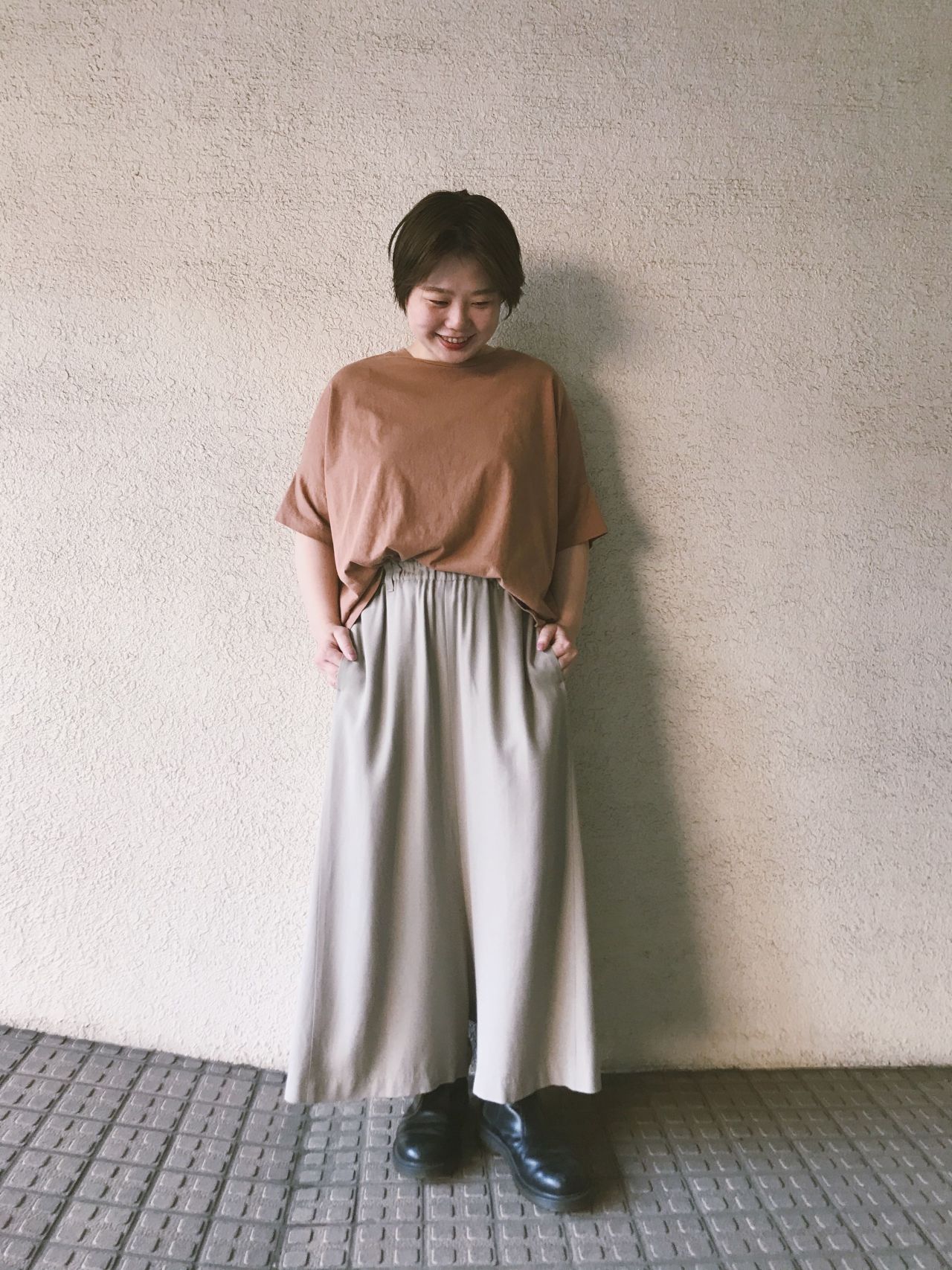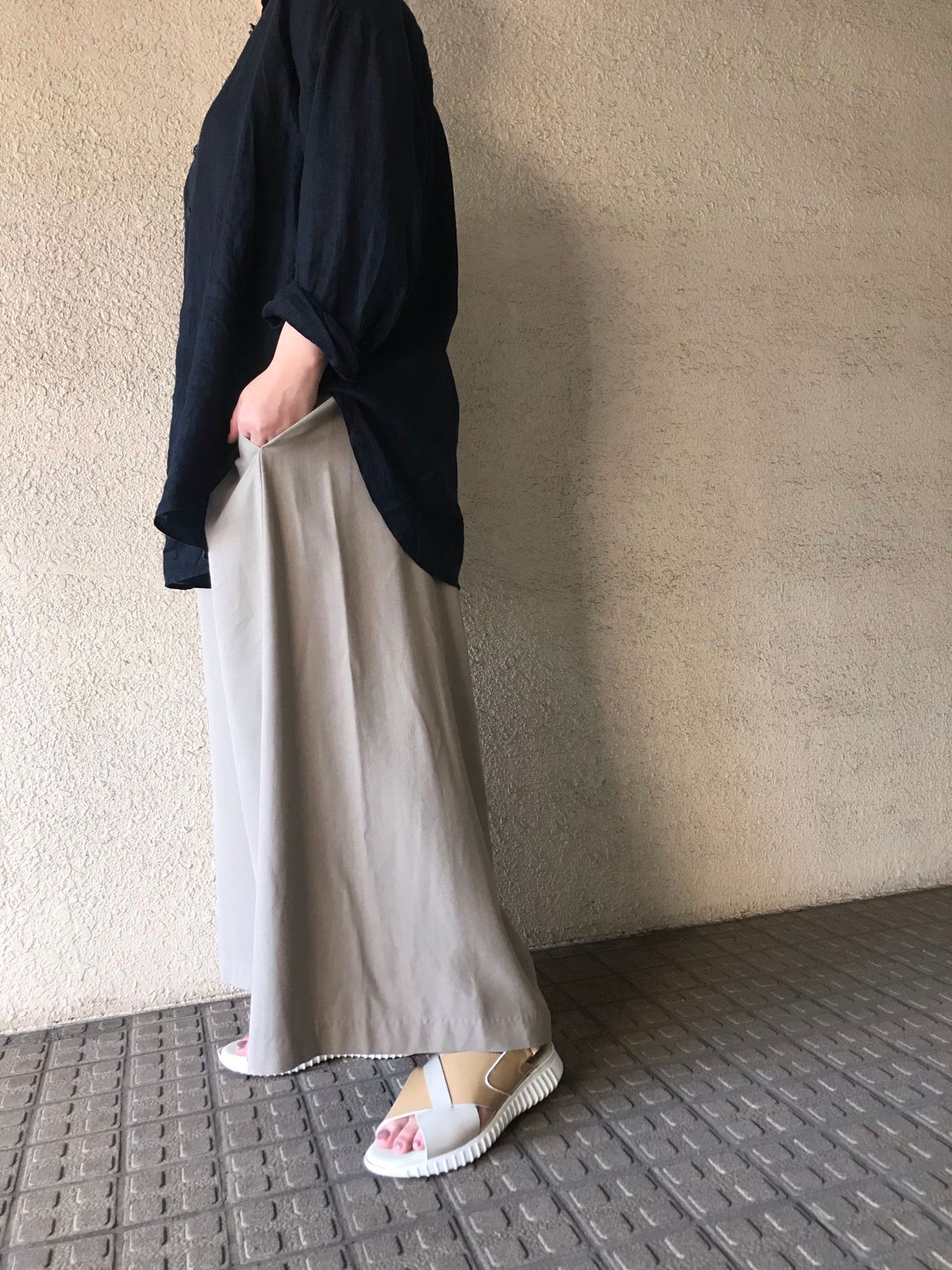 こちらのサルエルパンツは、展示会から注目していたアイテムで、この綺麗なベージュと、クリーンな生地に目が止まりました。