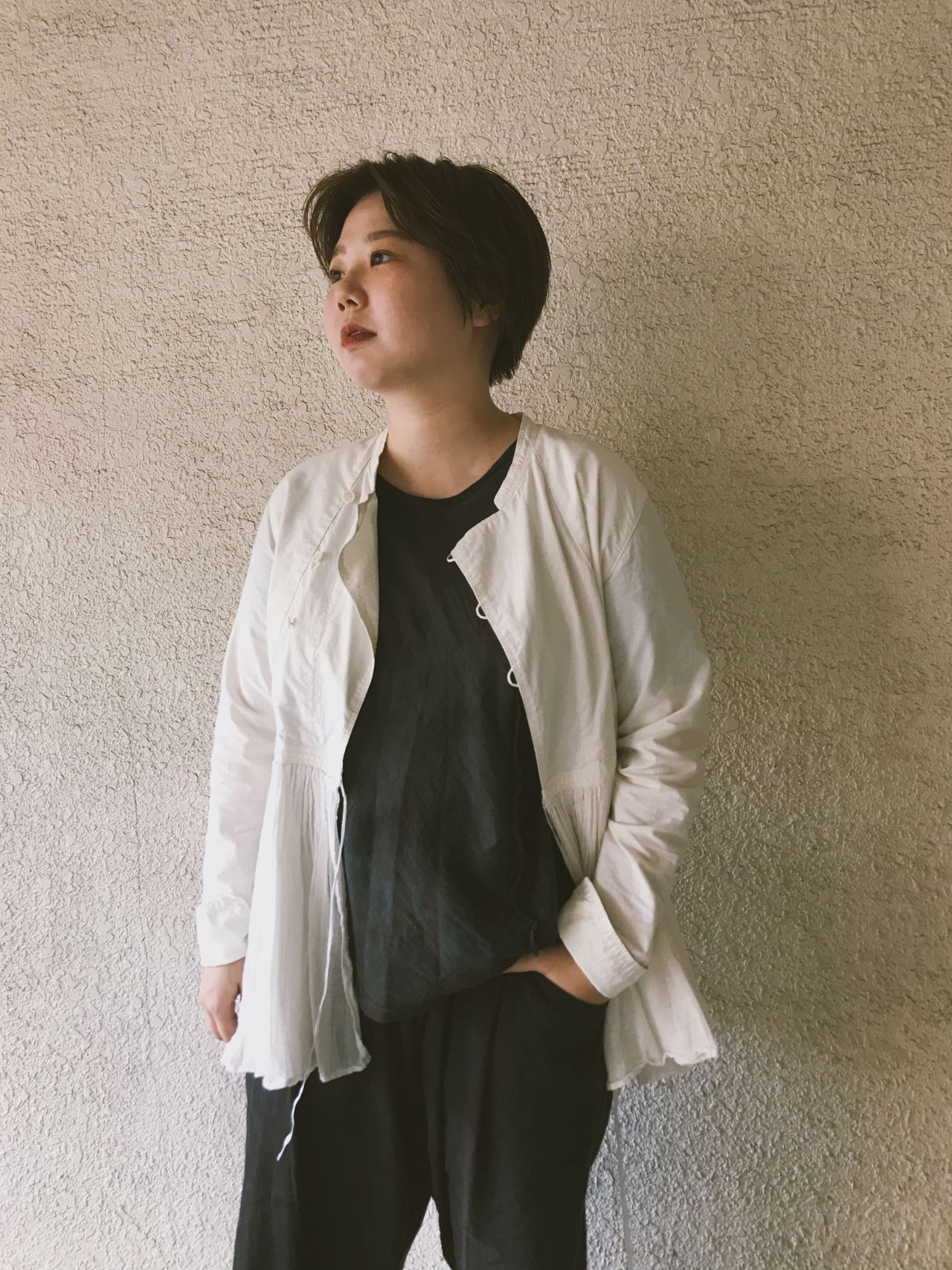 こちらのジャケットは切り替えの位置、柔らかいインドガーゼが女性らしい印象。