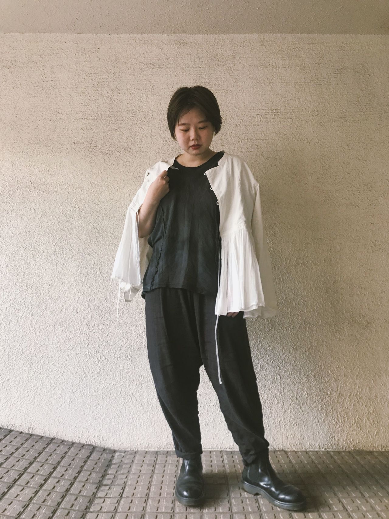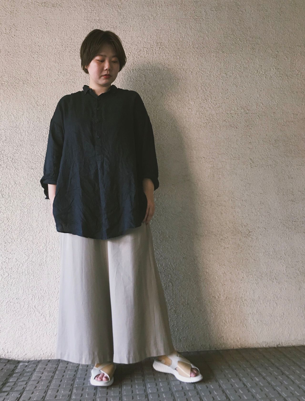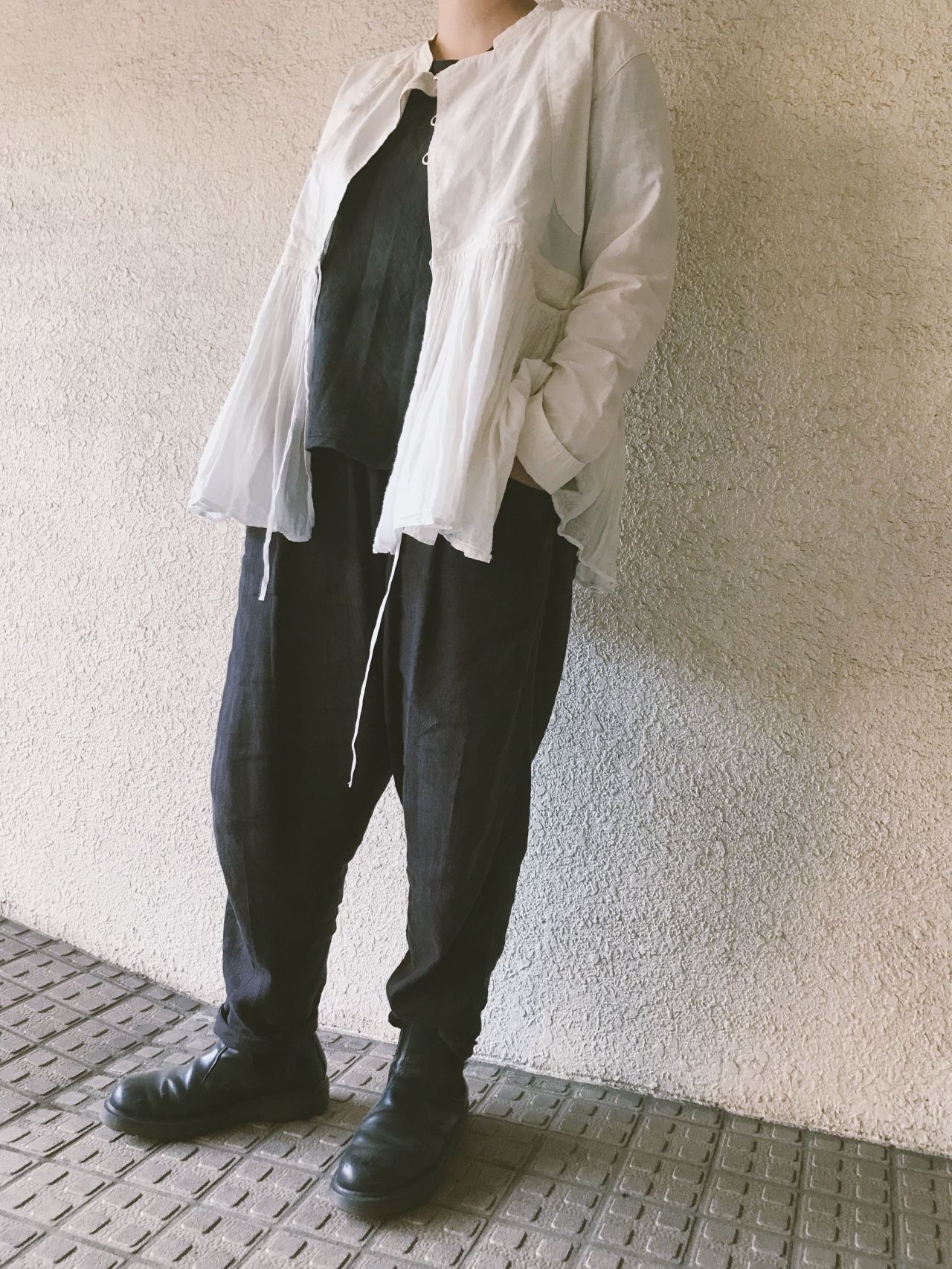 サルエルパンツにあわせたいアイテムが1つ。2016年の麻世妙平のブラウスです。今回ご紹介したジャケットにも使われている生地で、シルエットが好きなのはもちろん、使用を重ねるたびに風合いが柔らかくなり、とにかくお洗濯した際の乾きがはやい、、優れものです。