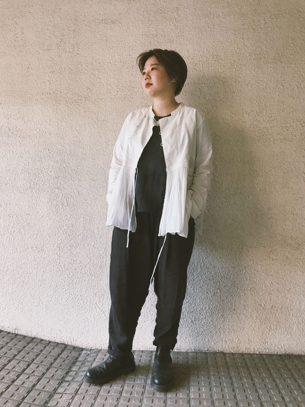 本日は同じアイテムで、千葉がマニッシュなスタイリングをお届けします。