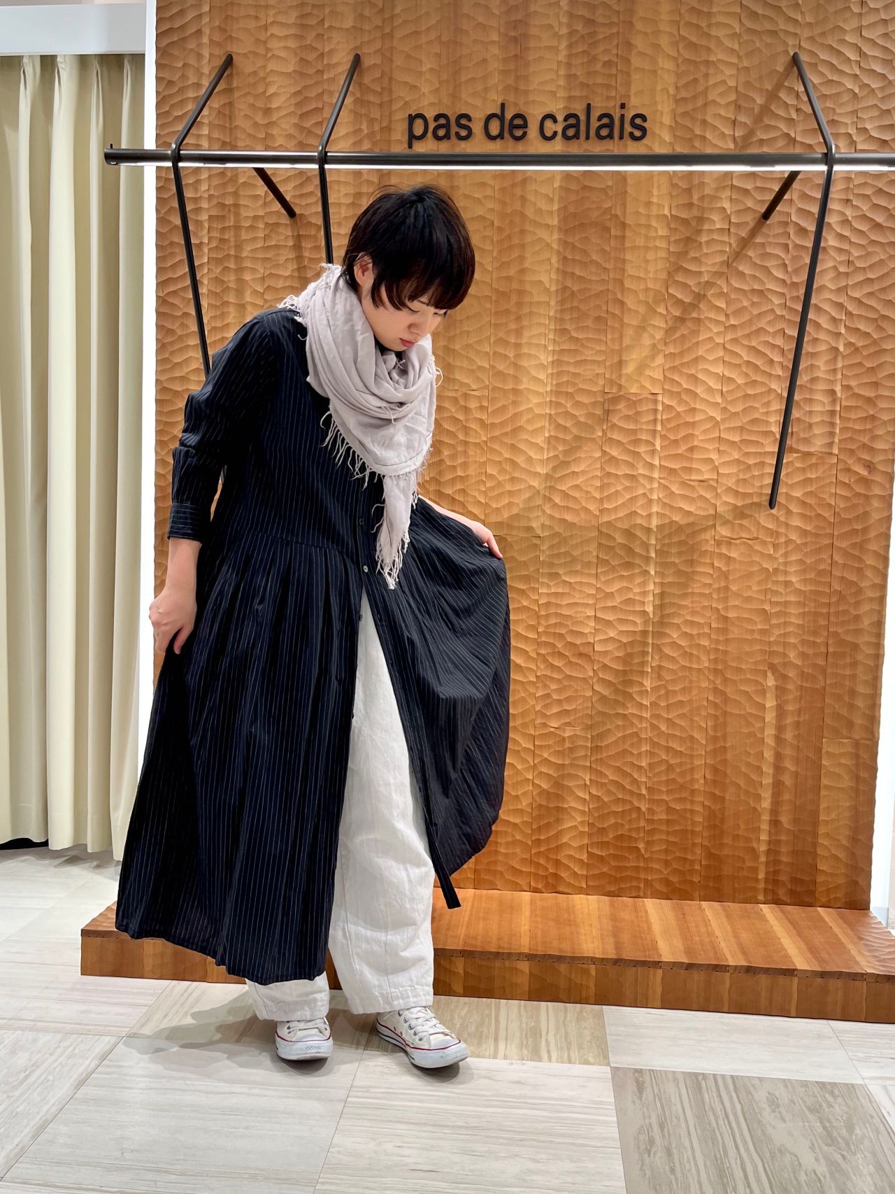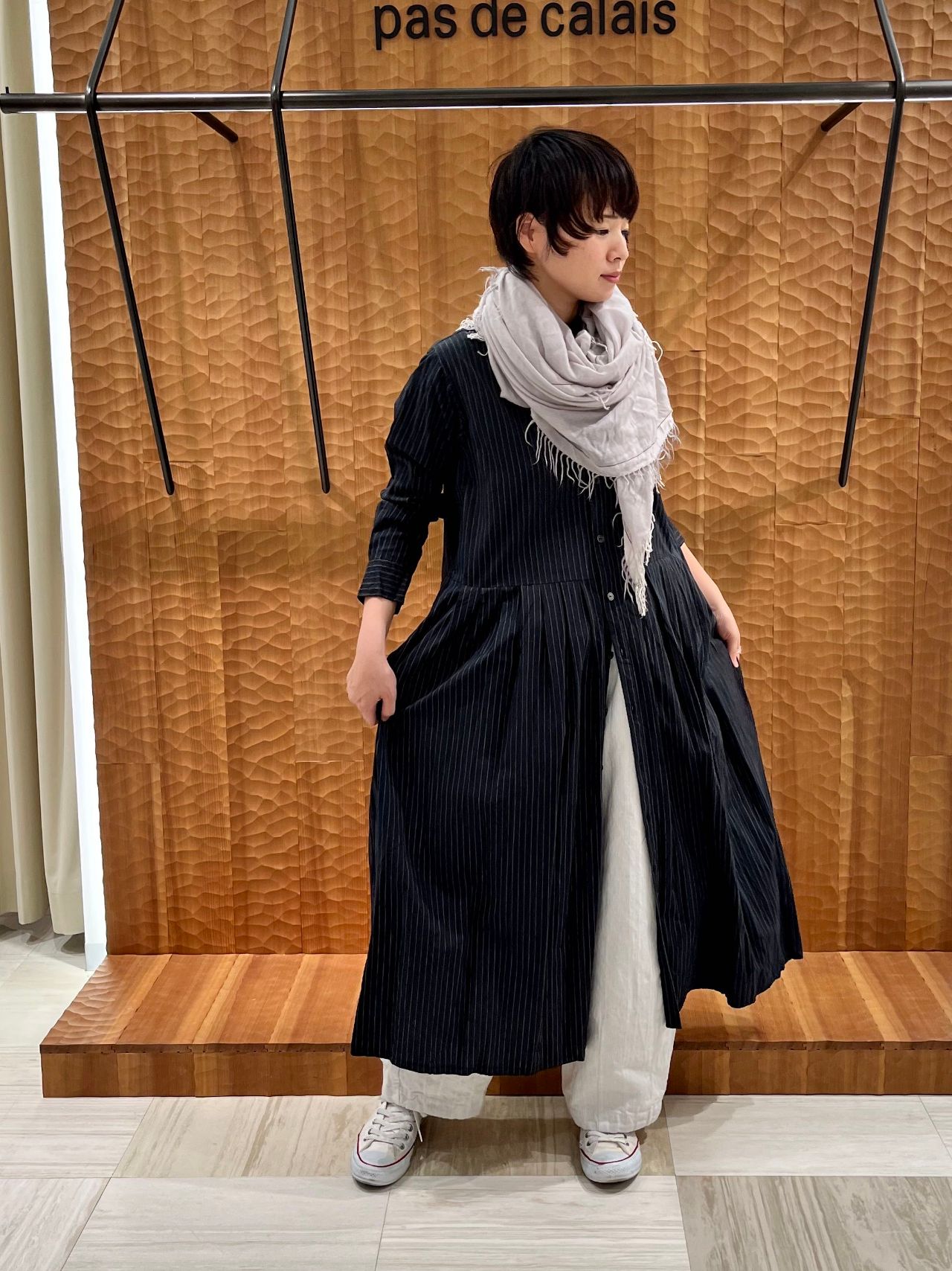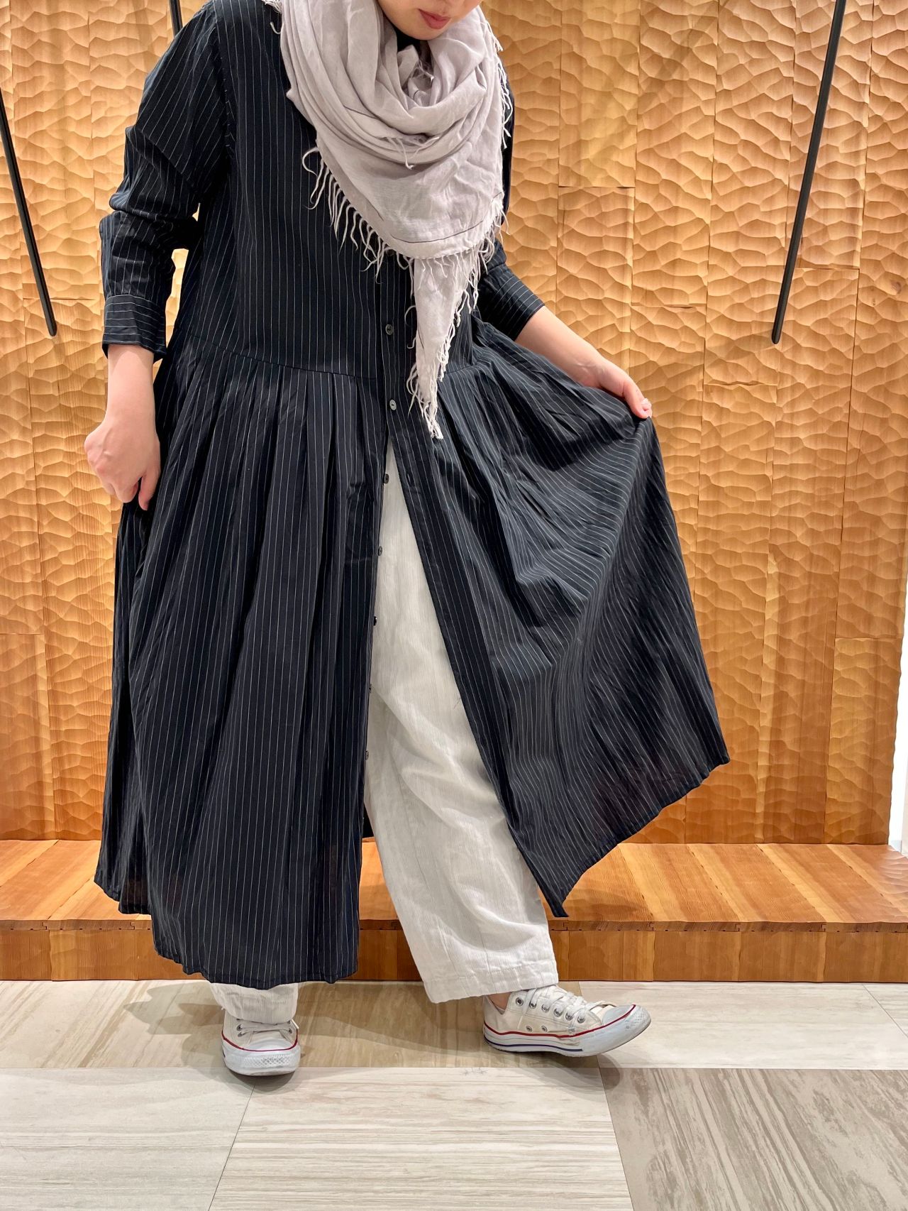 本日は新作の綿麻ストライプワンピースをご紹介します。