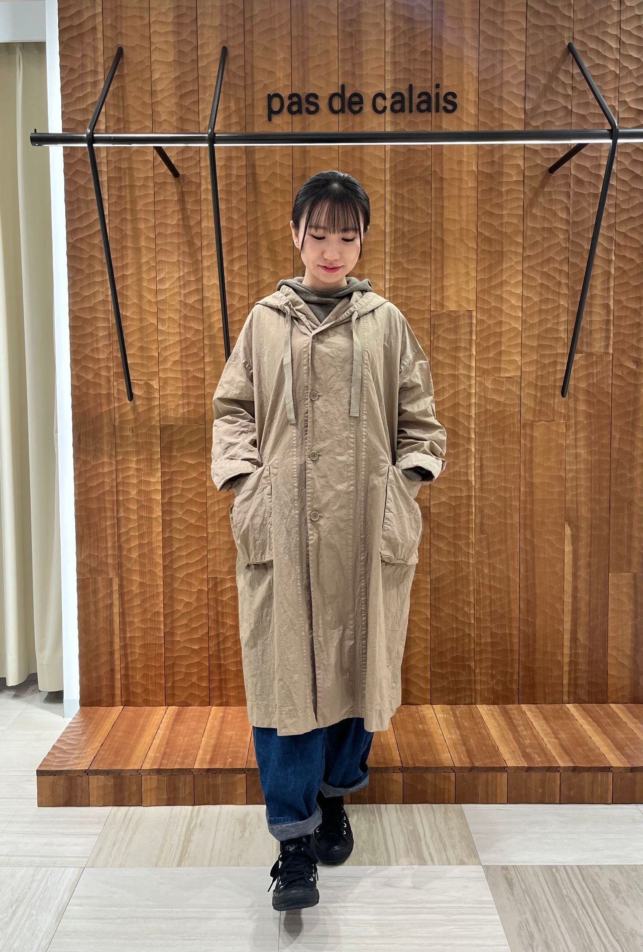 軽さが魅力のフーデッドコートは、センターバックにインバーテッドプリーツがあることでボリューム感のあるシルエットです。