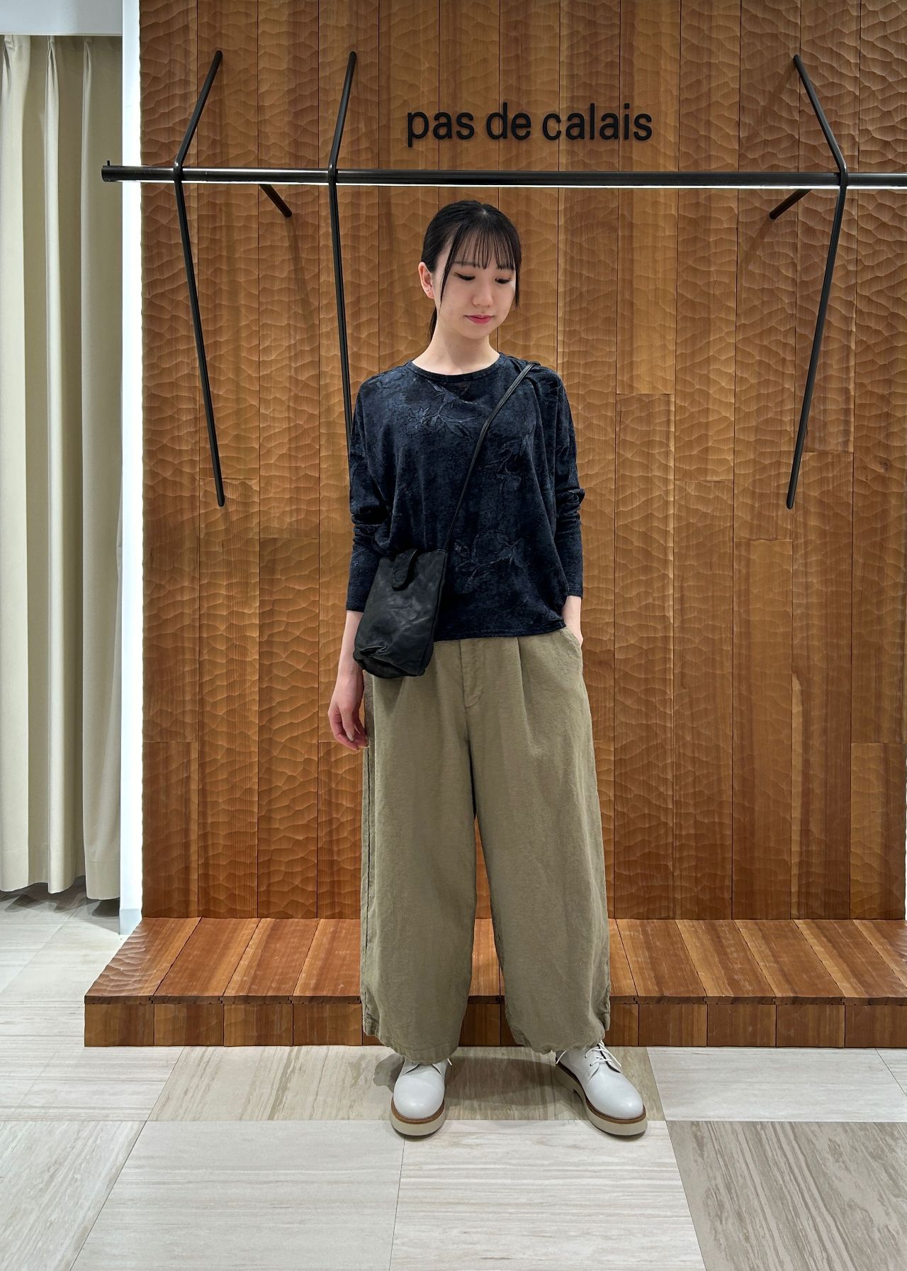 肩やバストまわりはゆったりの長袖プルオーバー。ルーズになりすぎないよう裾に向けてスッキリとしたラインになっています。