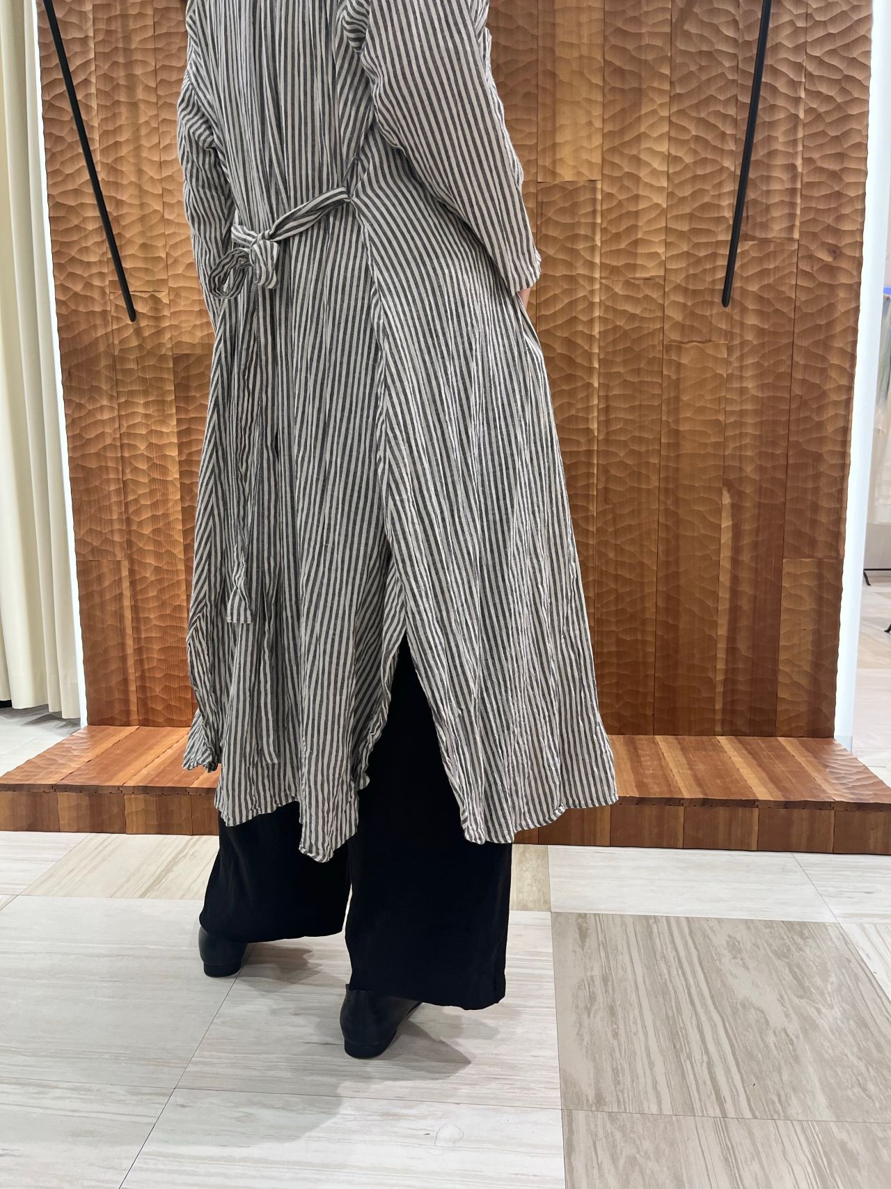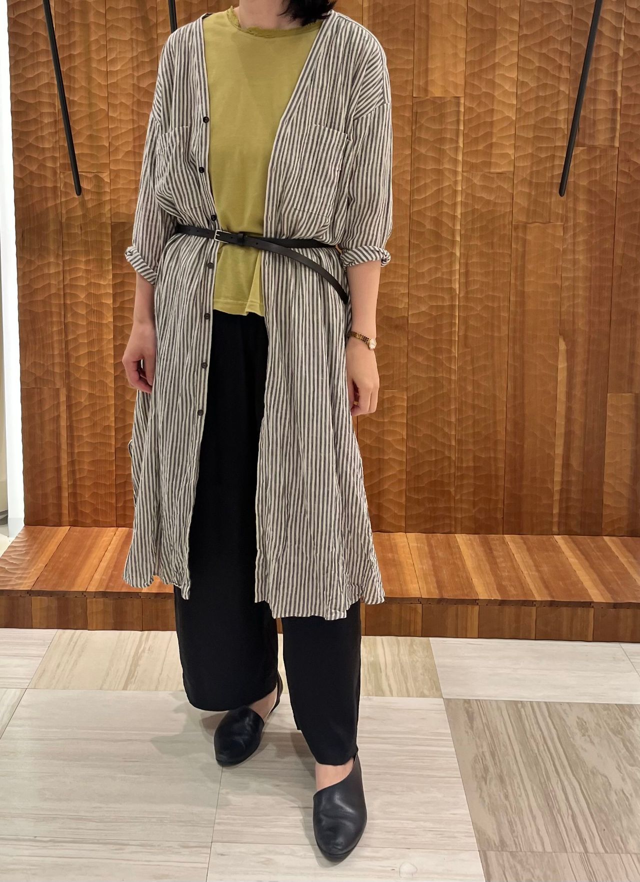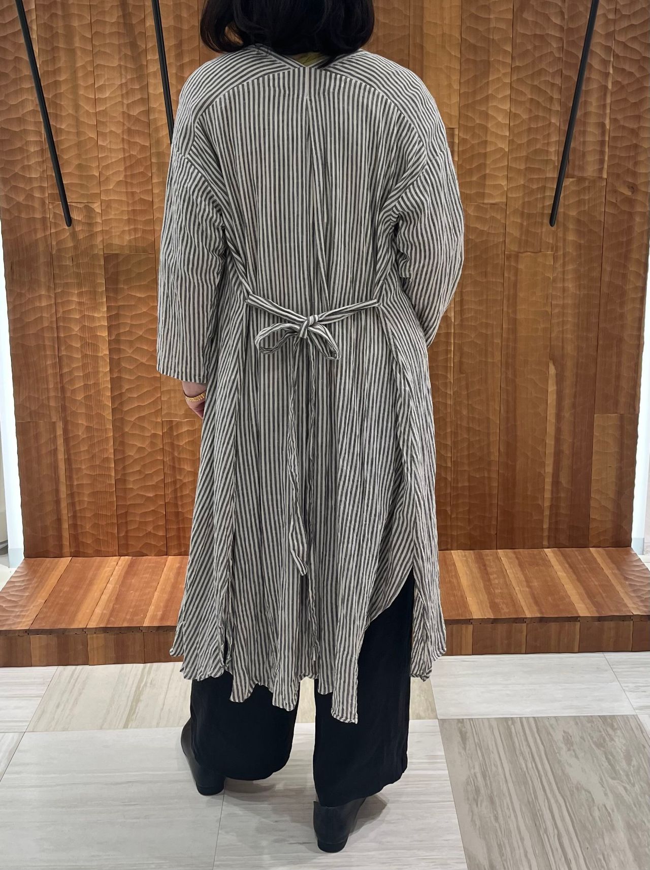 すっきりとしたVネックのデザインで、一枚でワンピースとしても、フロントを開けて羽織としても着回せます。