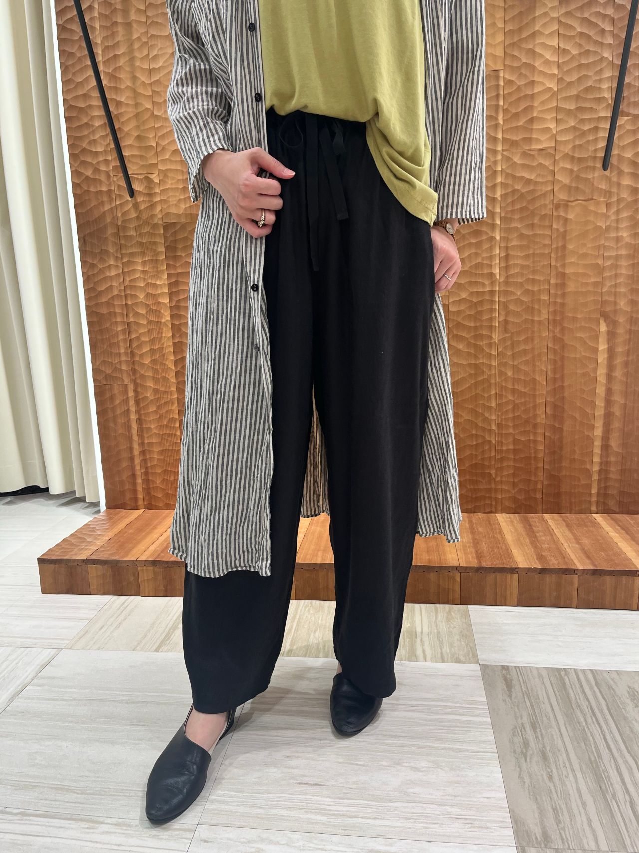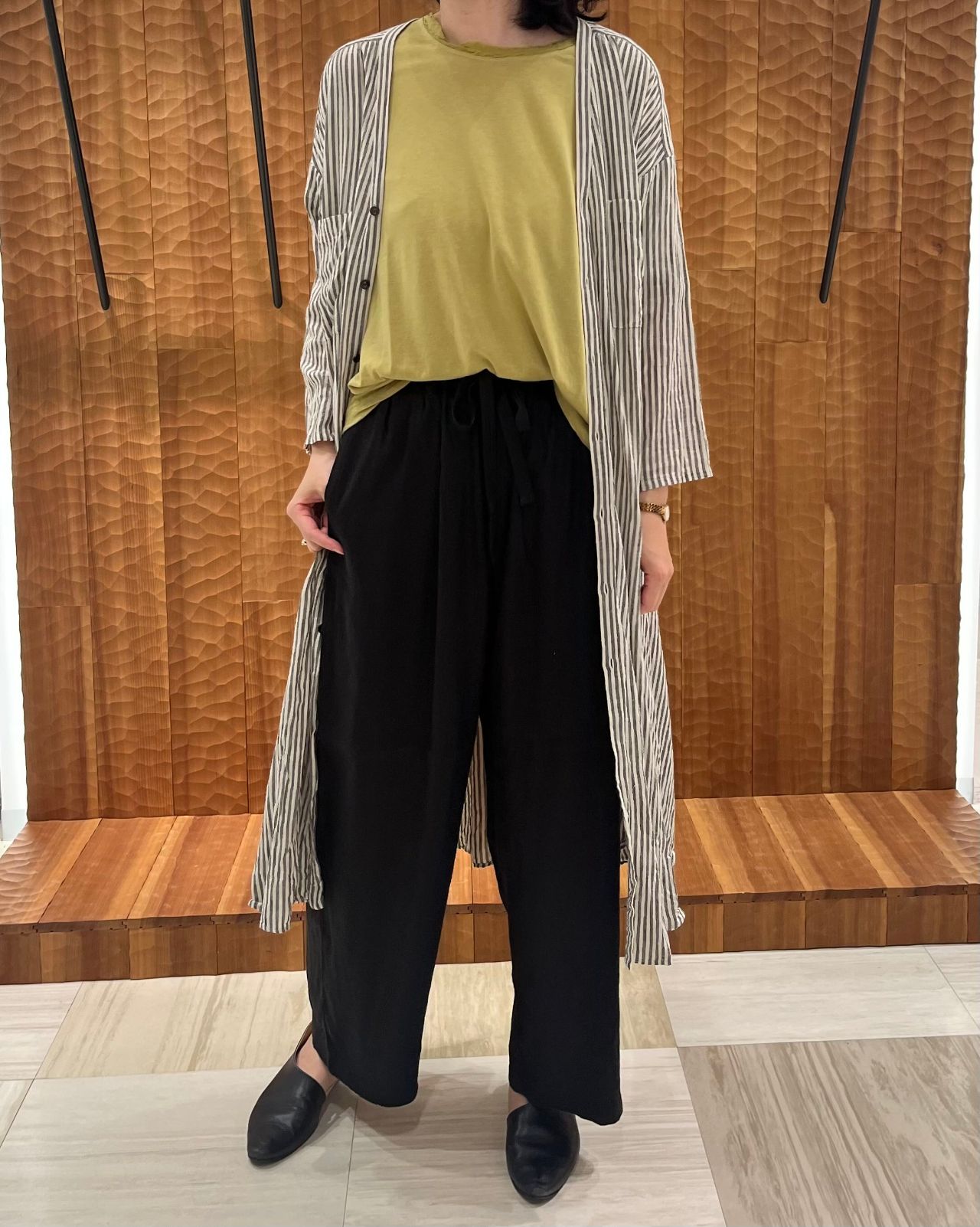 今回は店頭でも人気の綿ベンベルグのカットソーを差し色にしたコーディネートのご紹介です。