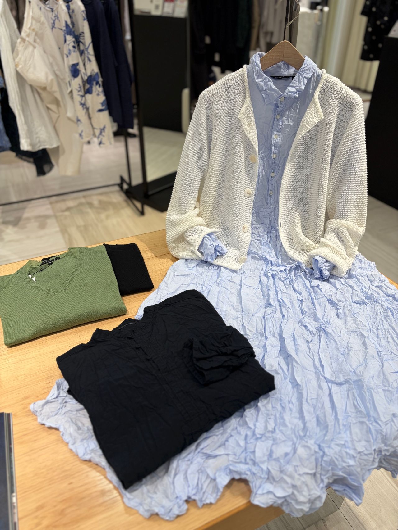 ウォッシャブルコットンリネンの春ニットなど3月の新作が揃っております。