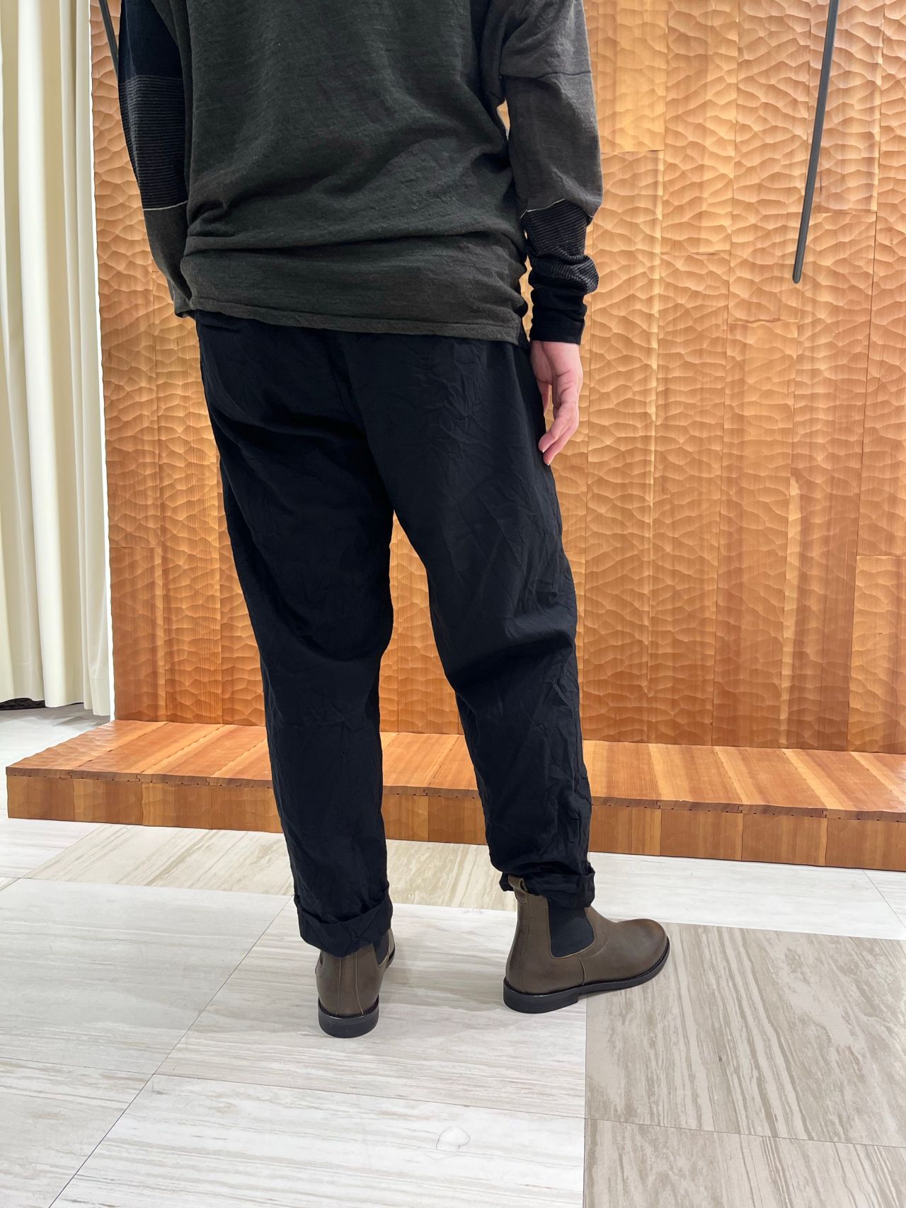 しわ加工の毛とポリエステルの素材で、この冬にぴったりのほどよく暖かいパンツです。