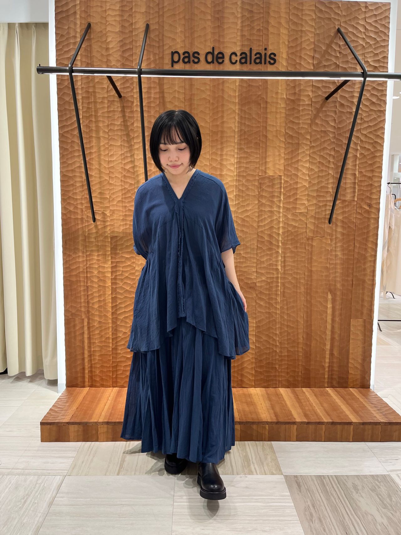 今の時期からでも涼しげに着ていただけるコットンシフォン東炊きシリーズのスタイリング。