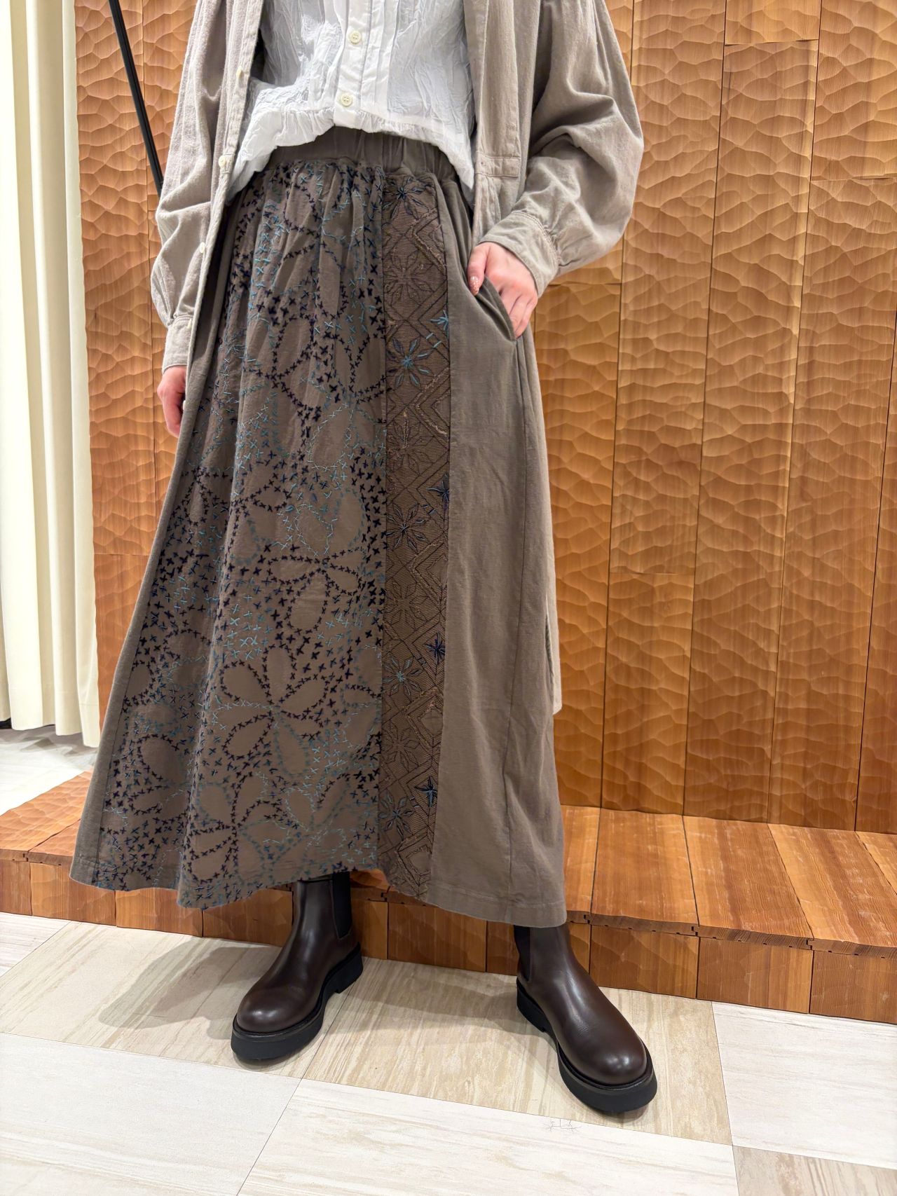 ミシン&ハンド刺しゅうパッチワーク スカート