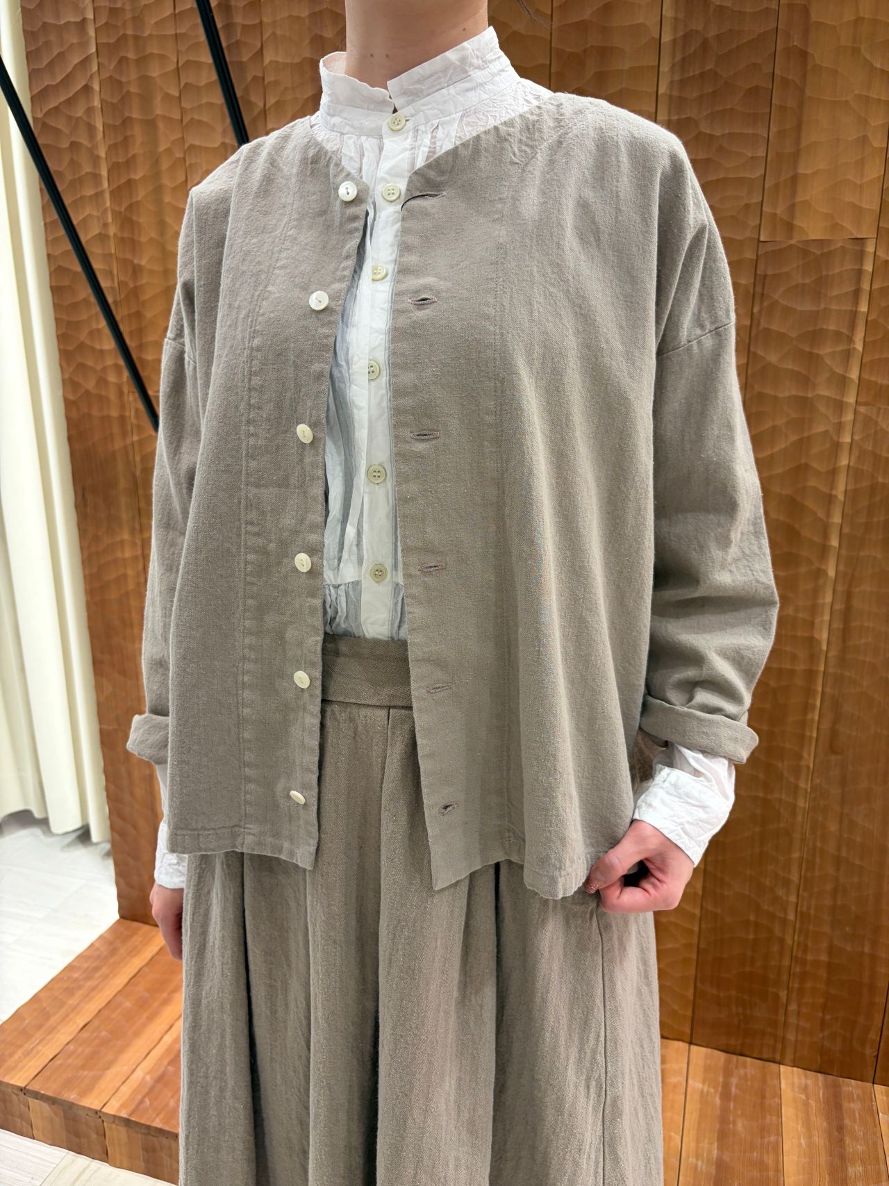 先染めコットンリネンカルゼ コート