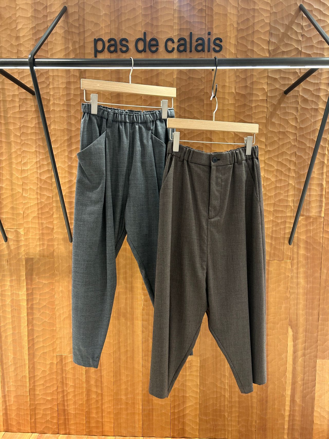 (左)ライトミドルストレッチテーパードイージーパンツ