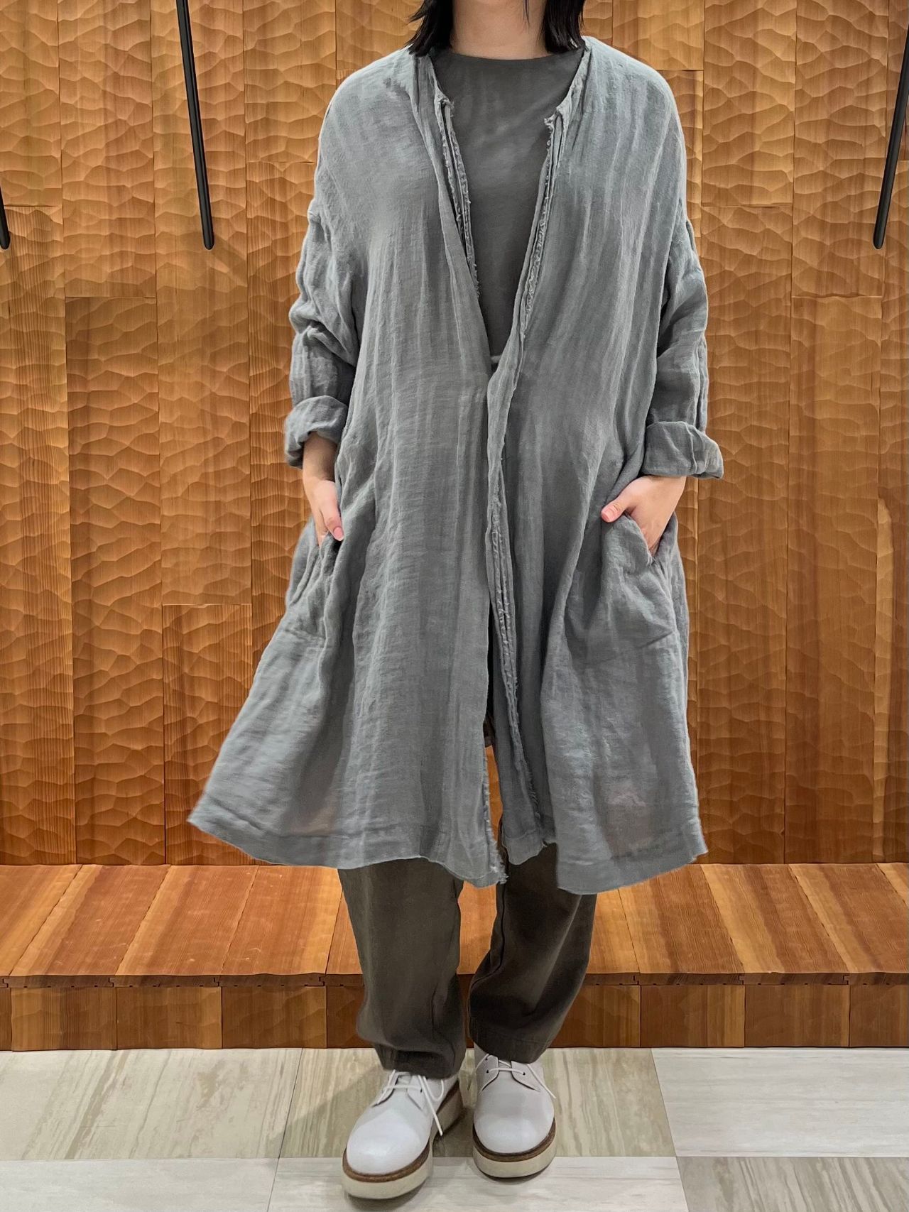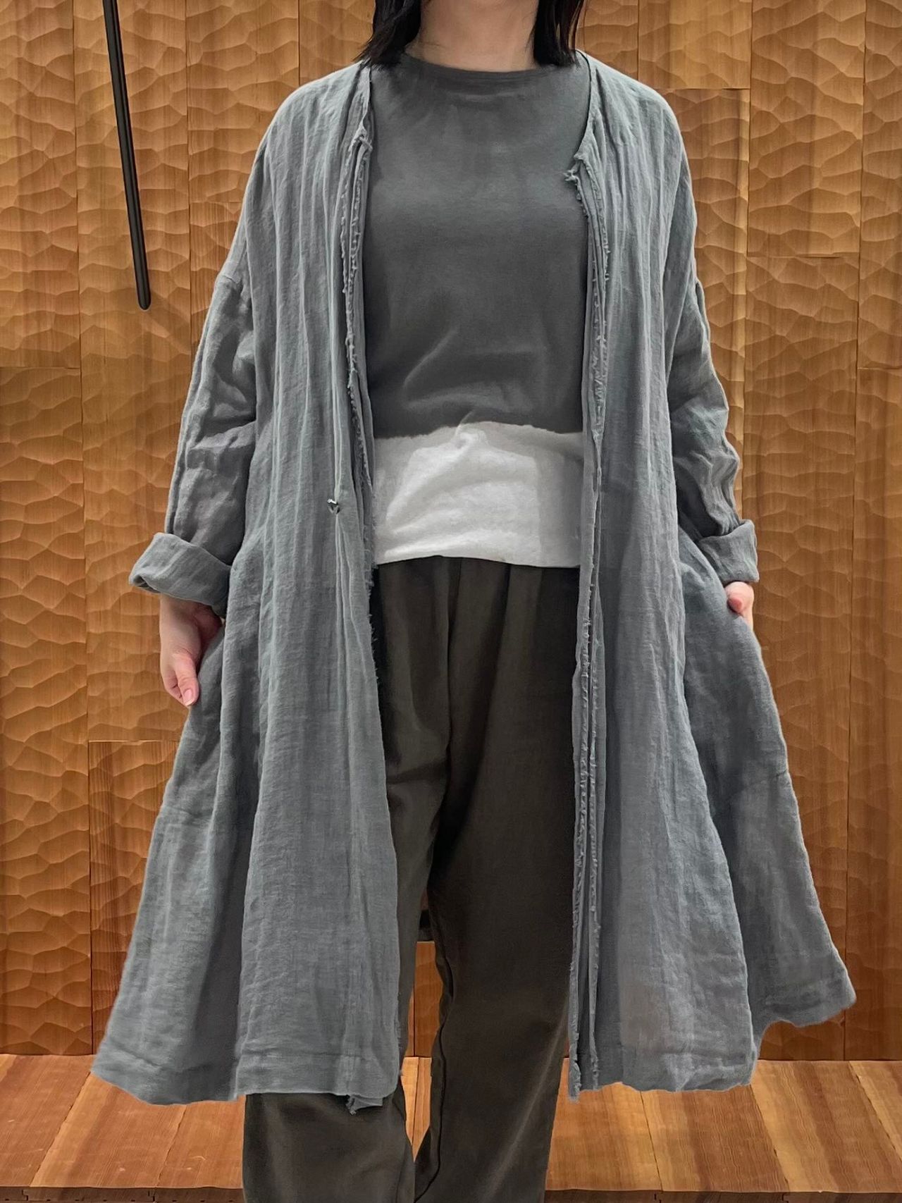 40リネンちりめん千鳥加工カーディガンジャケット
