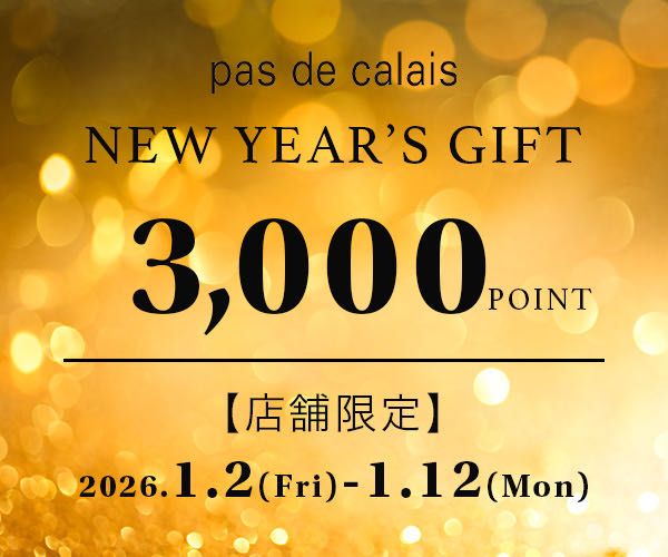 上記期間中、パドカレからのNEW YEAR'S GIFTとして、公式アプリダウンロード、税込33,000以上ご購入で、その場で使える3,000ポイントをプレゼントいたします。(公式アプリご利用の方も対象となります。)