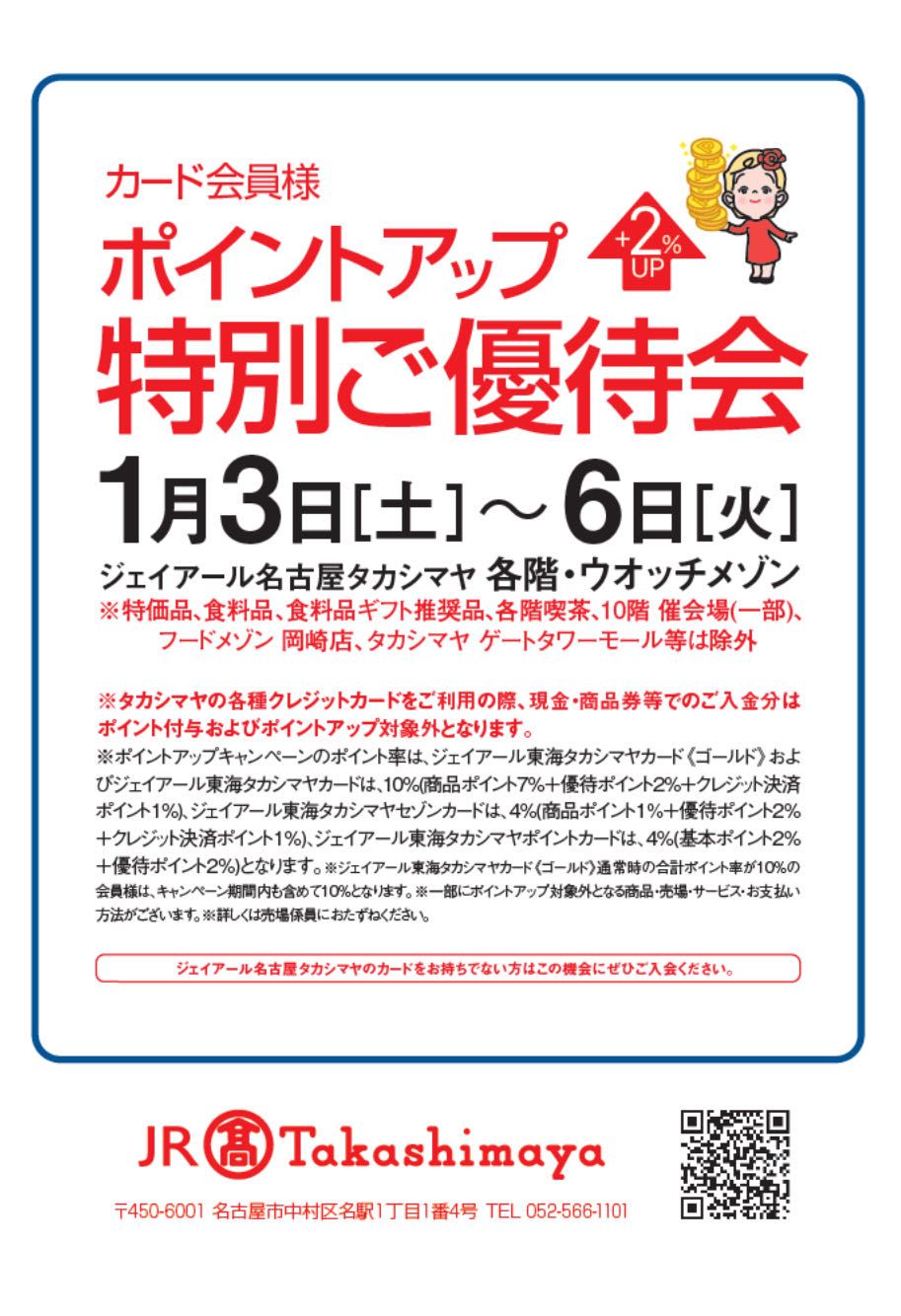 ジェイアール名古屋タカシマヤカード会員様ポイントアップ特別ご優待会を開催いたします。
