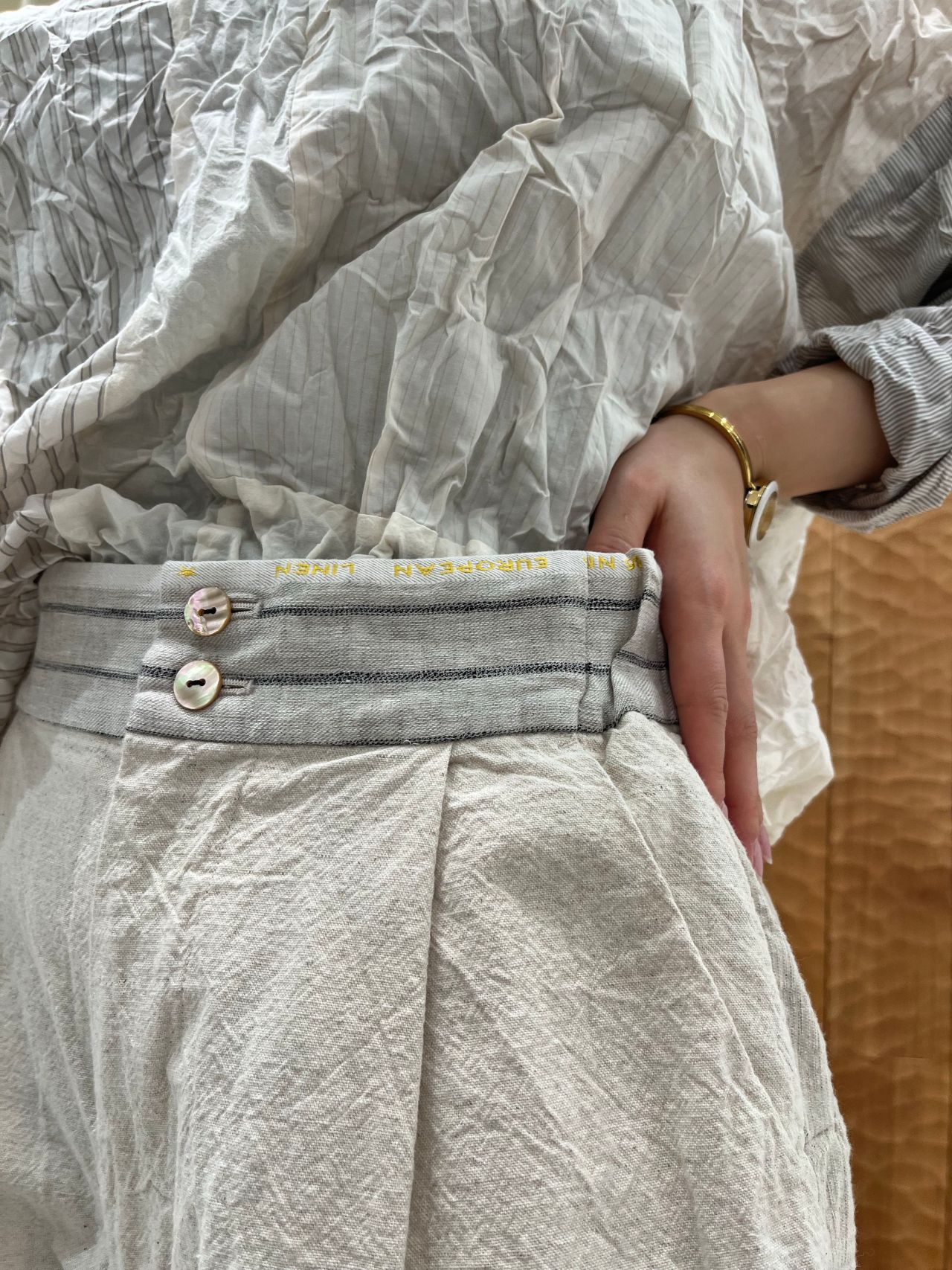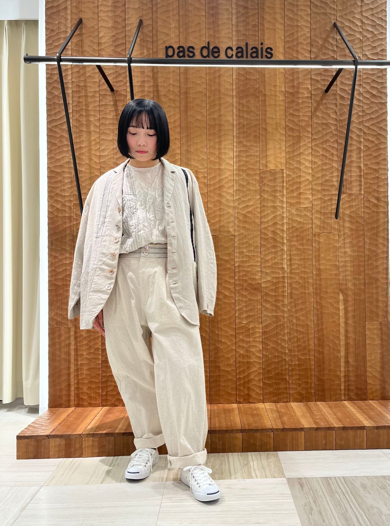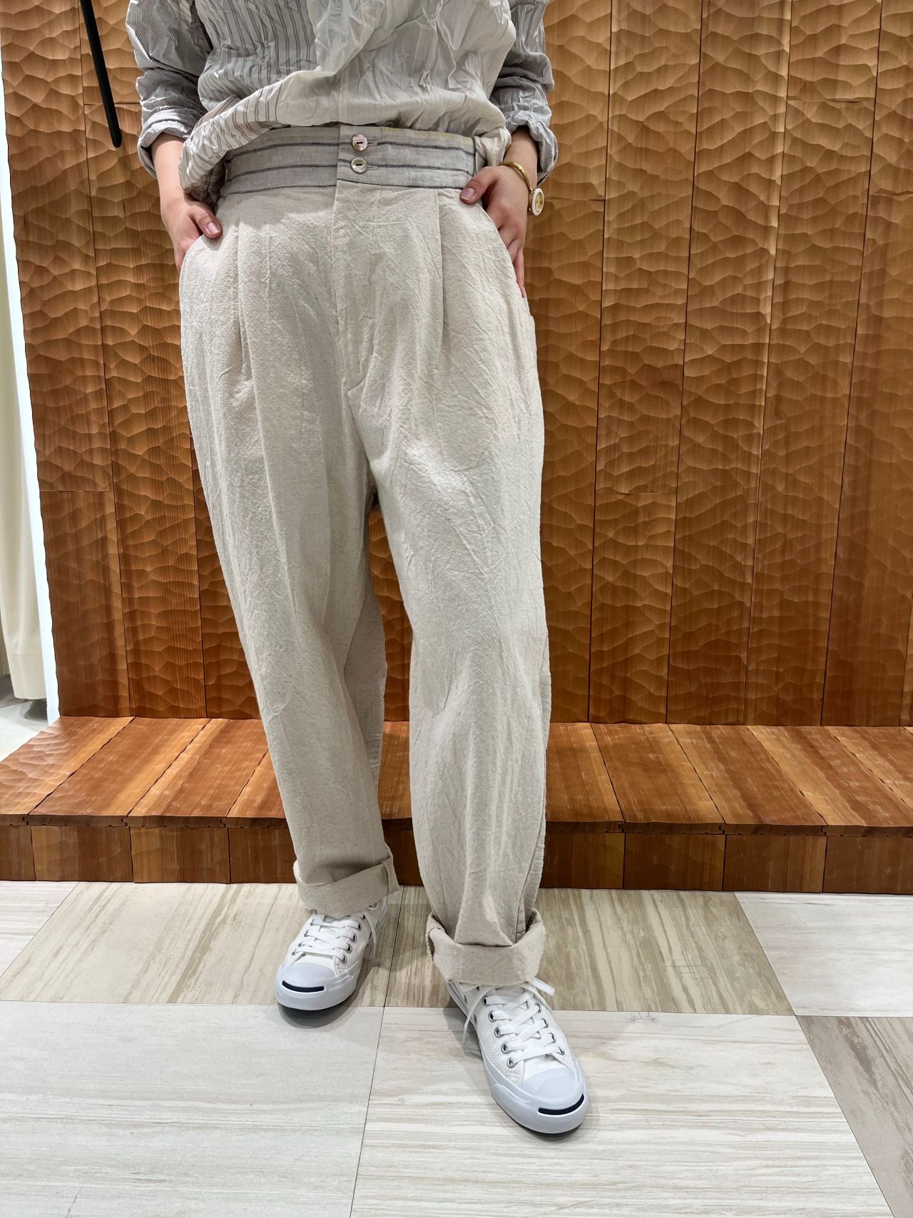 綿密に織られた素材なので春先にさらっと着られるアイテムです。
