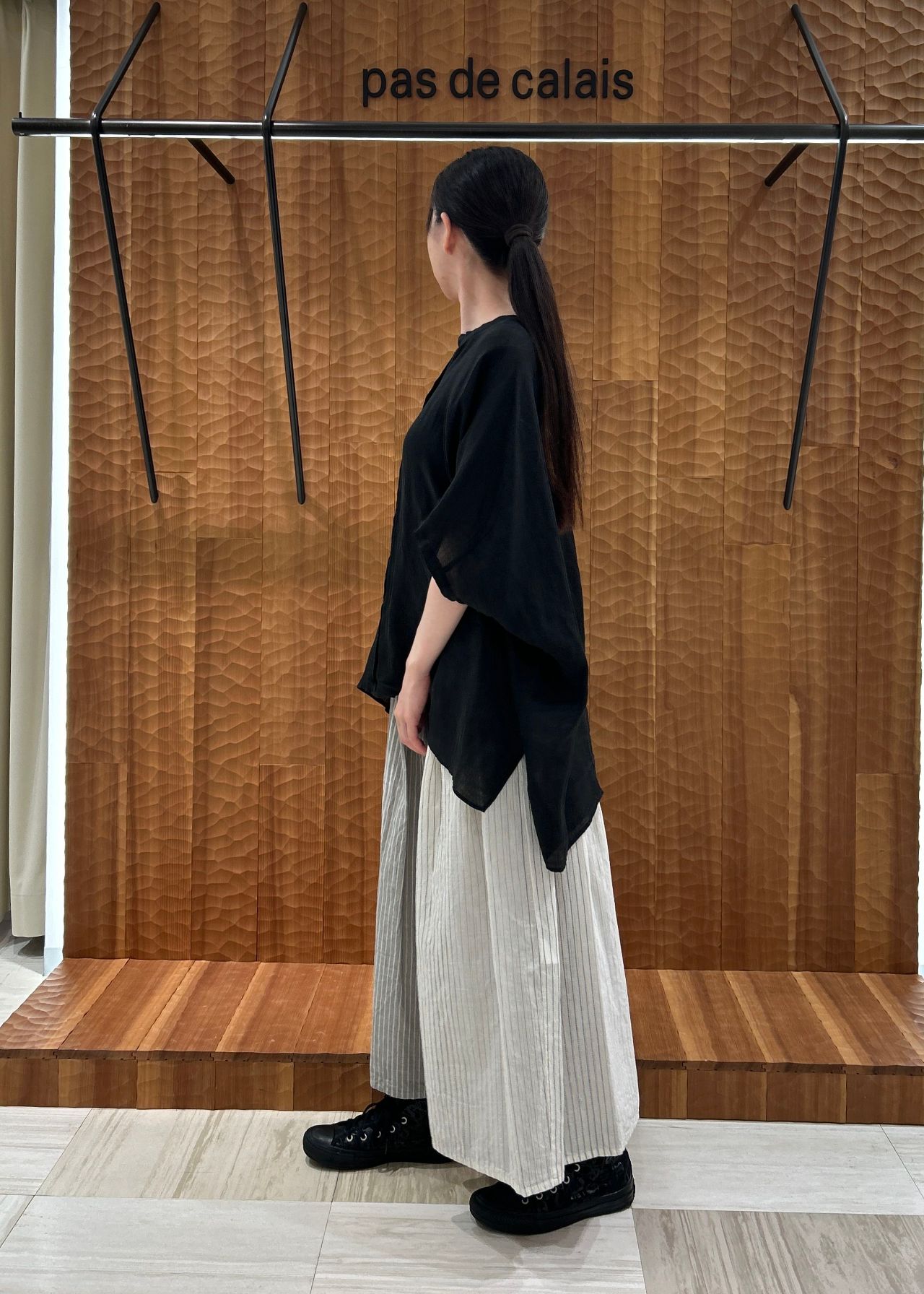 身体のラインが気にならないコンフォートなシルエットで、前開きにもなるので羽織ものとしてもお使いいただけます。