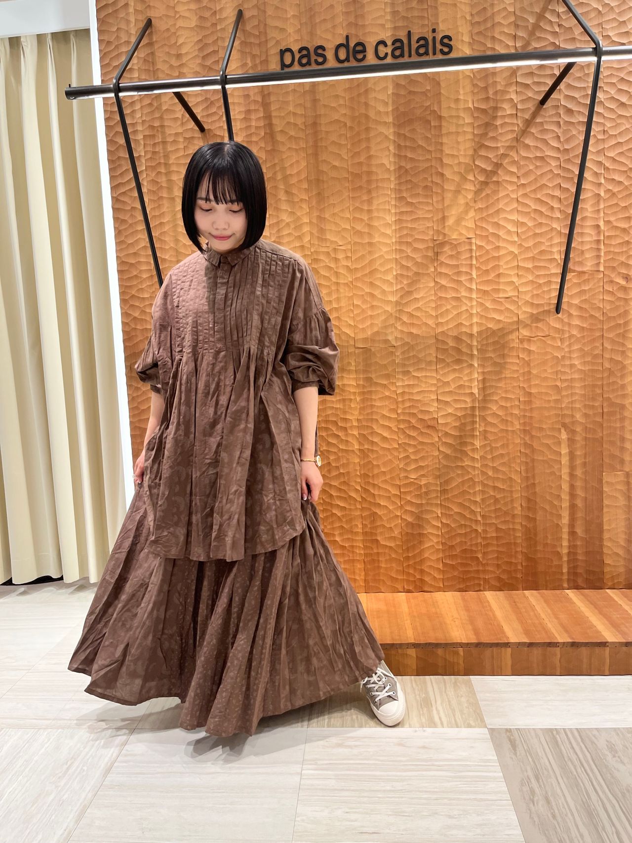 ブラウスは襟元と見頃が、スカートは左見頃と右見頃・後ろ身頃が異なっており、生地使いがパドカレらしくてこだわりを感じます。