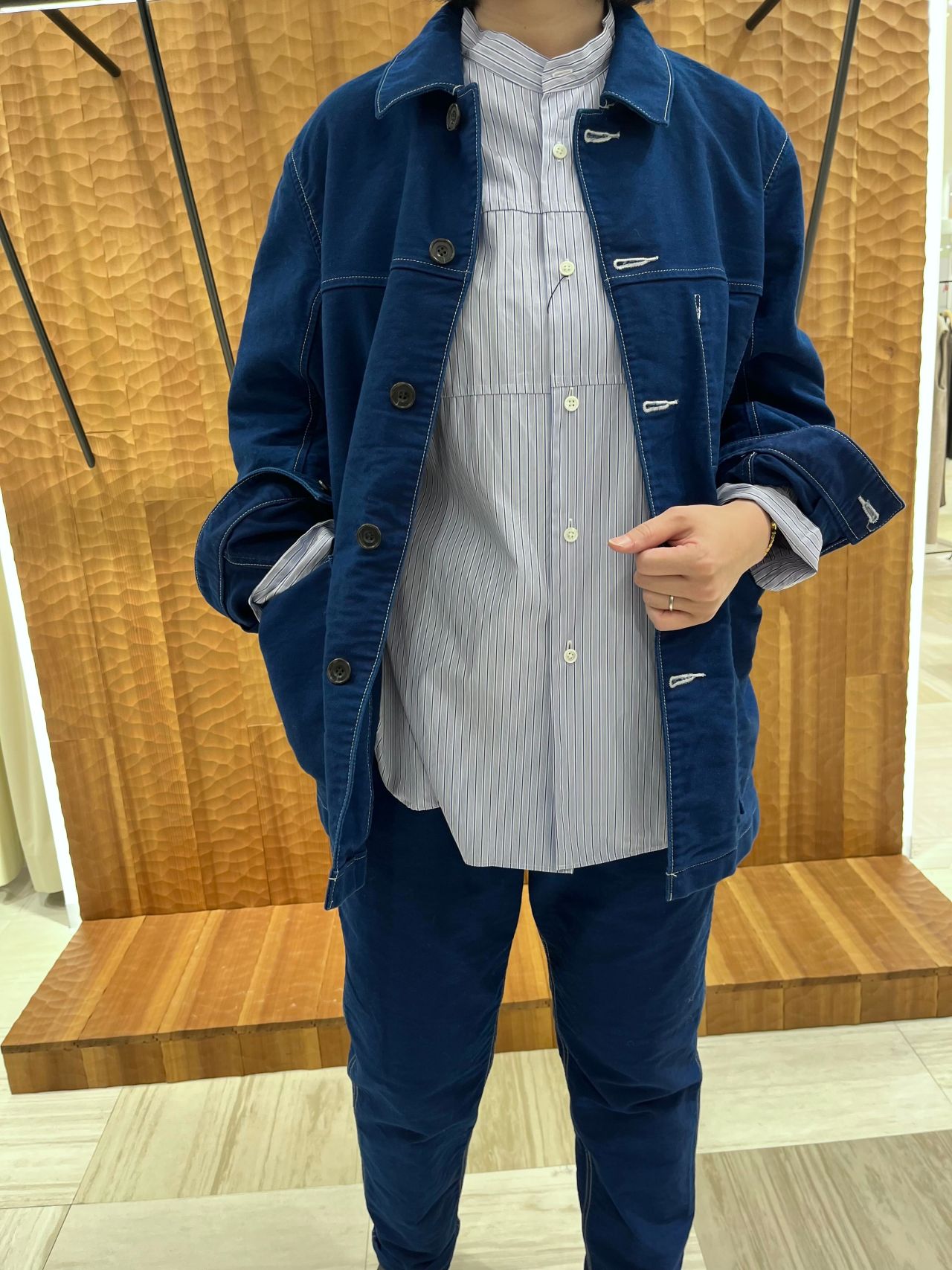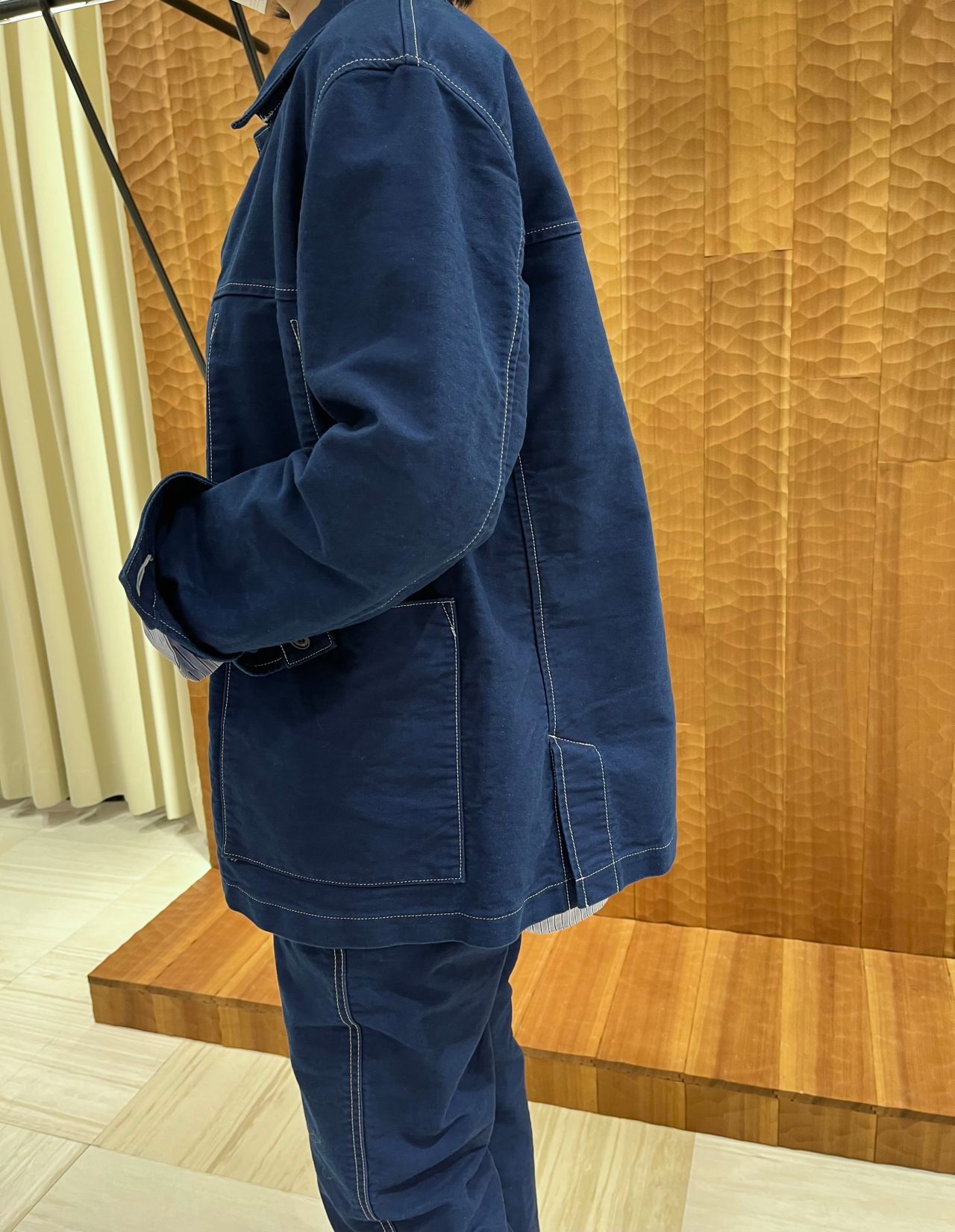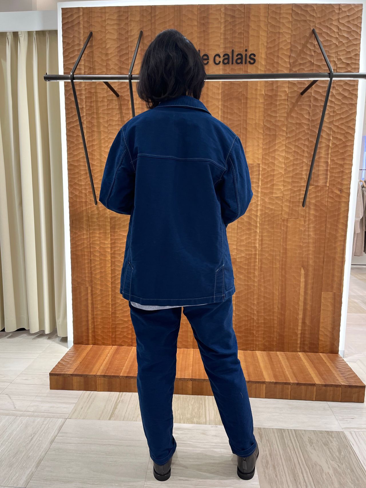 フランスのワークウェアで使用されたモールスキンを生地でインディゴ染めしたアイテムです。