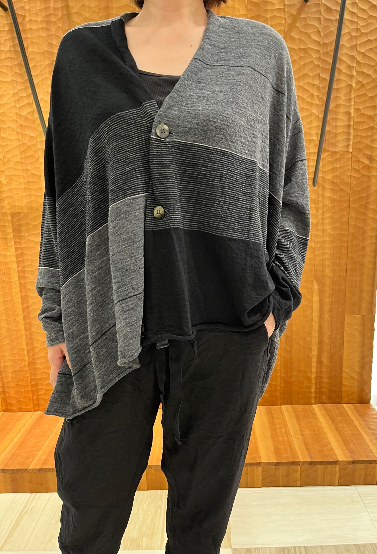 ウールガーゼ天竺・パネルボーダー&無地カーディガン