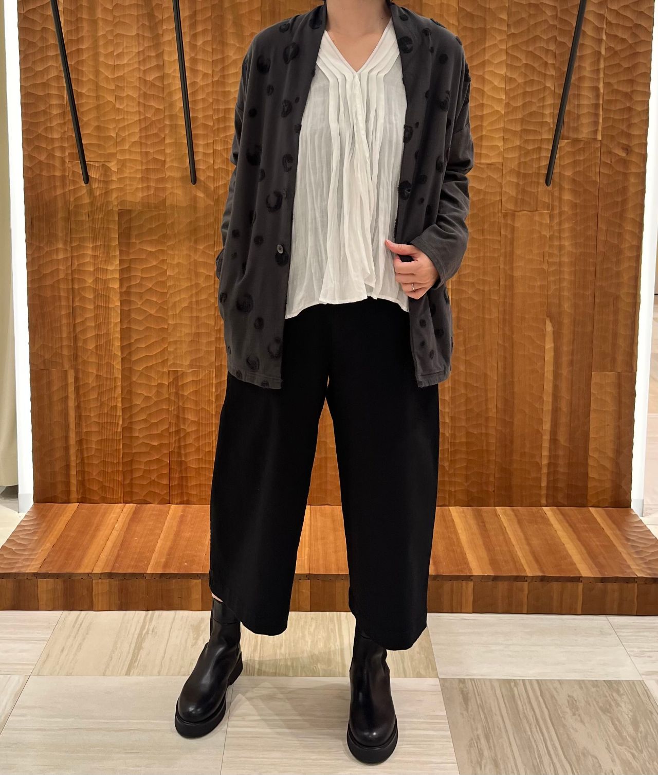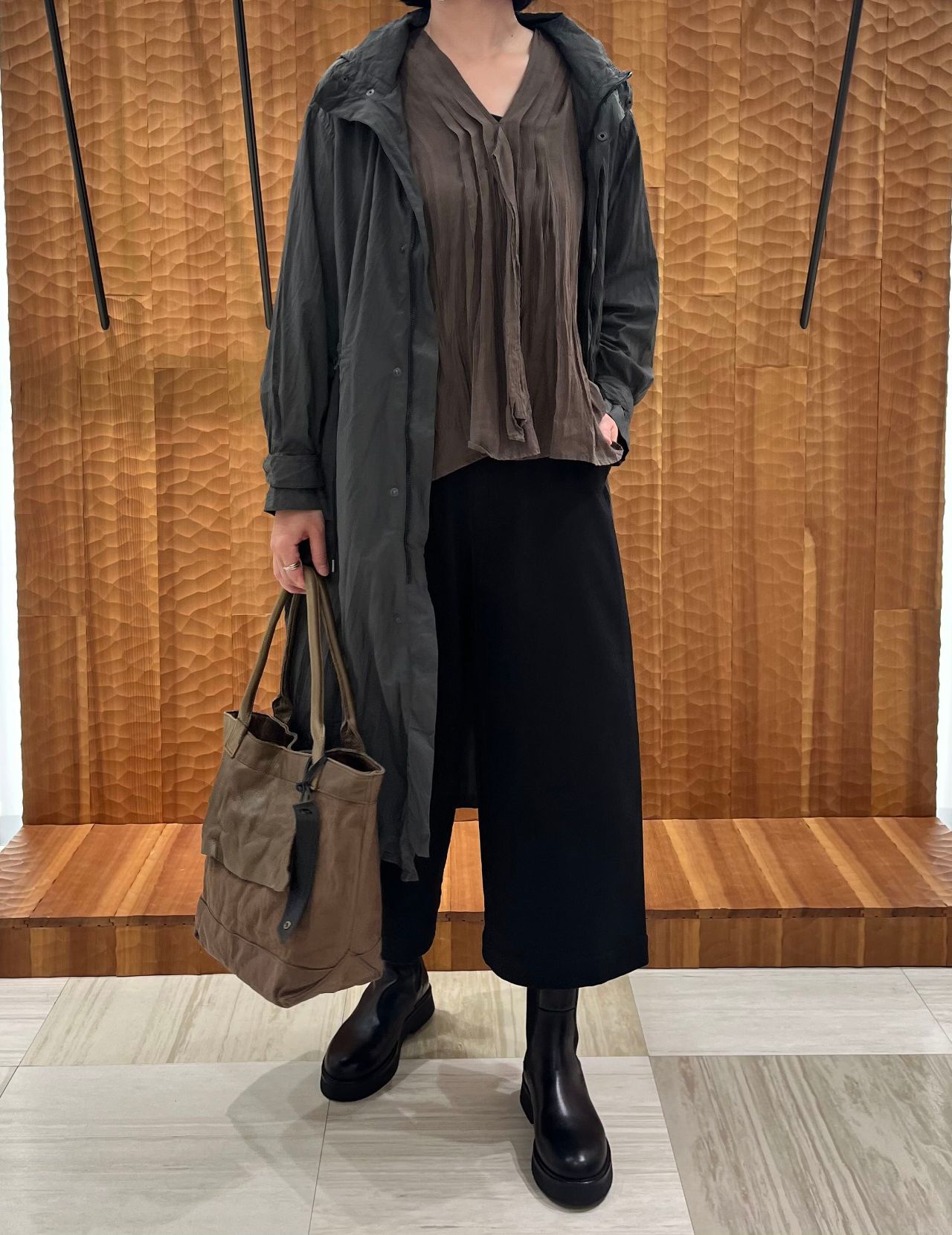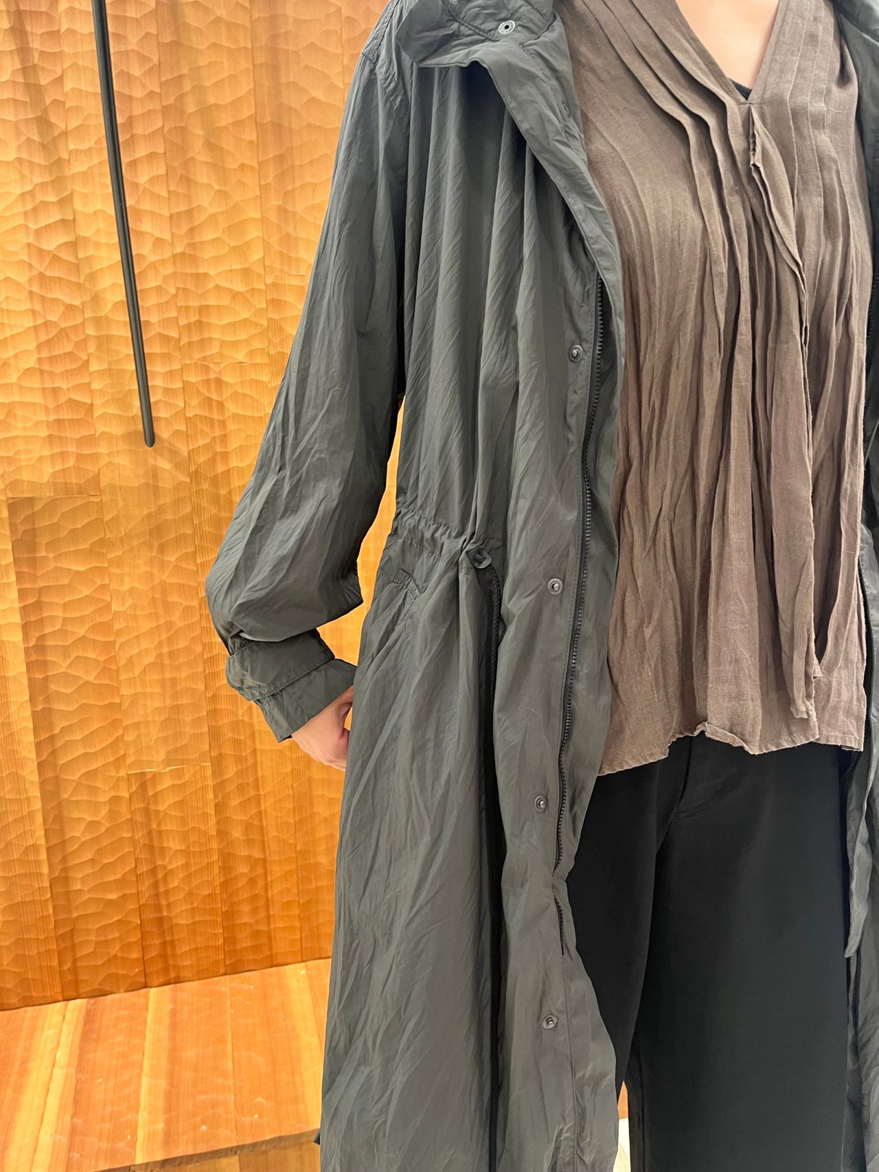 まだまだ残暑厳し中でも着用しやすいラミー素材のブラウスは、非常に細かい糸を使用しており、リネンと比べて繊維長が長く光沢が強くしなやかな素材で、清涼感のある一枚です。
