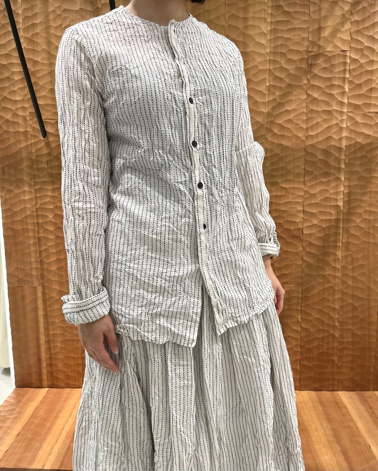 同じ生地でブラウスとワンピースのお作りがあり、カラーはホワイトとネイビーの2色で、サイズは36のワンサイズです。