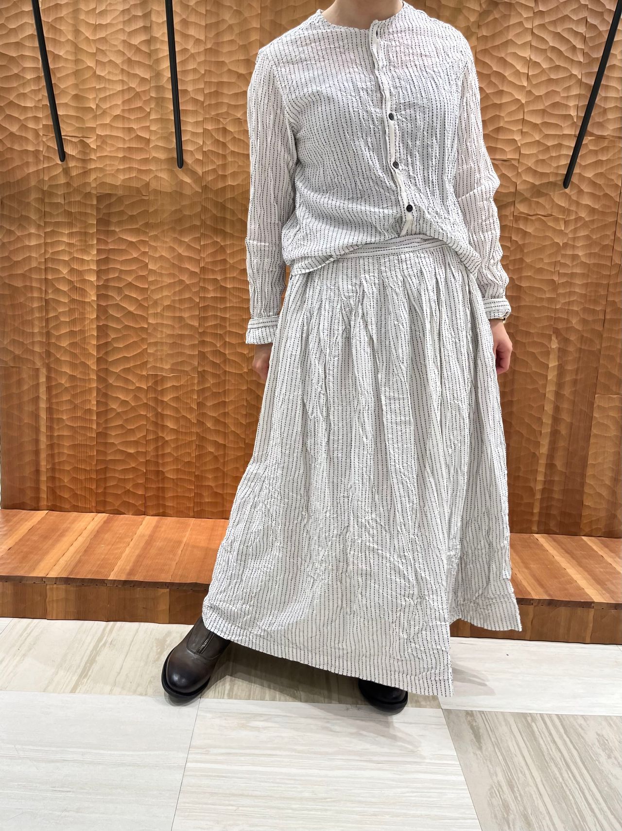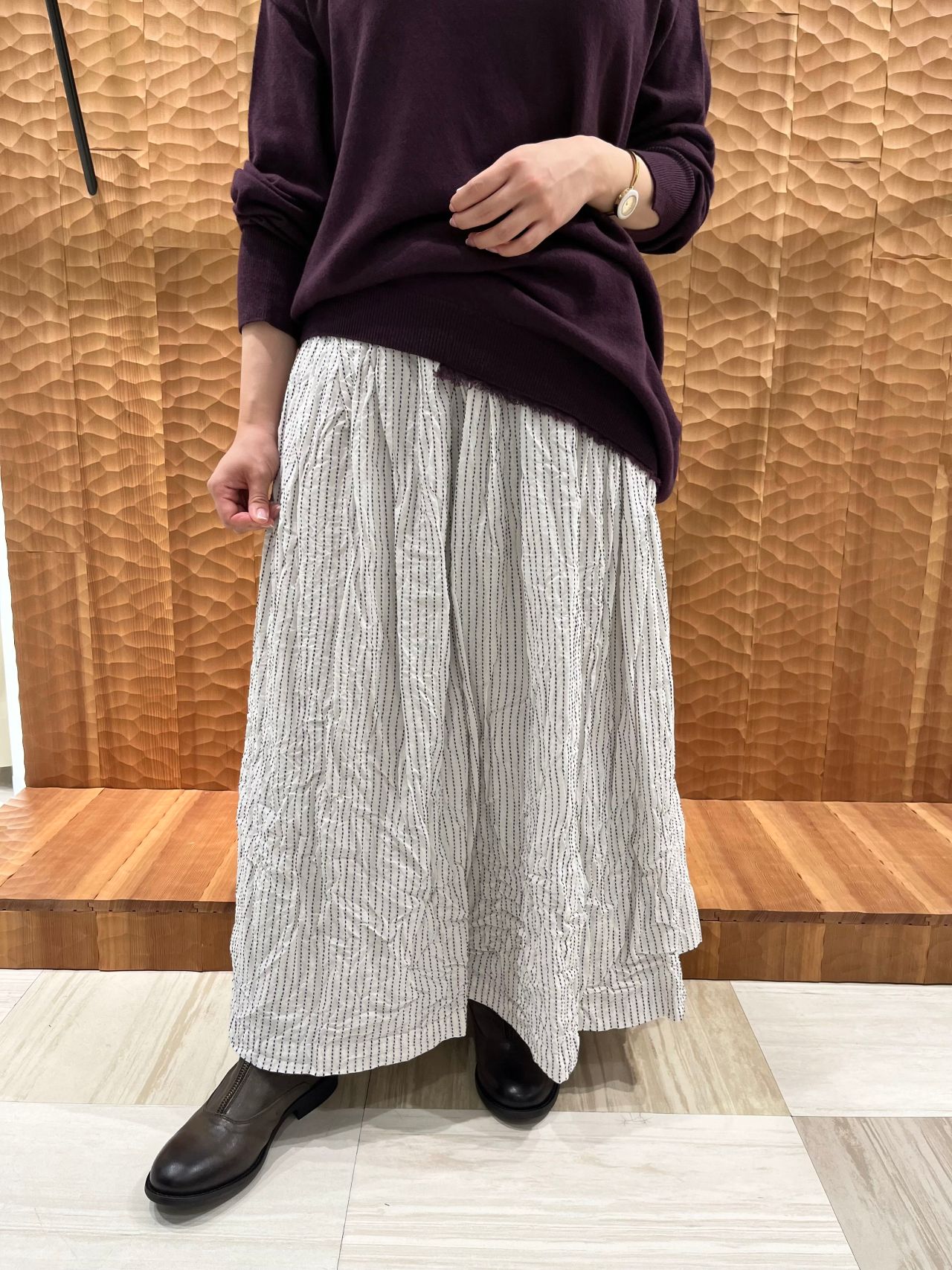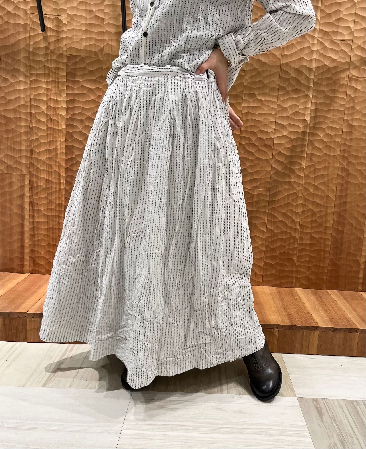 今回のスカートはインドで織りあげたドビーステッチの生地を使用。