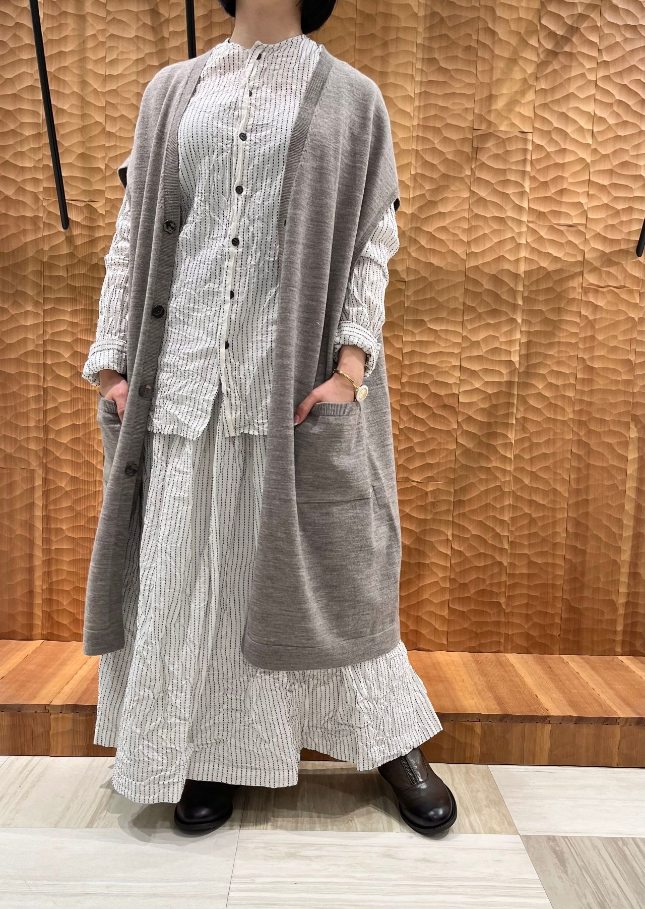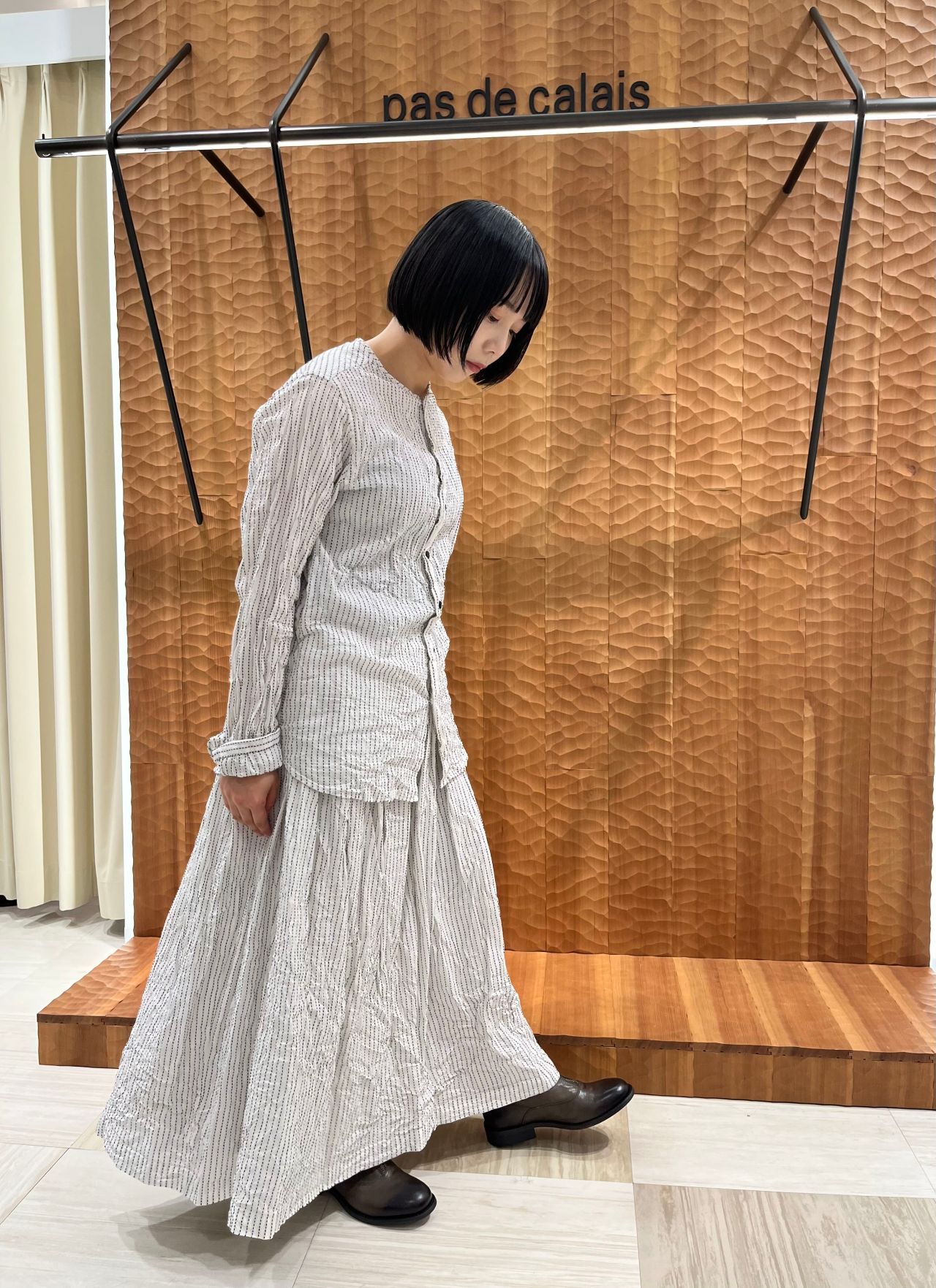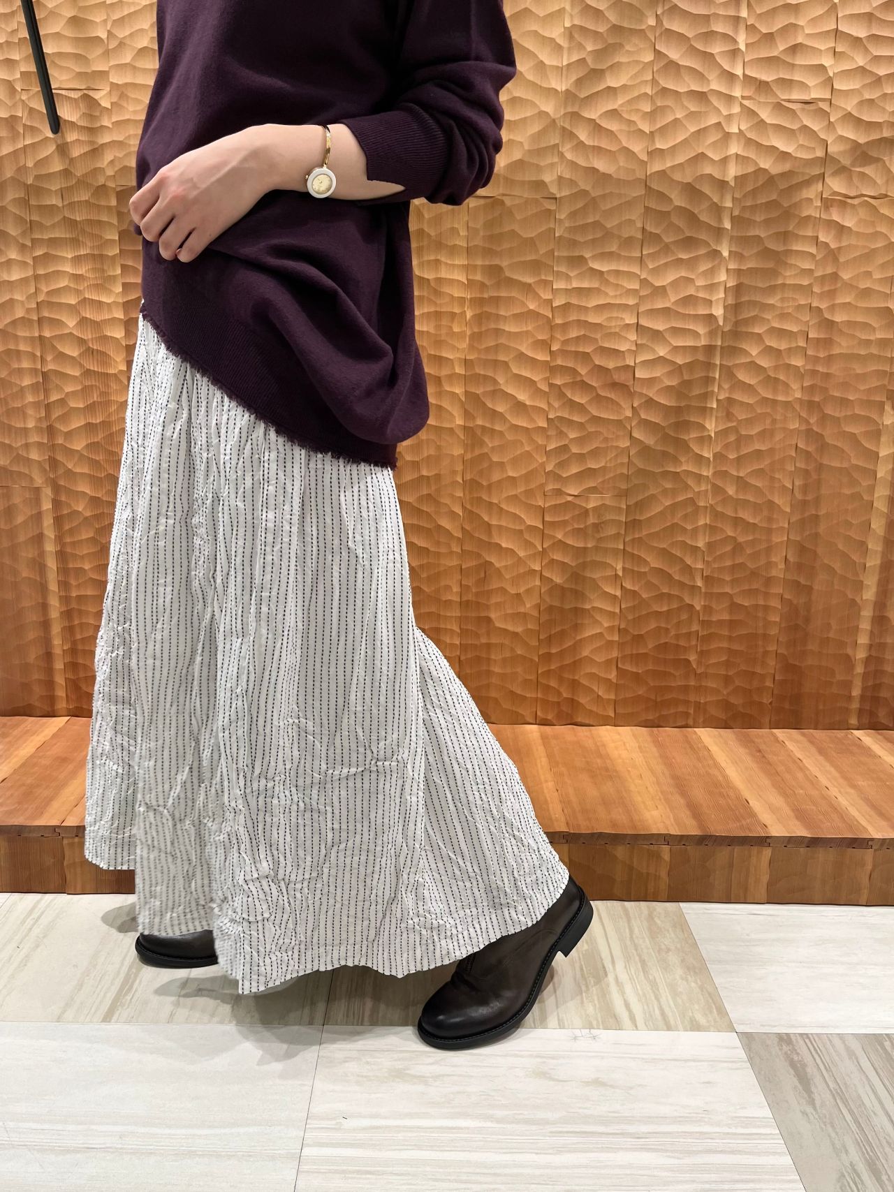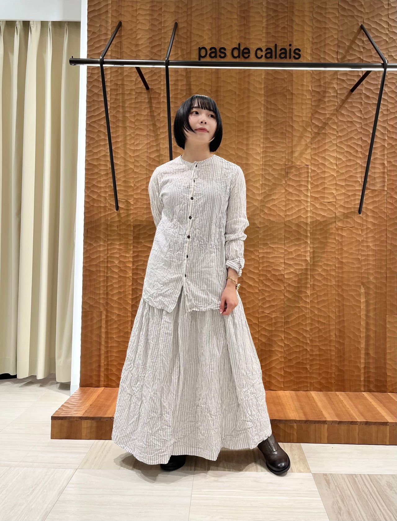 今回のスカートはインドで織りあげたドビーステッチの生地を使用。