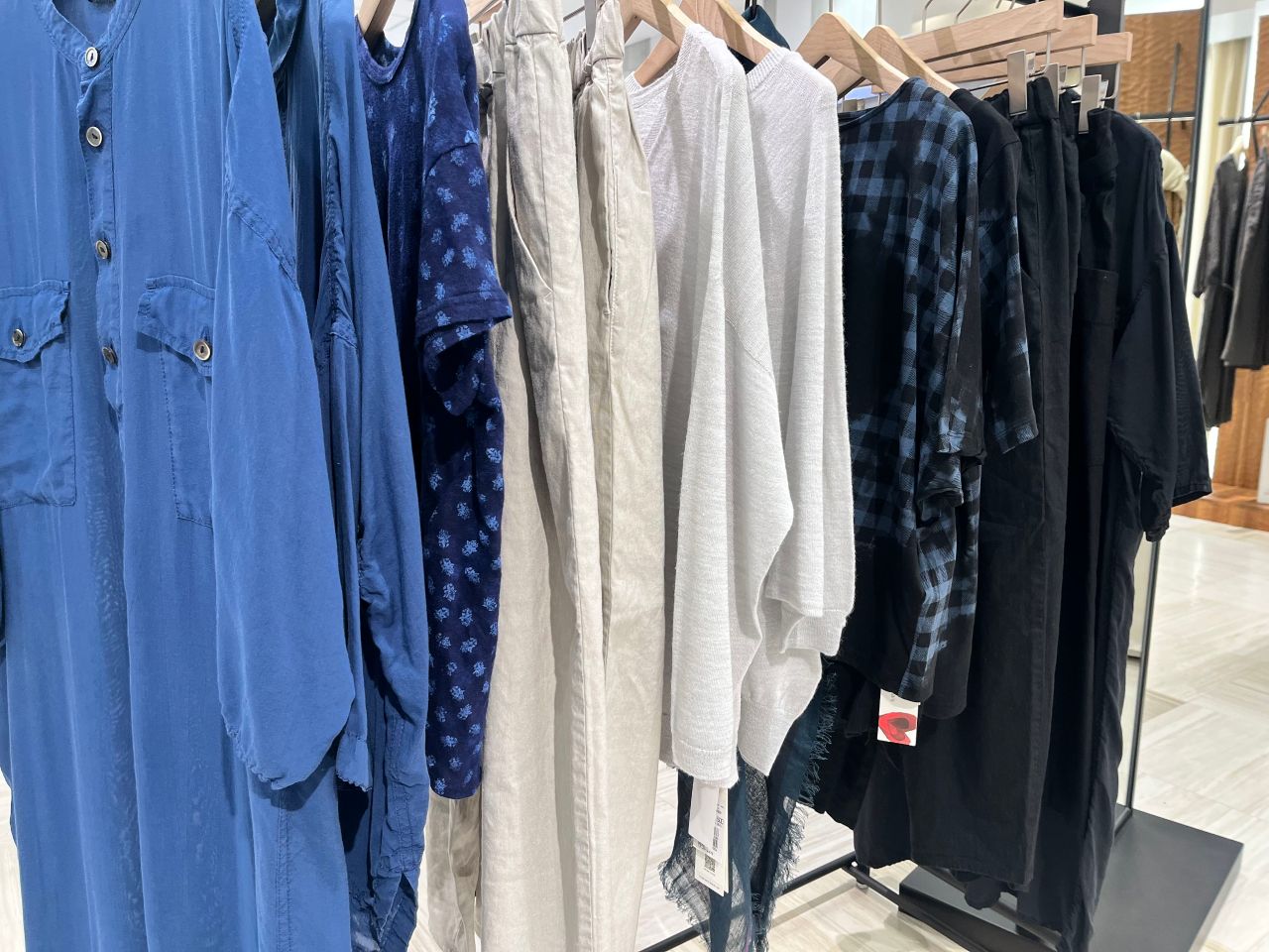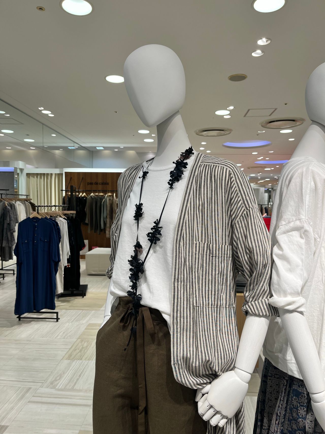 今回はカカオ染めや、ブロックプリント、ノルマンディリネン、綿麻ストライプの生地を使用したアイテムがとっても素敵ですよ〜