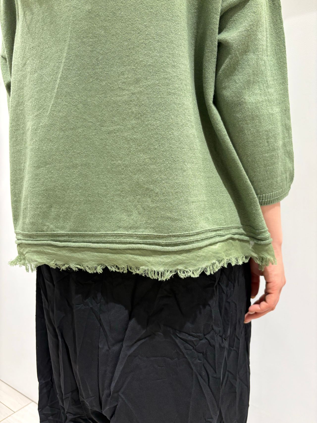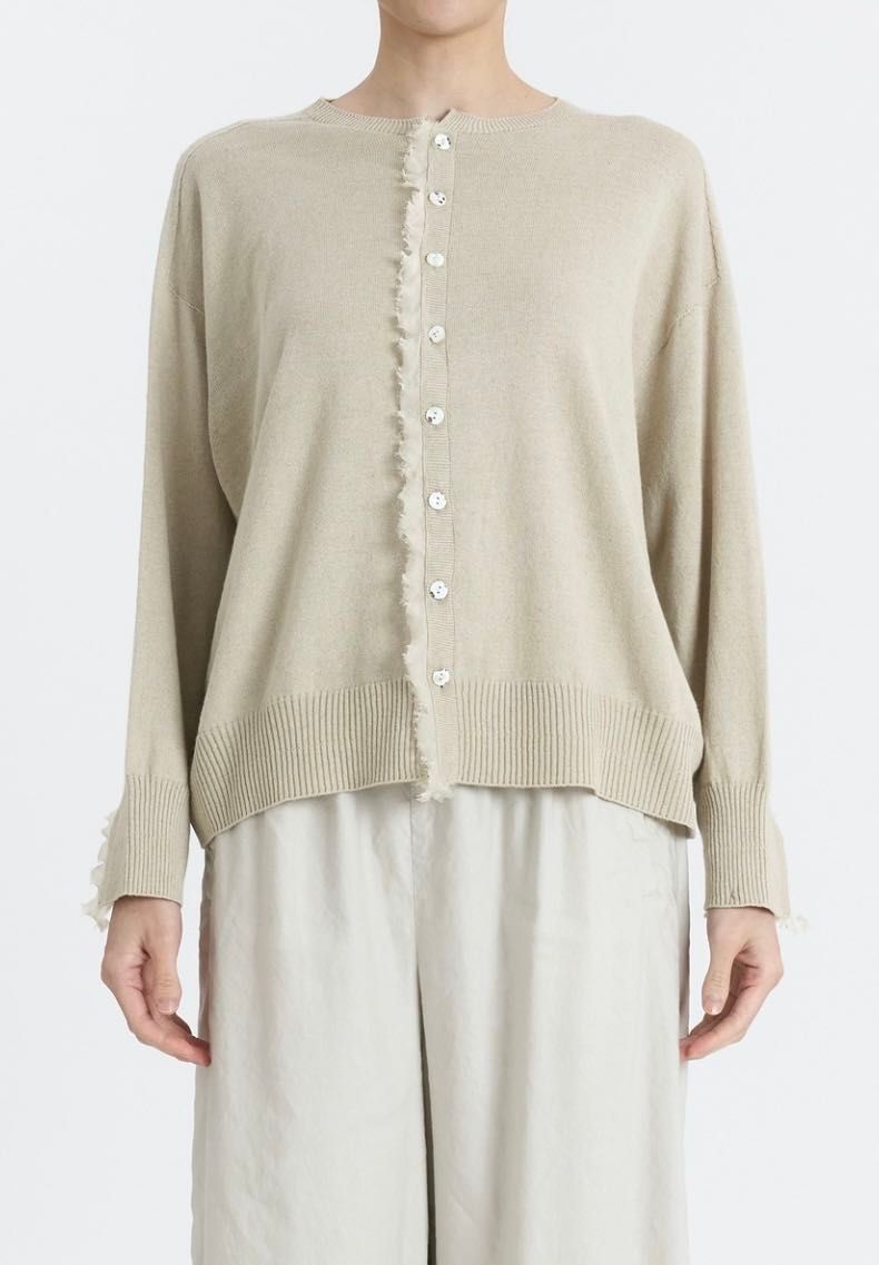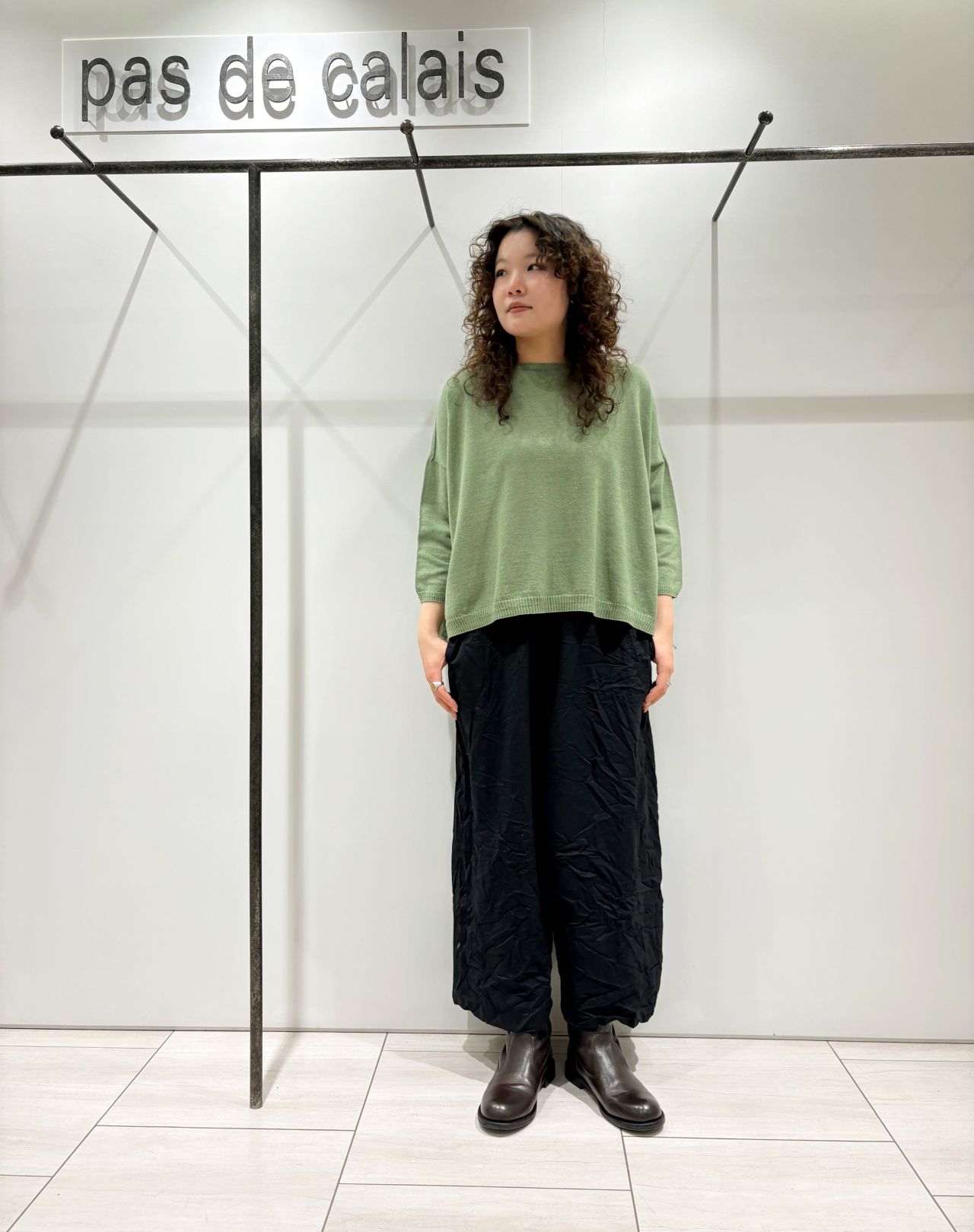 ソフトでナチュラルな2種のコットンをブレンド。清涼感のあるリネンと膨らみをもたらすウールをMIX。薄手で肌触りも心地良く、今のような季節の切り替え時期にぴったりのアイテムです。また製品染めを行っている為、各色で色の深みもお楽しみいただけます。