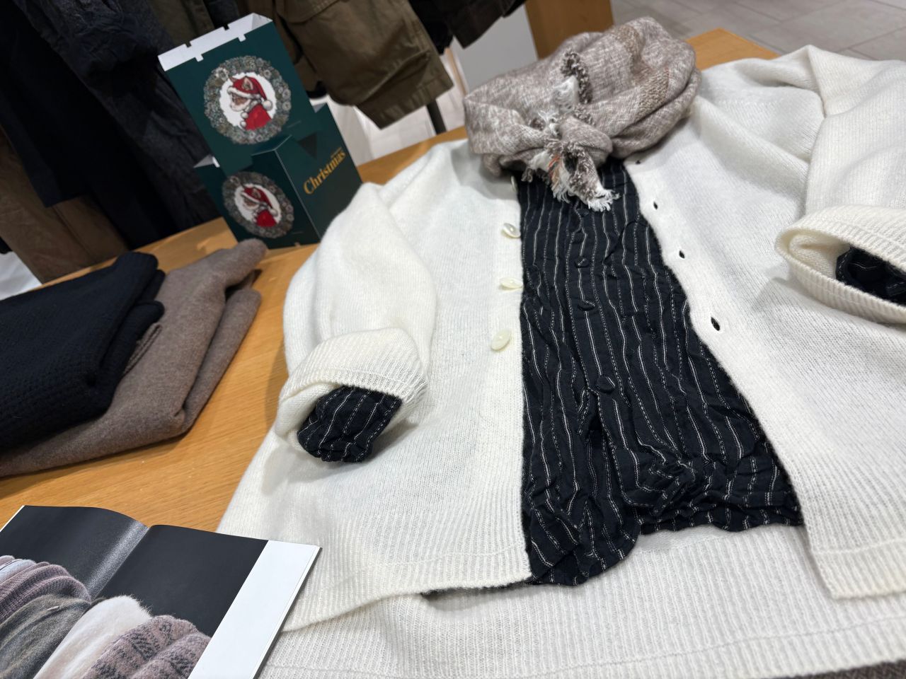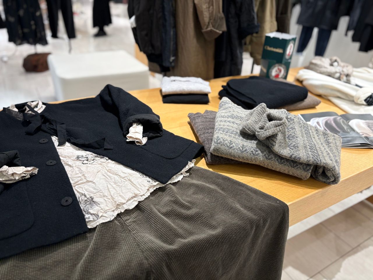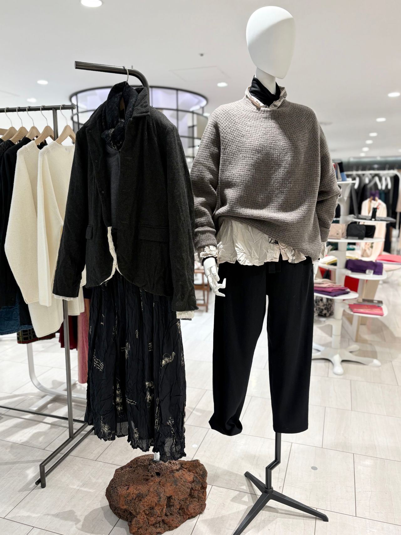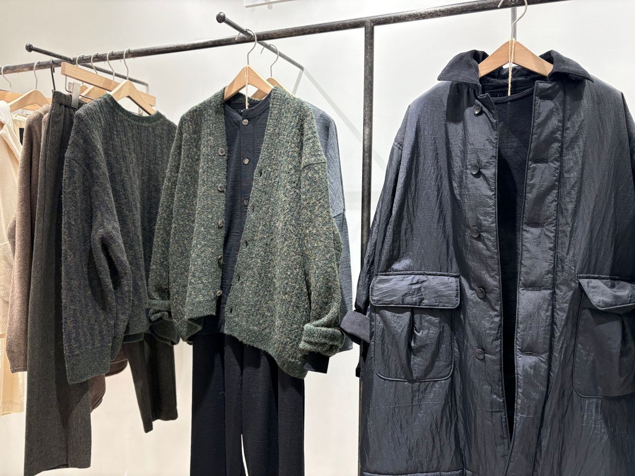 11月のアイテムが全て店頭に揃っております。様々なバリエーションのニットは、素材や見た目の暖かさも多種多様ですので用途別でお選びいただけます。ボトムスもカジュアルなものから、シンプルで長く使えるものまで様々です。ぜひこの機会にお越しくださいませ。