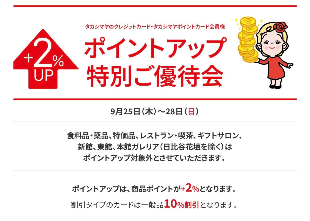 明日から上記の期間中、日本橋髙島屋ではポイントアップご優待会を開催いたします。