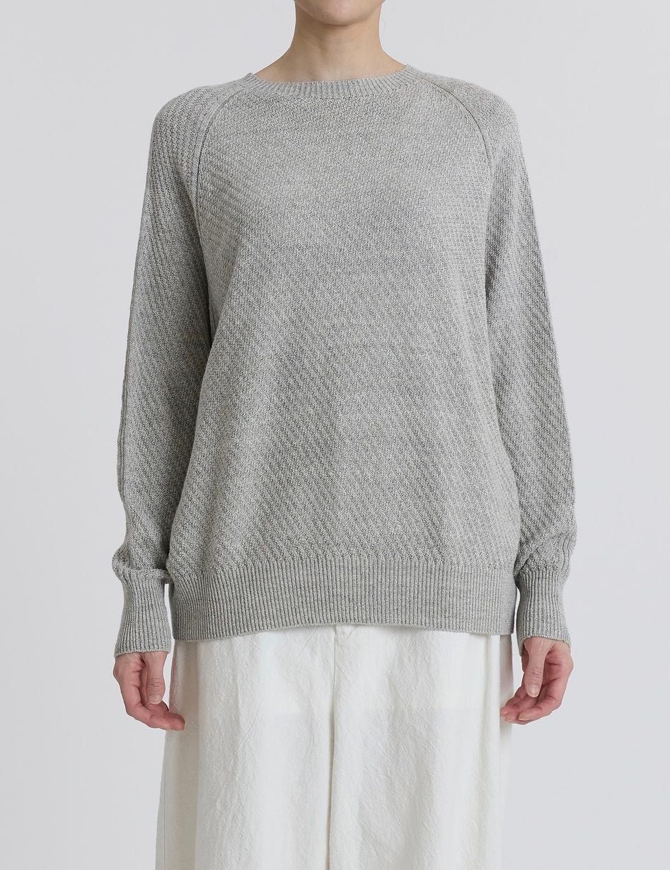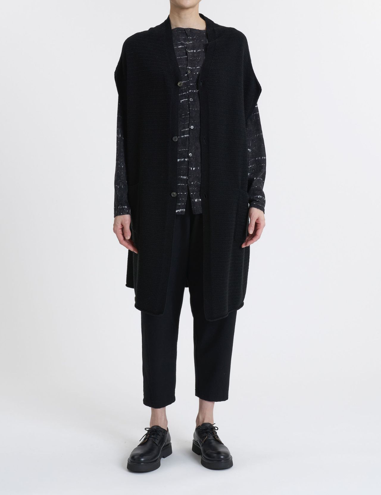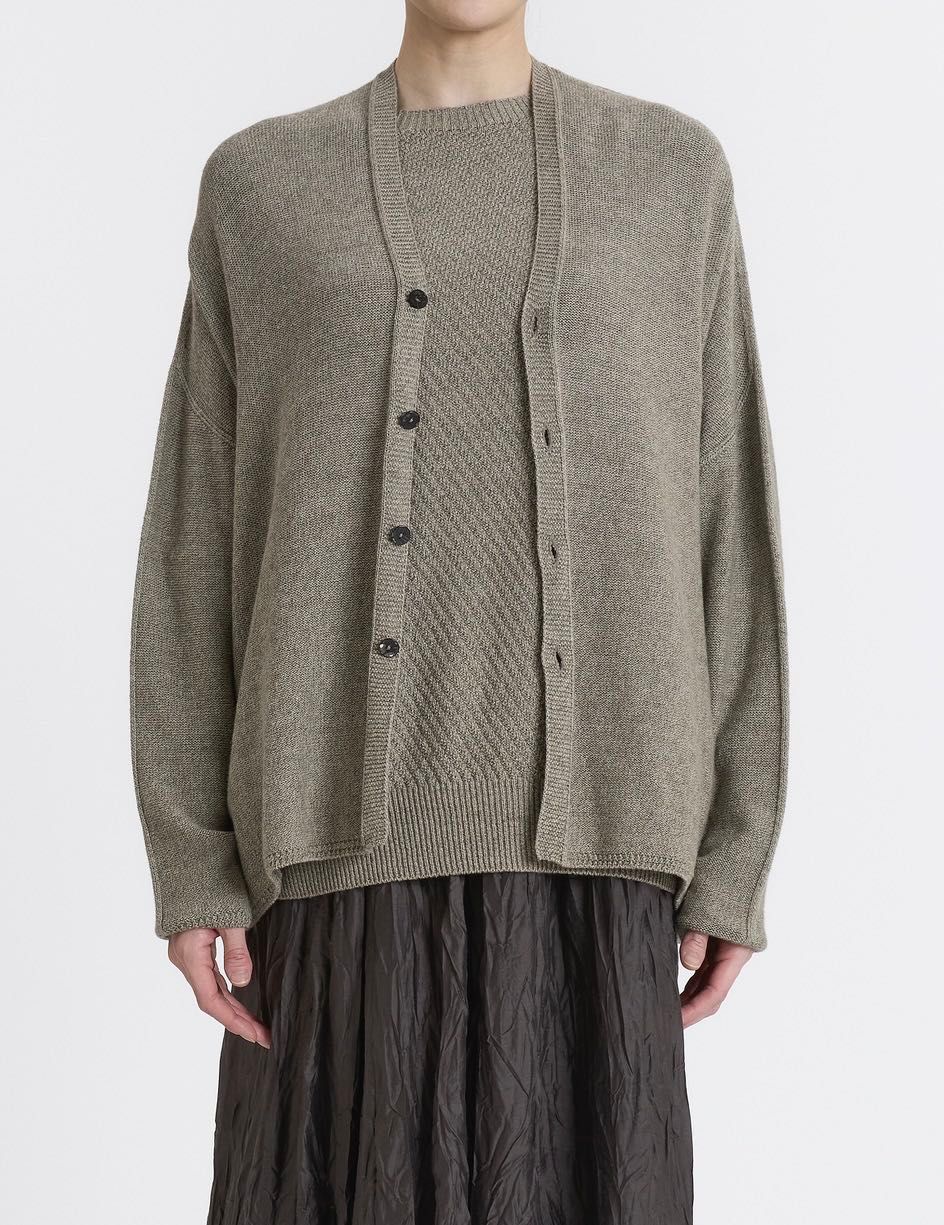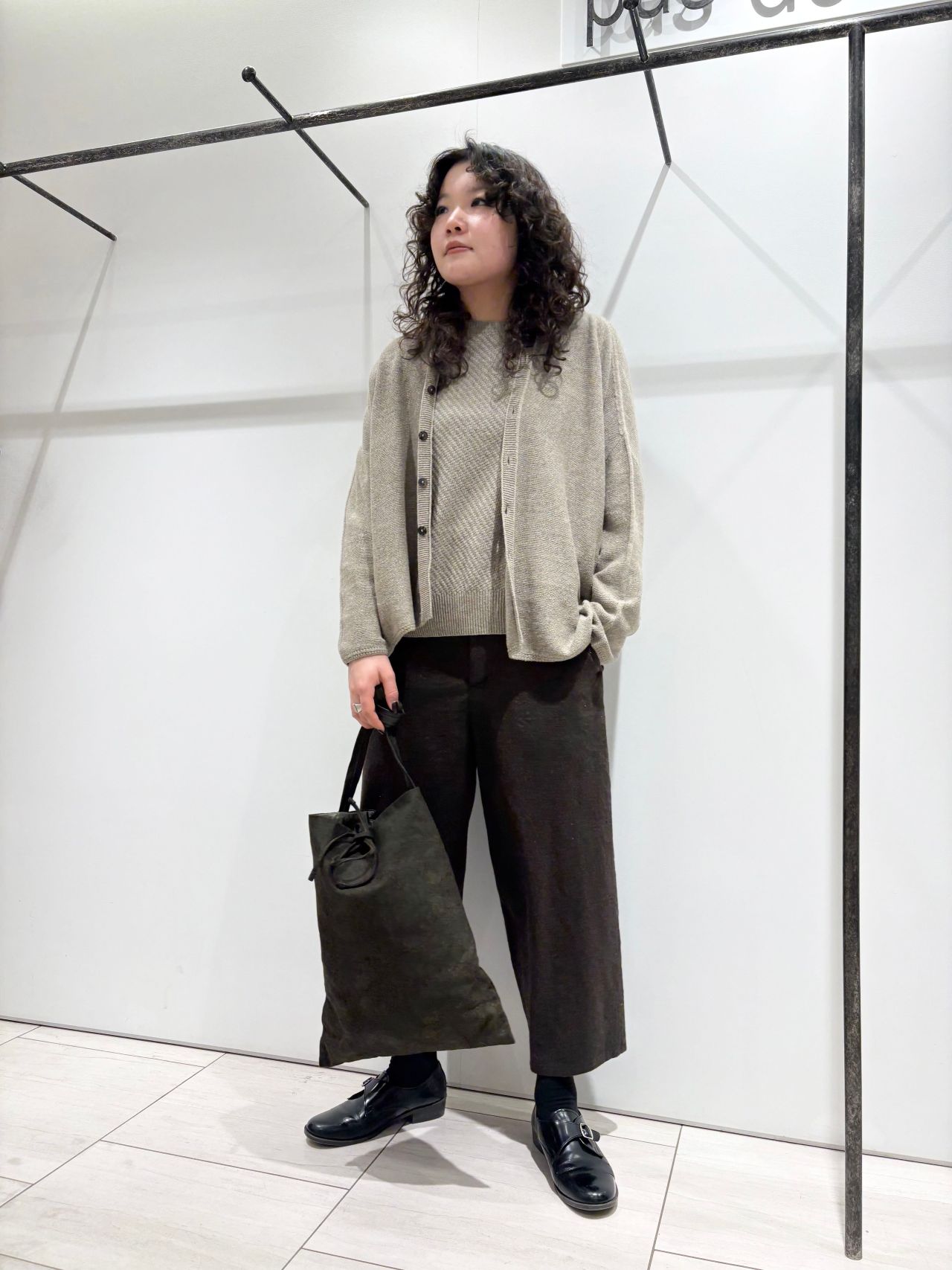 綿にウールをブレンドした、肌触りの良い素材。保温性の中に軽さもあるので、アンサンブルでの着用もおすすめです。製品染めを行なっている為、深みのあるカラーも、コーディネートのワンポイントになります。