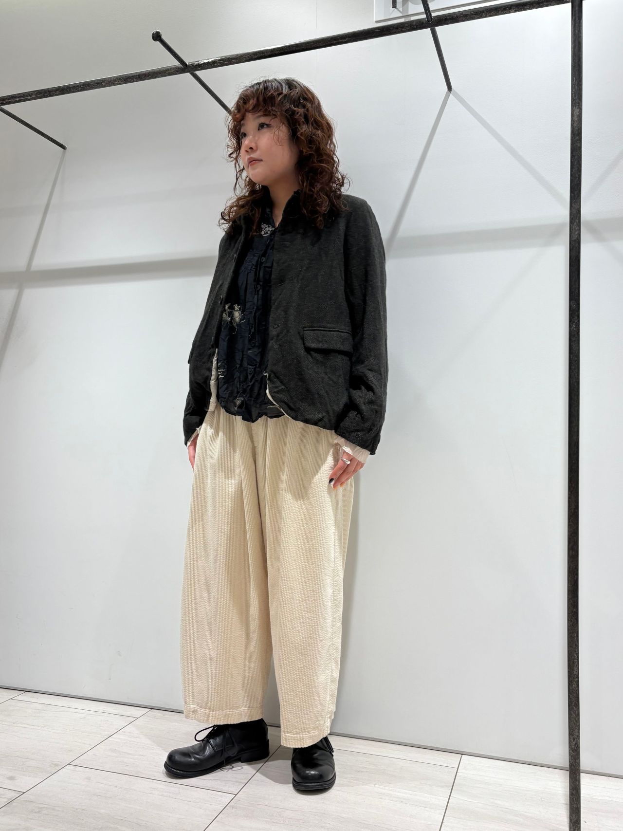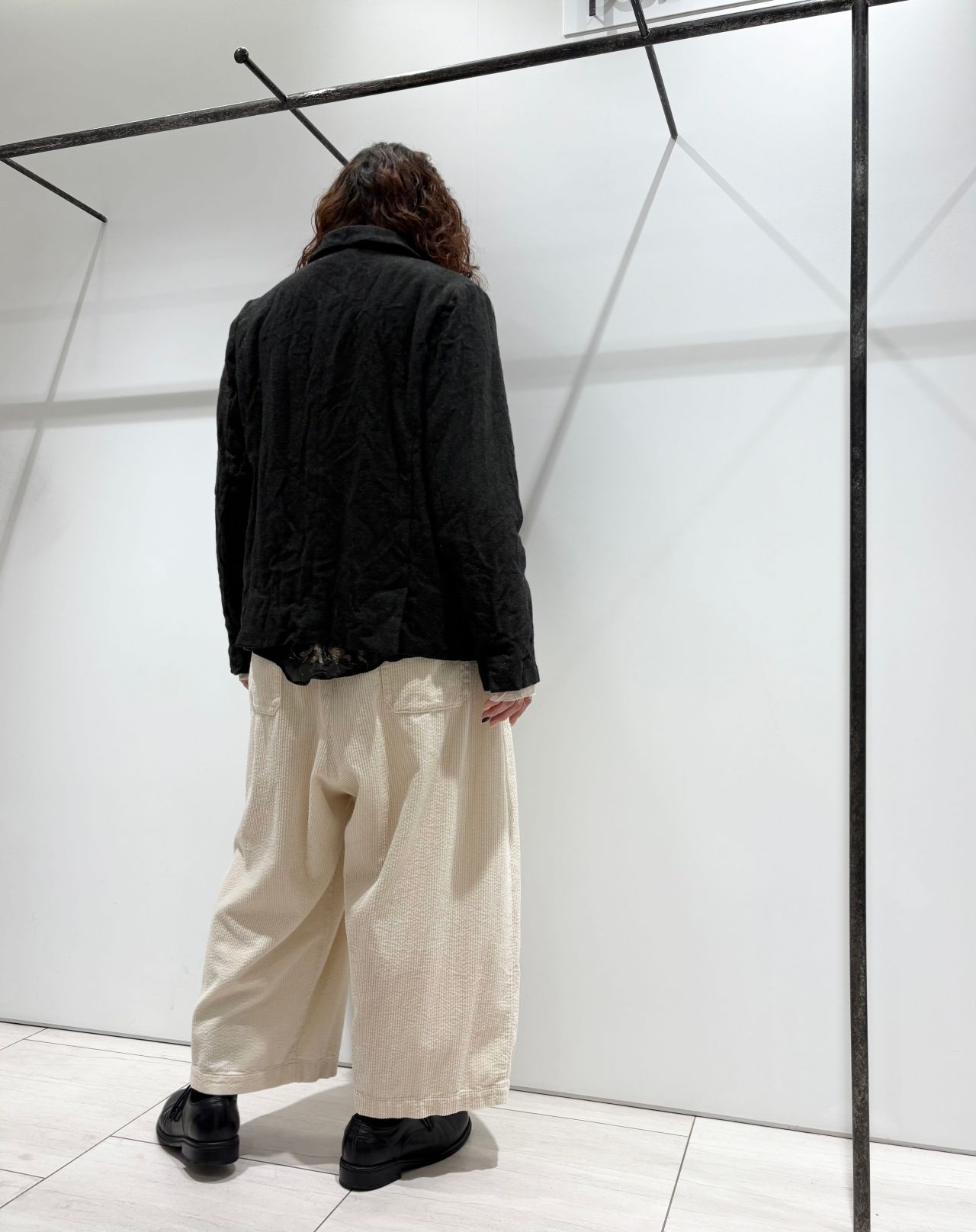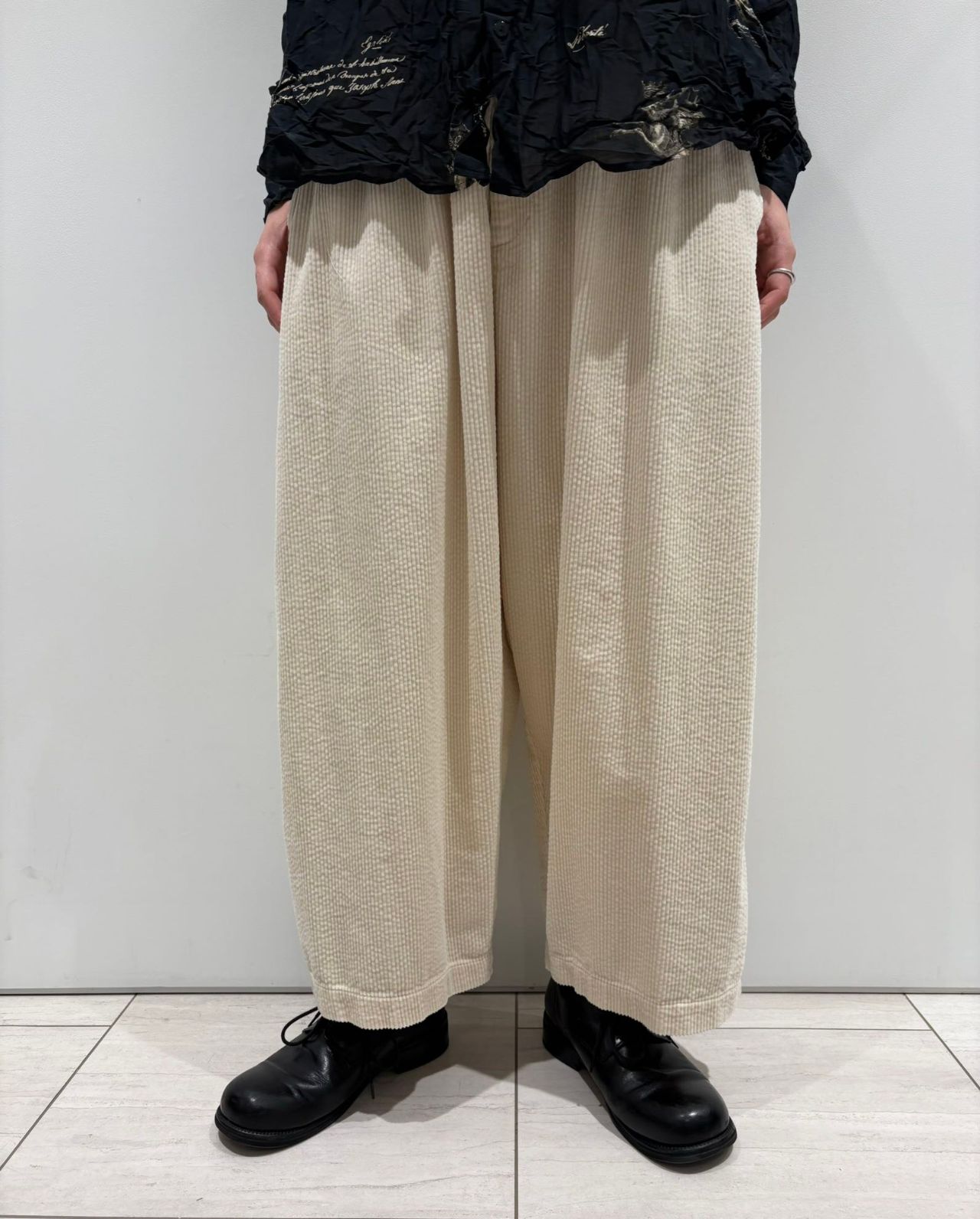 通常のコーデュロイ素材よりもとても柔らかく、軽く、保温性も高い、秋冬にぴったりの素材のパンツ。生地の凹凸感もコーディネートのワンポイントに。