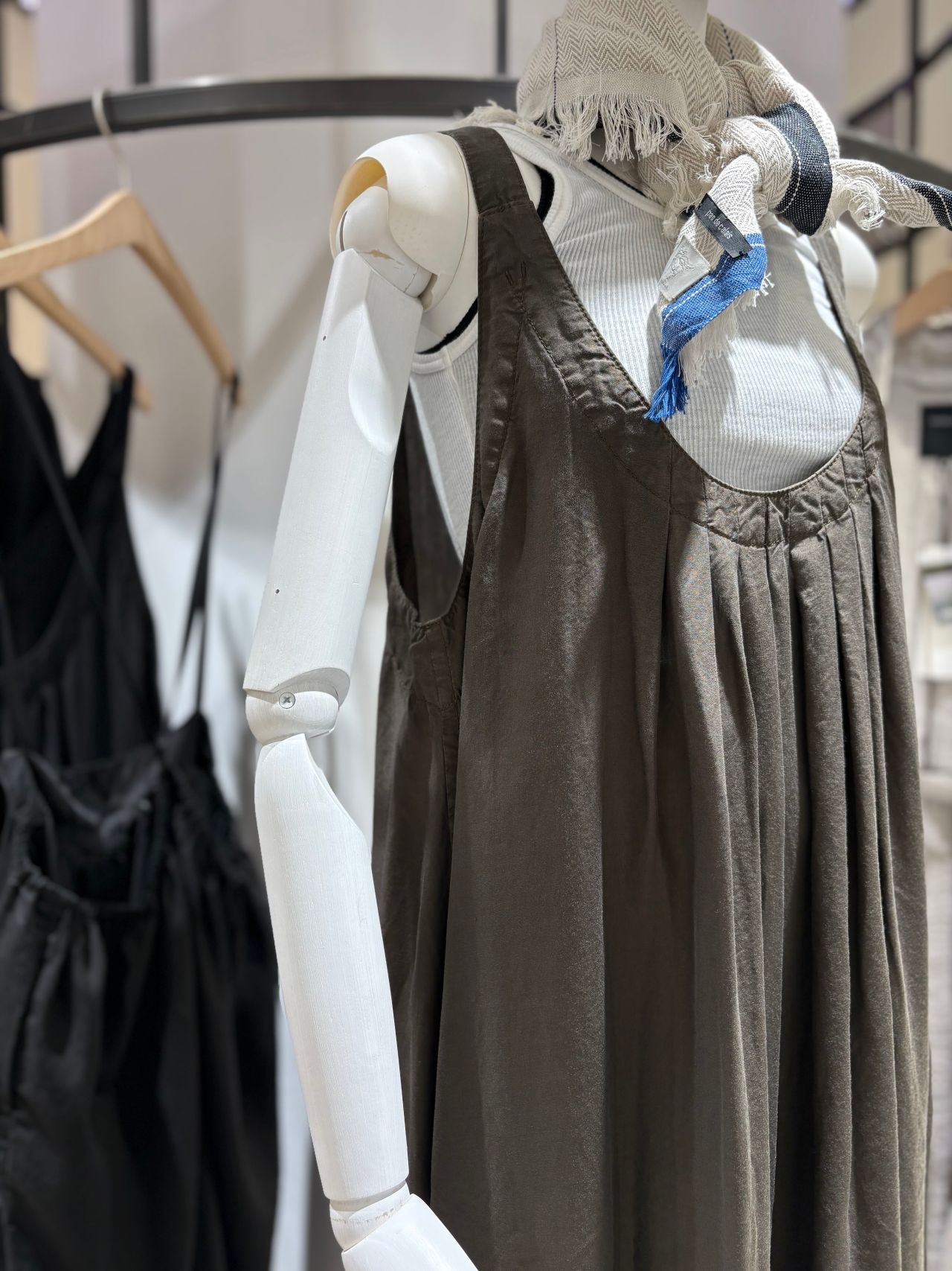 軽く羽織るだけで、スタイリングのワンポイントになるロングジレや、さらに軽い着心地で、今の時期にぴったりなジャンパースカートなど取り揃えております。