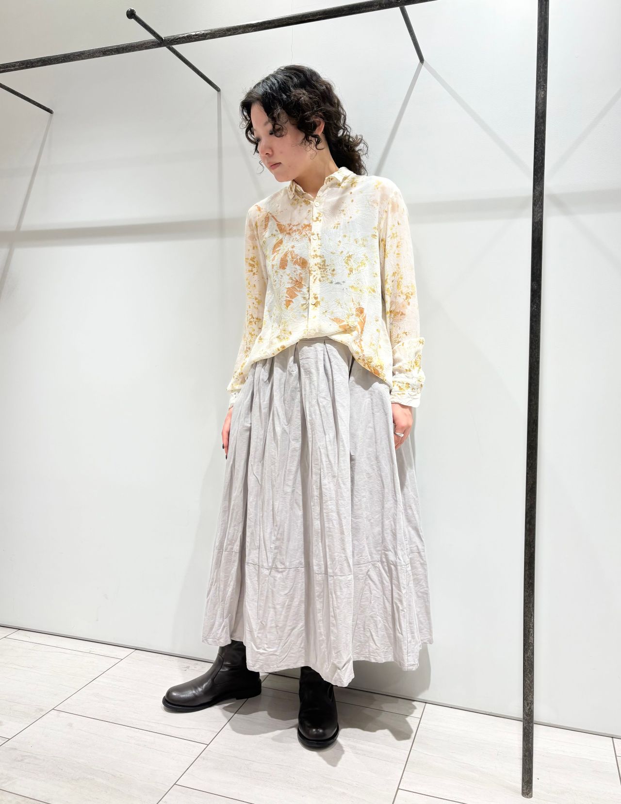上質なカシミヤとシルクのコレクション。キング・オブカシミヤとも呼ばれる、アラシャン・カシミヤを使用している、ムラ染めを施したニット。シルクデシン100%のしっとりとした高級感のある、ワンピース・ブラウス・スカートを展開。期間限定のアイテムですので、ぜひこの機会に店頭にてご覧くださいませ。