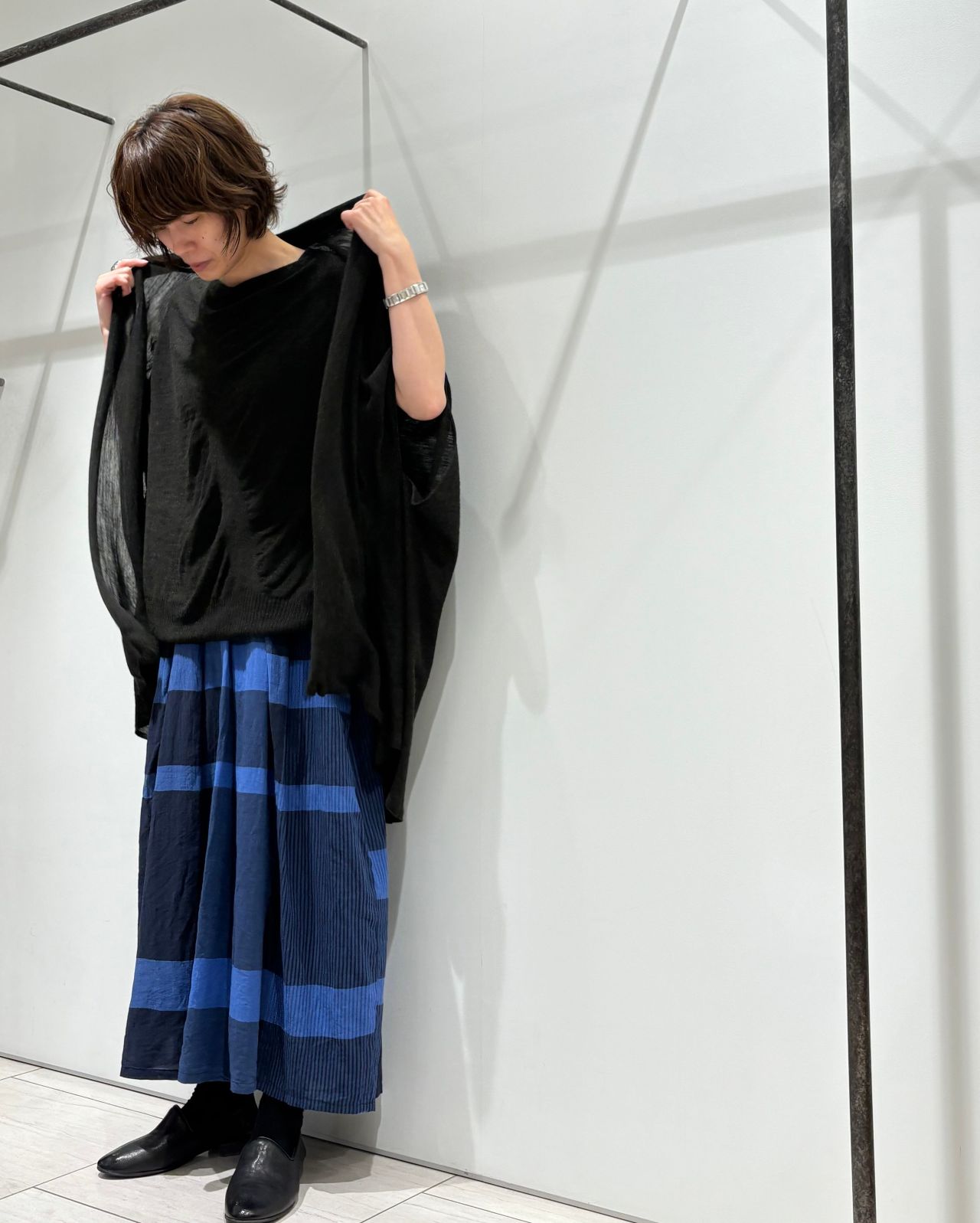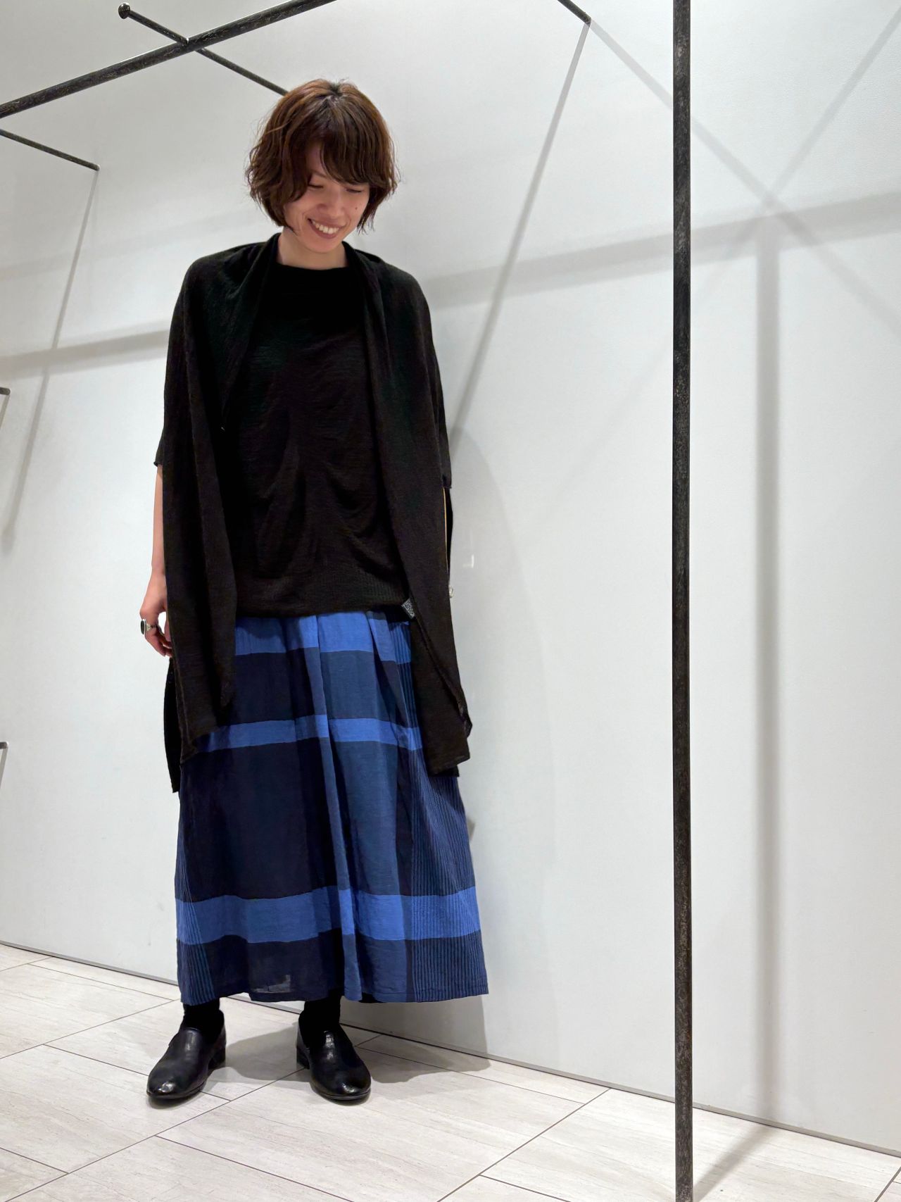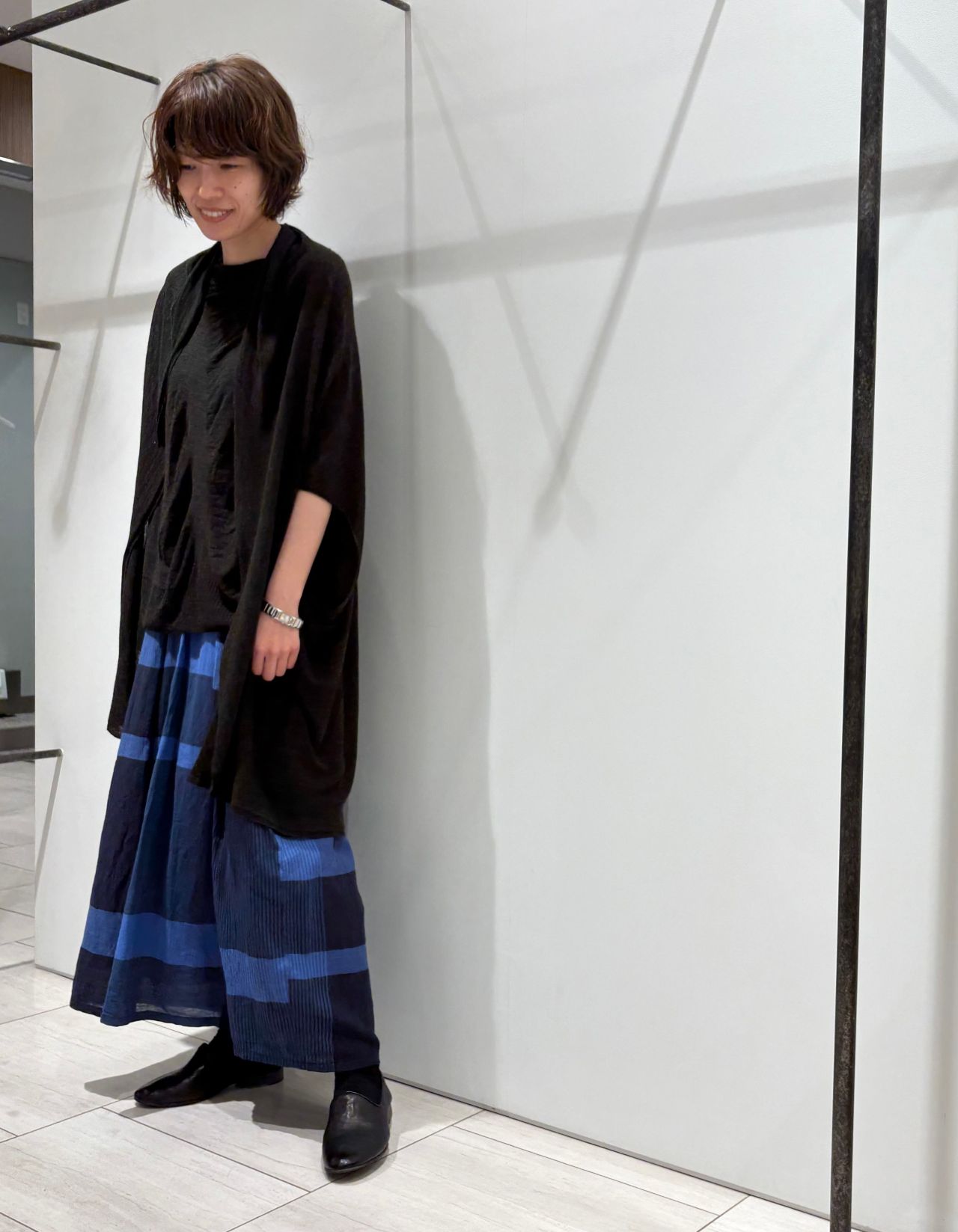 天然植物繊維の麻の風合いを生かしてサラッとして吸湿性に富み、さらにそこにレーヨンのドレープ感をプラスした。製品に洗いをかけることで、手洗い可能となっている。