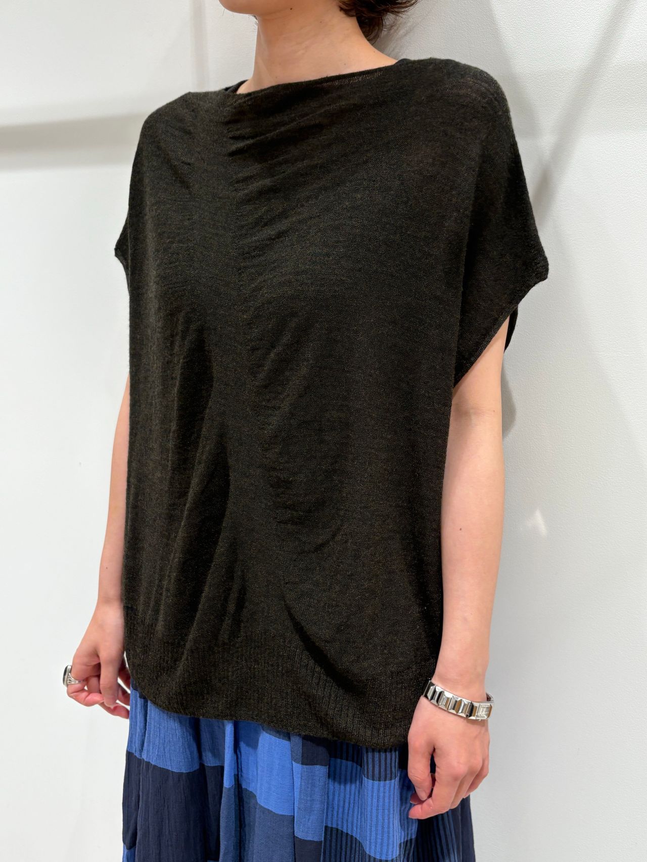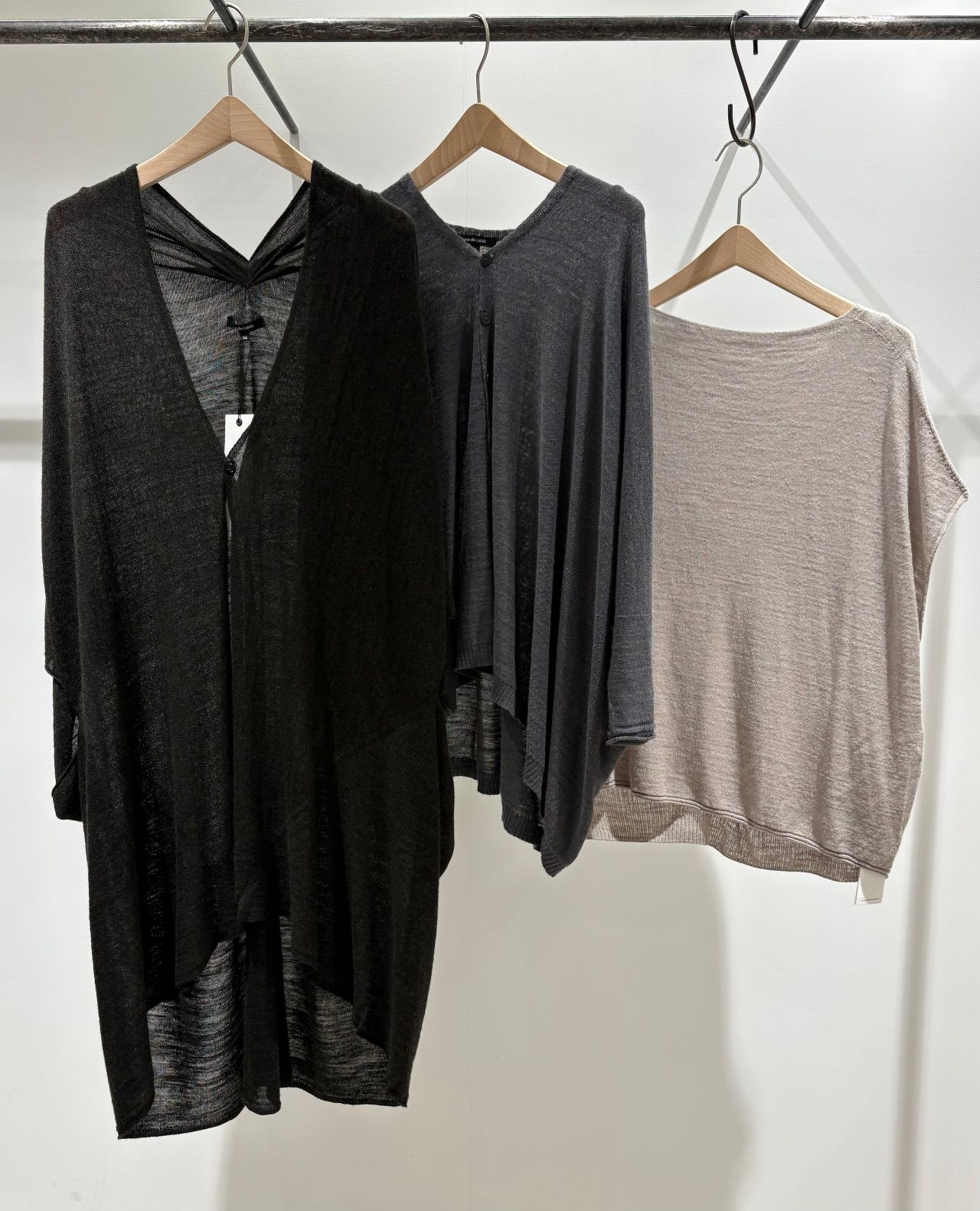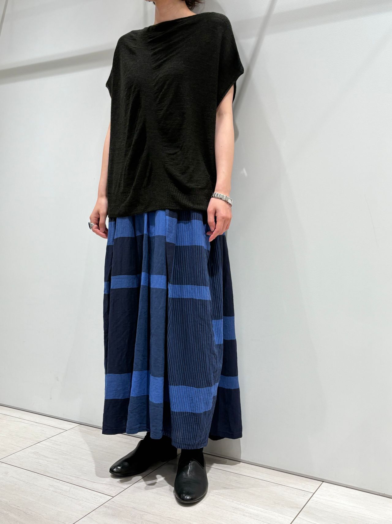 天然植物繊維の麻の風合いを生かしてサラッとして吸湿性に富み、さらにそこにレーヨンのドレープ感をプラスした。製品に洗いをかけることで、手洗い可能となっている。