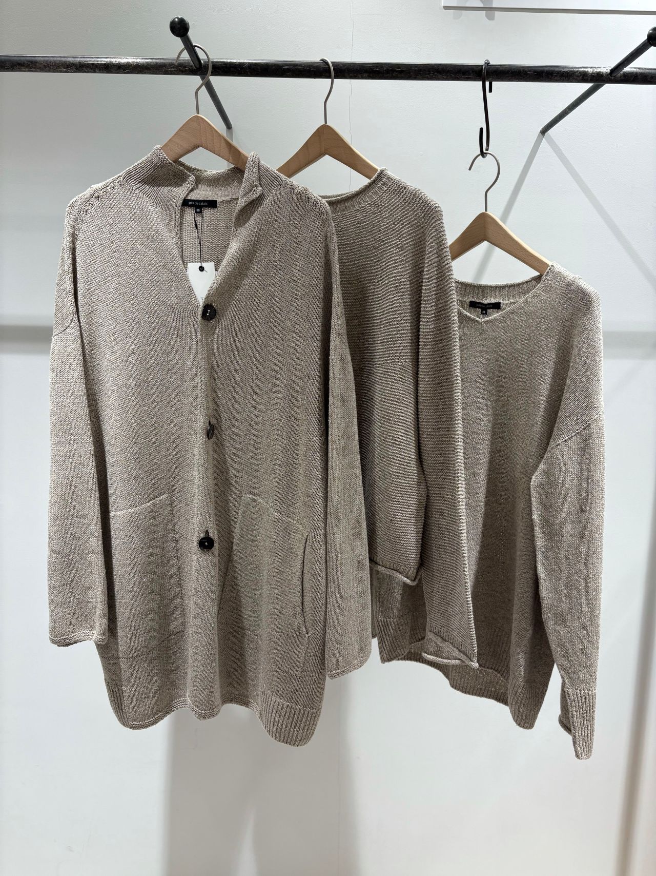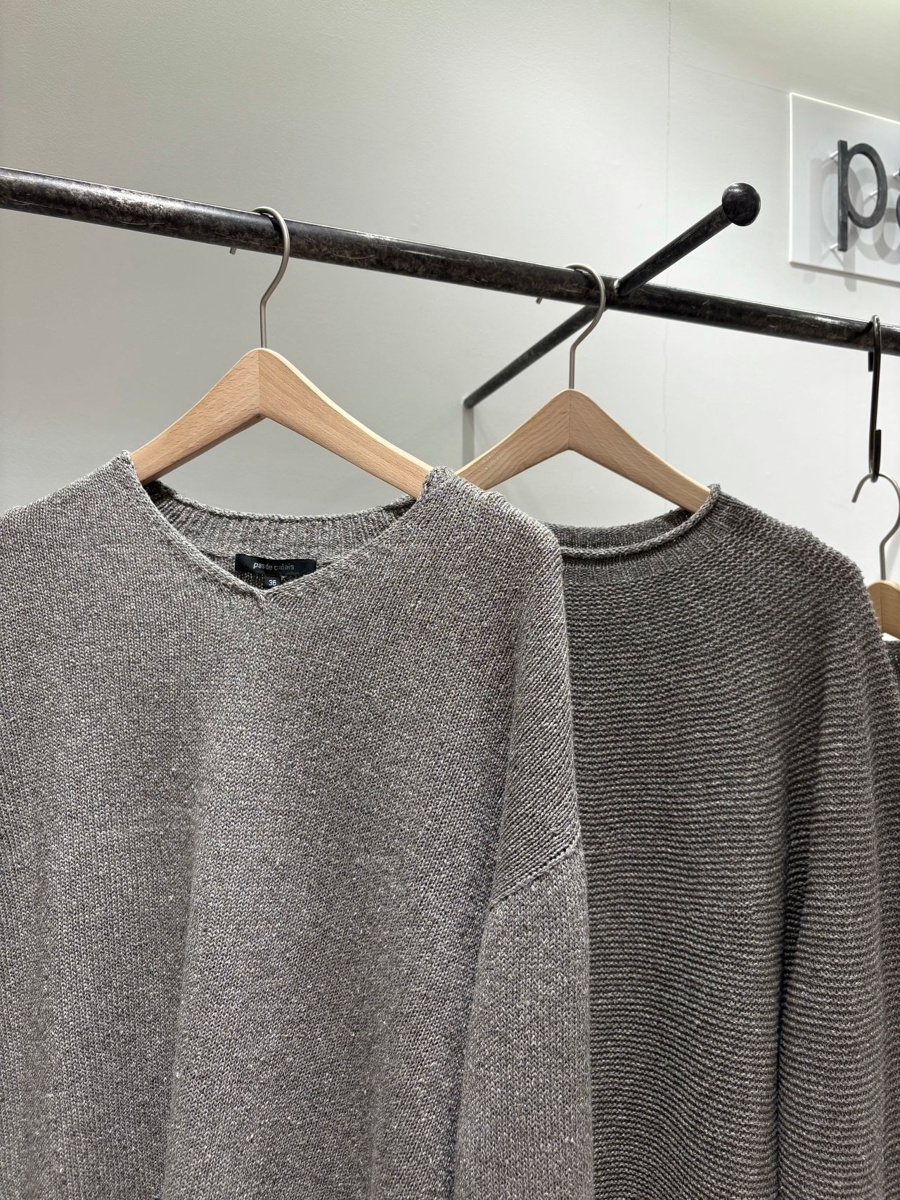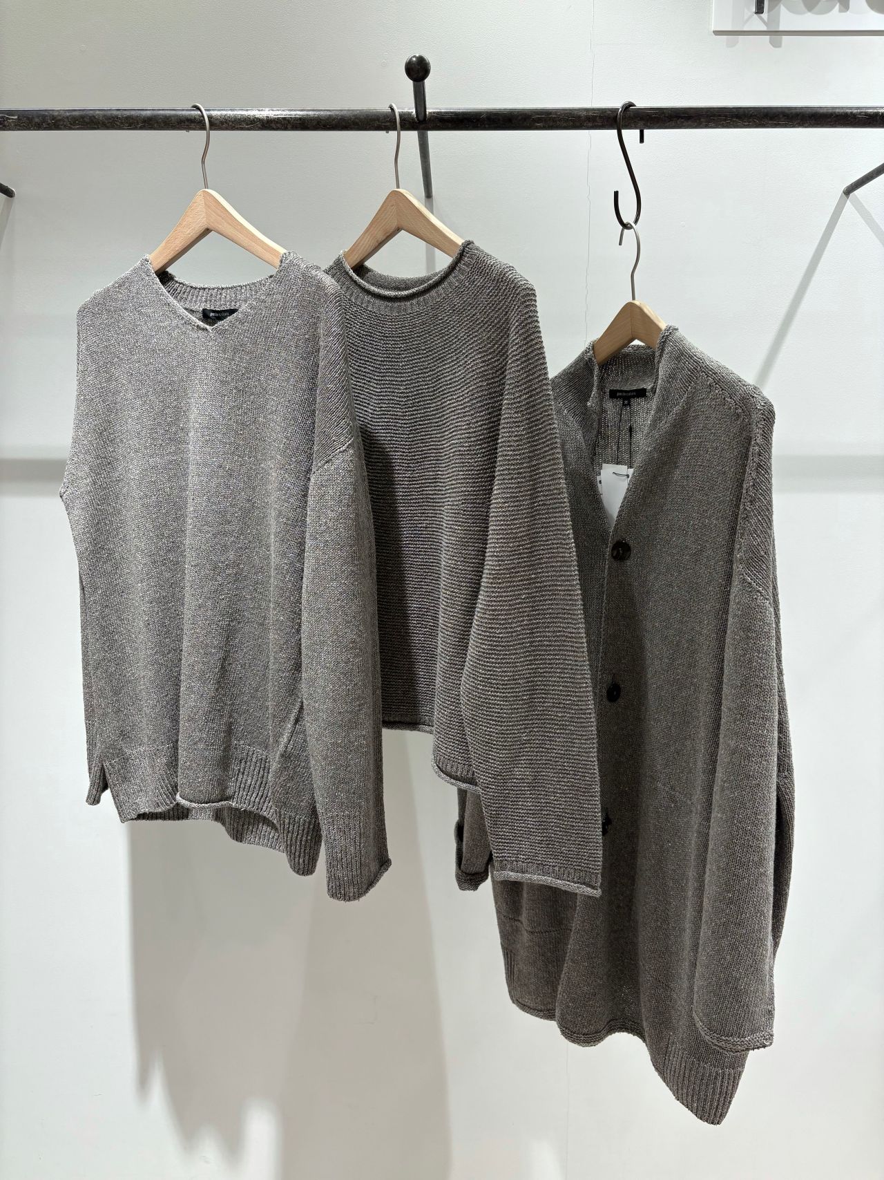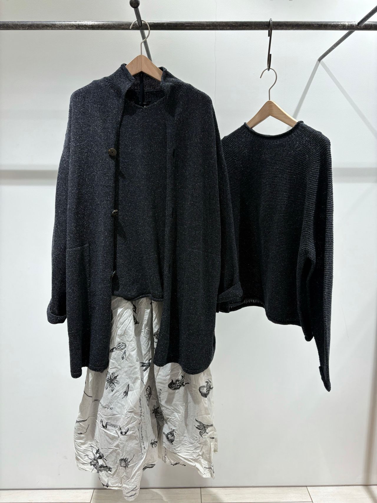 TOP染めのシルクと、ナチュラルリネンを撚り合わせたネップ糸。シルク糸は紡績時の落ち綿を再利用した、環境に優しいエコ素材。4色ブレンドで染色した、深みのある色合いが特徴です。