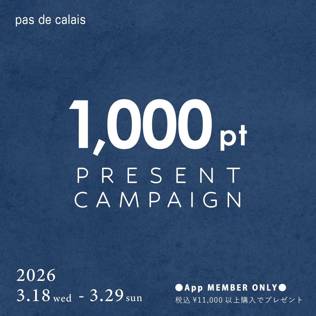 上記の期間中、パドカレアプリ会員限定で、税込¥11,000以上お買い上げの方に1000ptクーポンをプレゼントいたします。(既にアプリ会員の方も対象です)ぜひこの機会にご利用くださいませ。