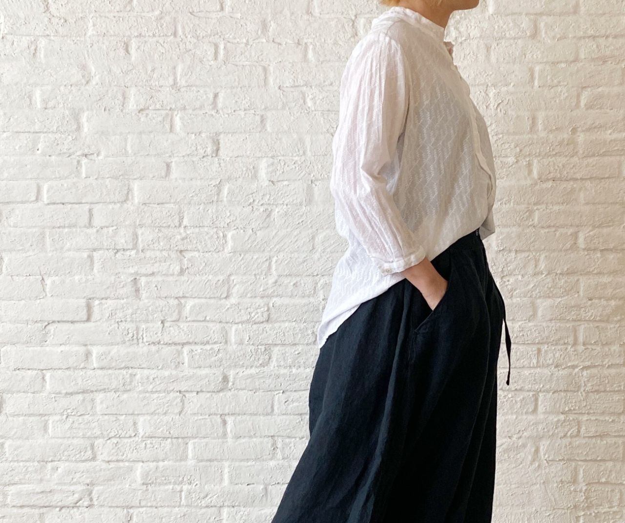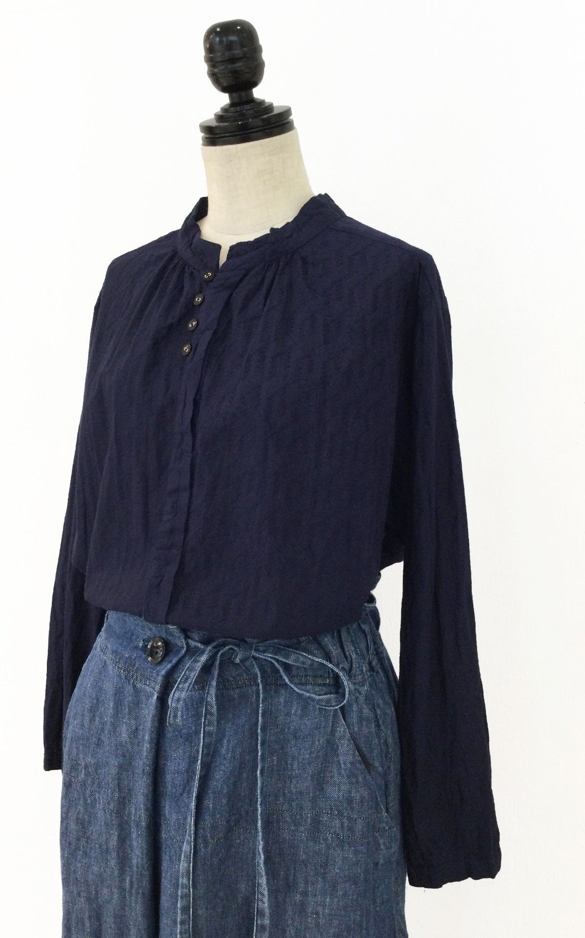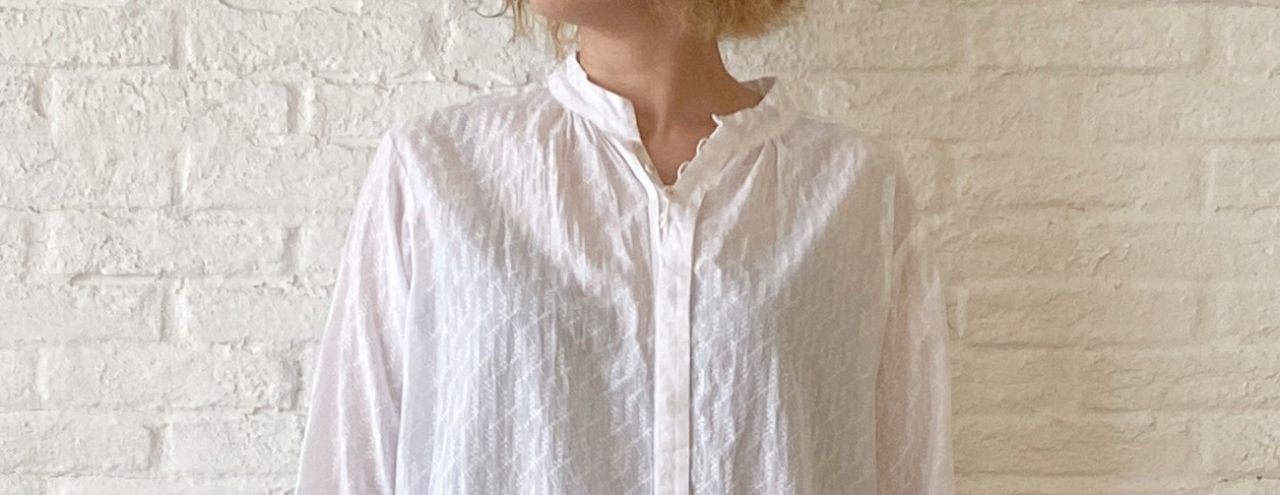 刺繍したような生地を使用したコットンブラウス。