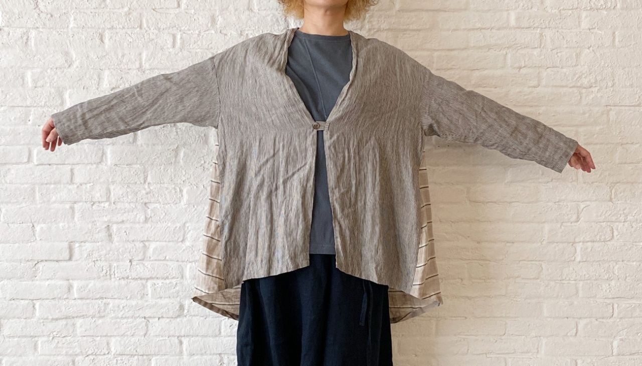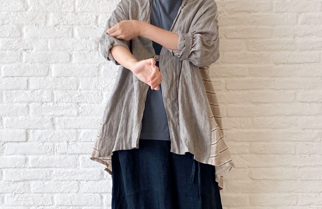 ストライプを切り替えて遊びを入れたシャツジャケット。