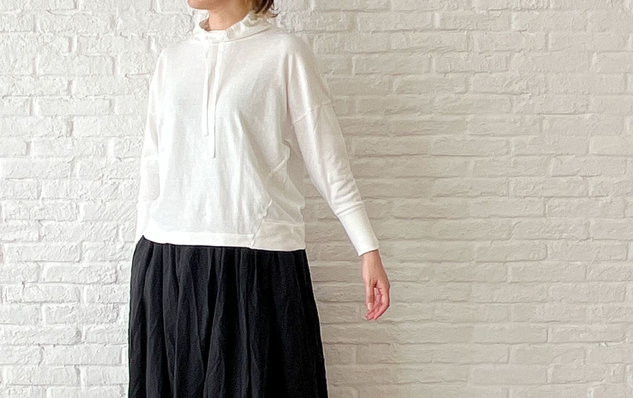 no.1765【SALE 2BUY more 10%OFF】甘撚りネップ天竺 オフハイネックプルオーバー