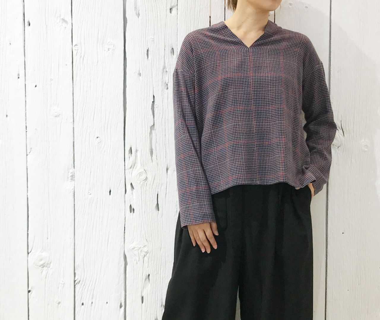 no.6951 リファイングレンチェック プルオーバー