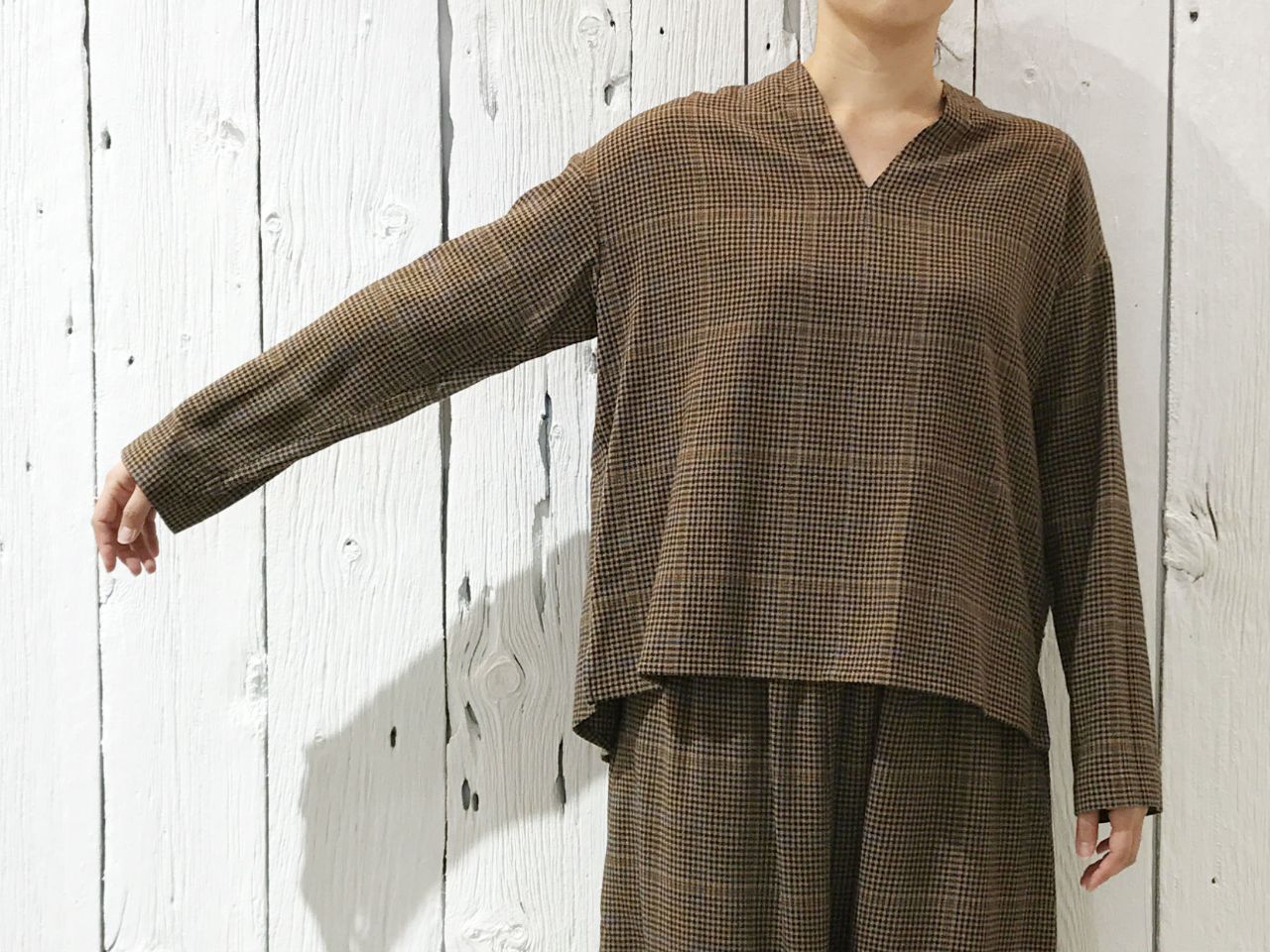 セットアップで着ていただけるブラウスのご紹介です。