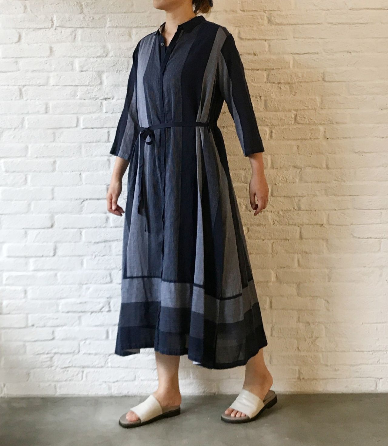 no.4048   ボイル無地&ワイドボーダーワンピース