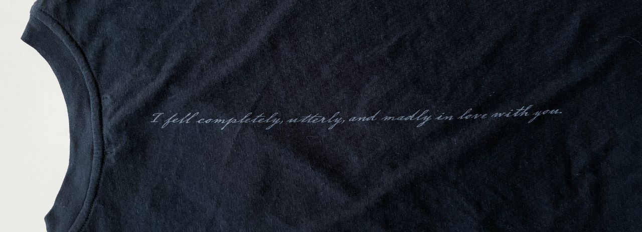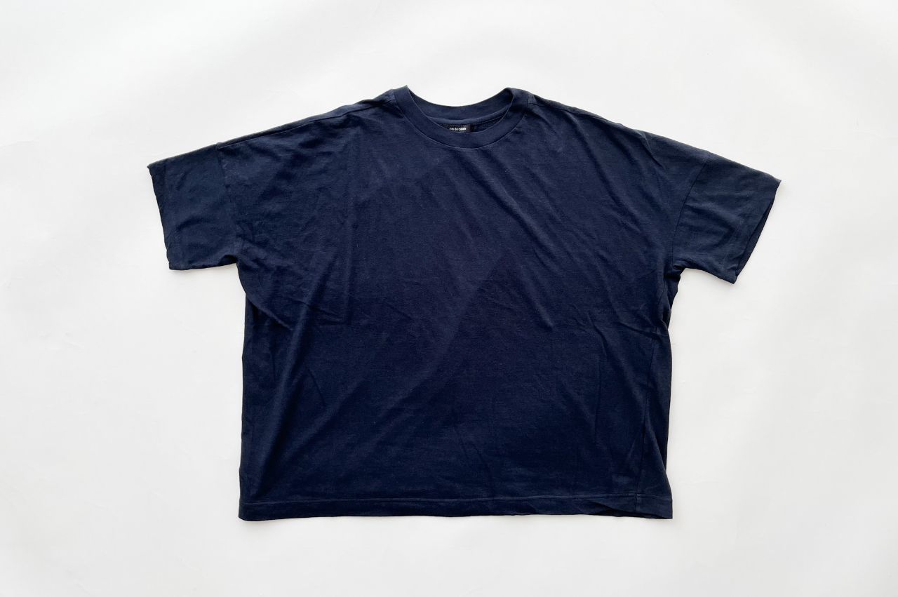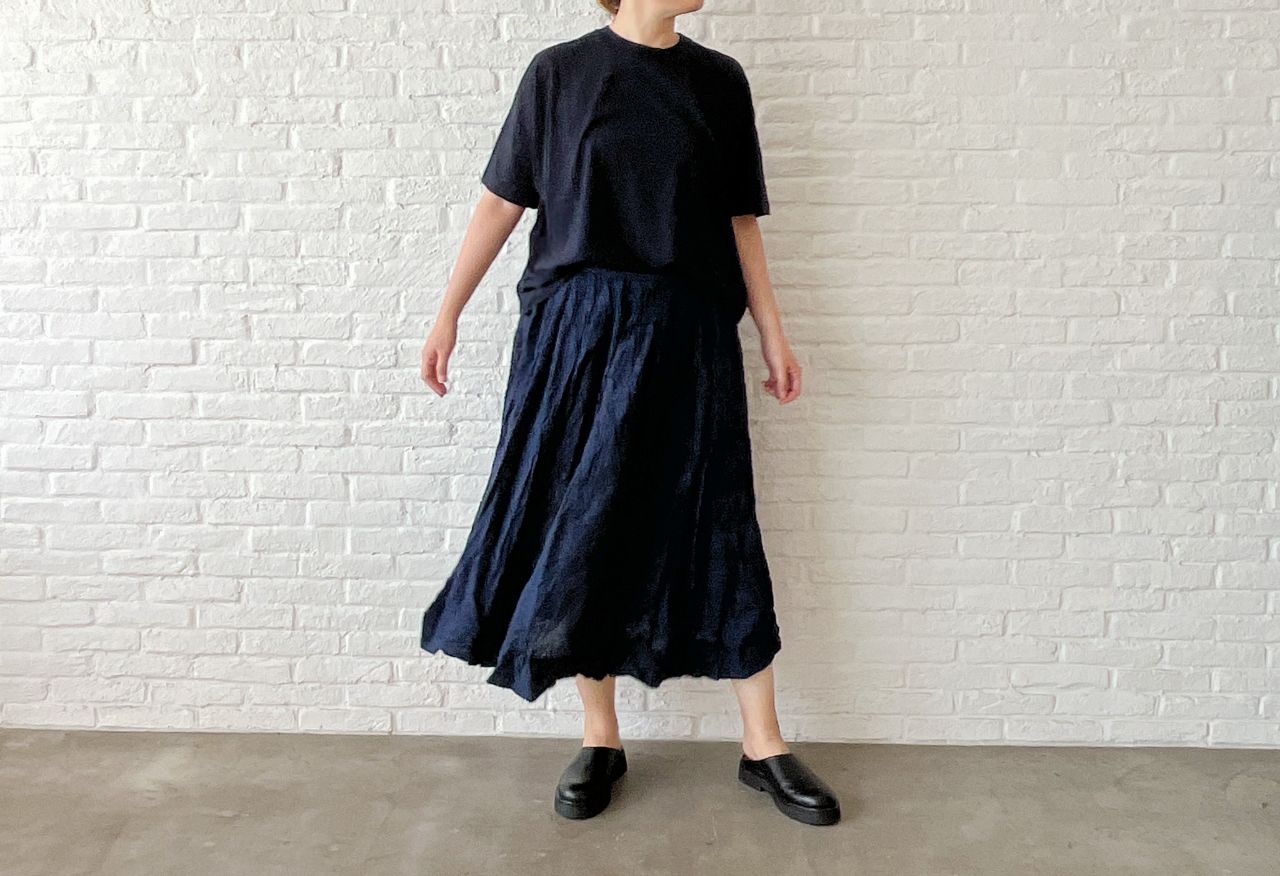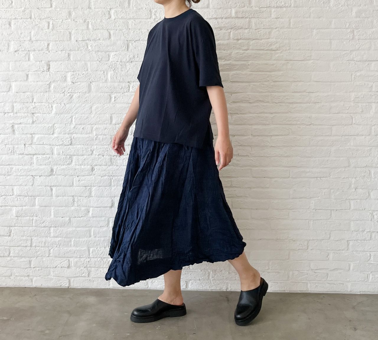 ネイビーのTシャツで『青の世界』を意識しましたが、ホワイト・グレー・クロのモノトーン、ボルドー、ベージュ系と合わせていただいても◎。