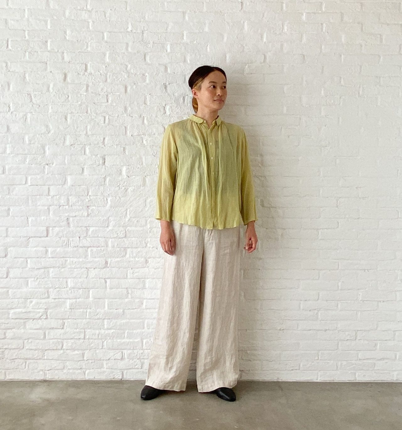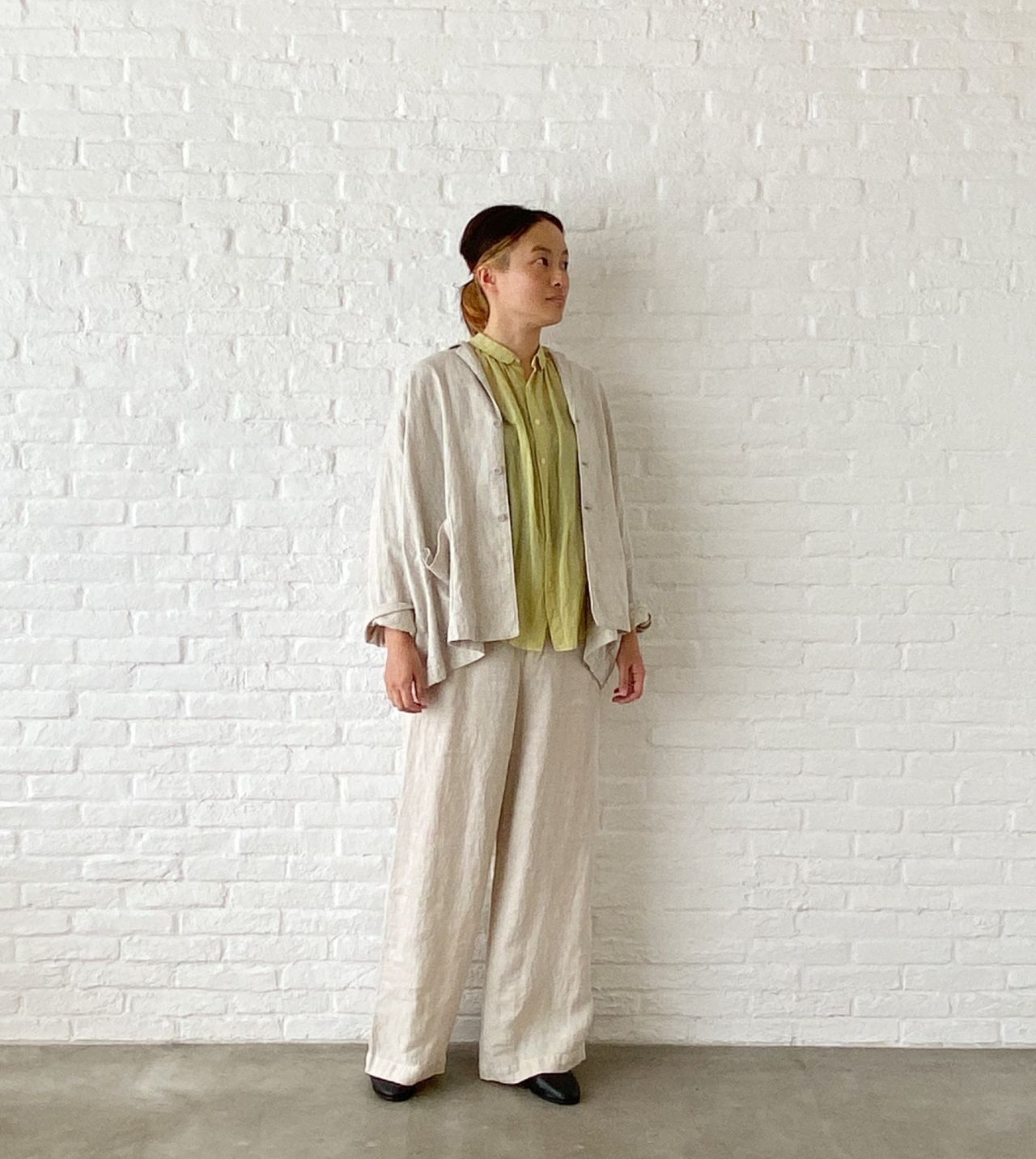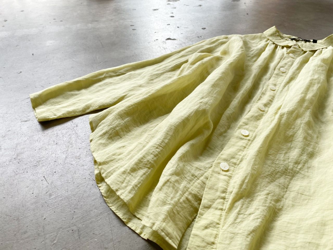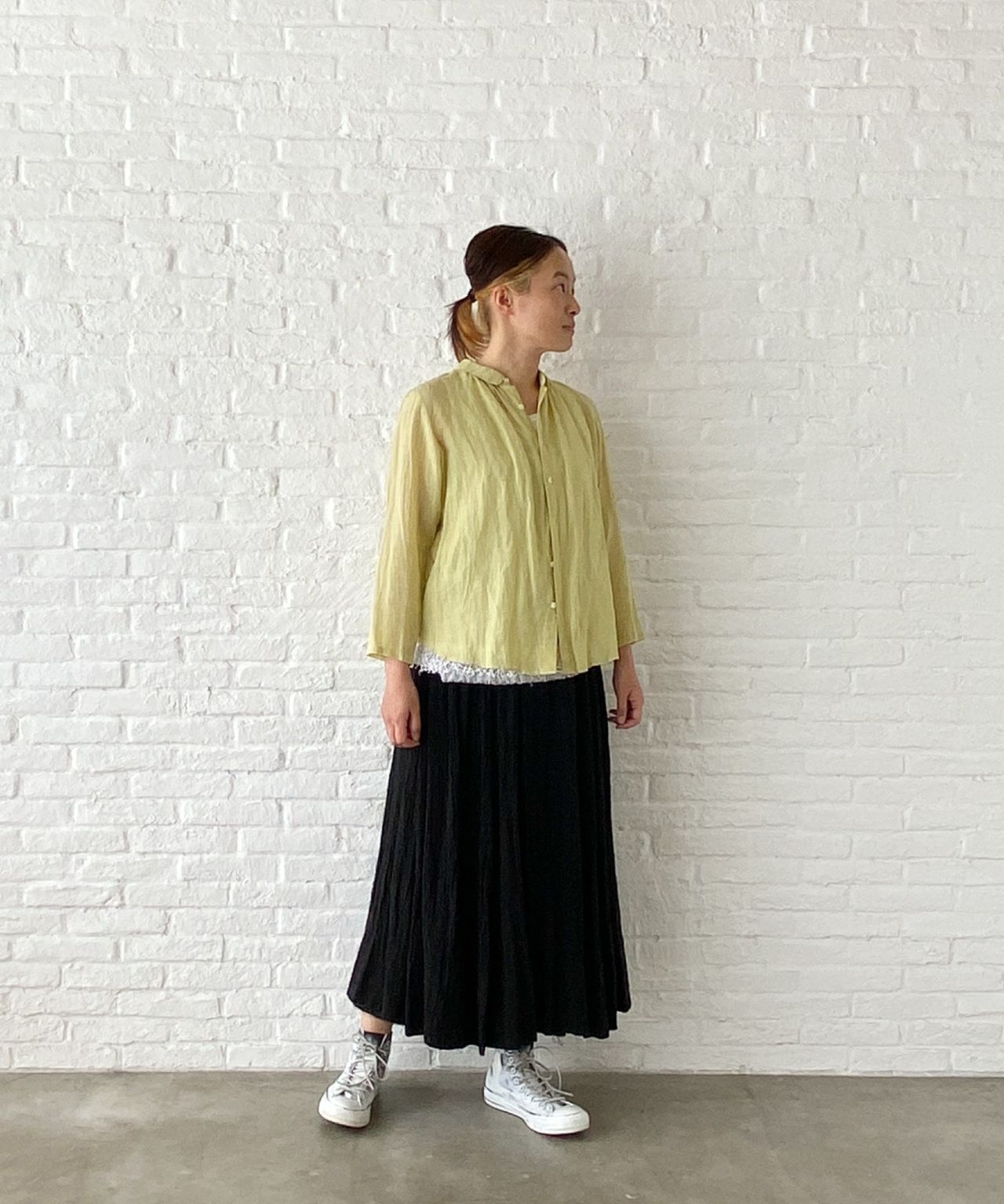 薄手の柔らかな素材感と、イエローの色味が春夏らしい印象に。
