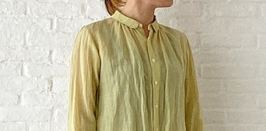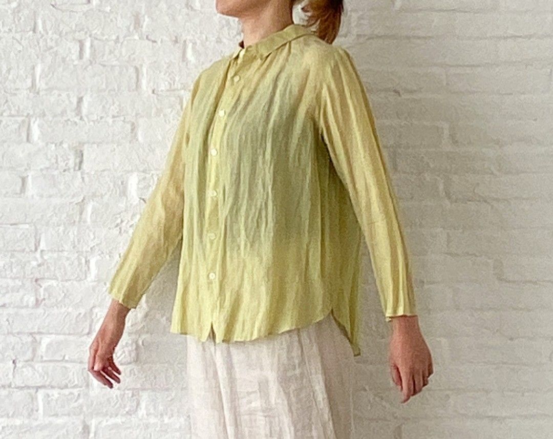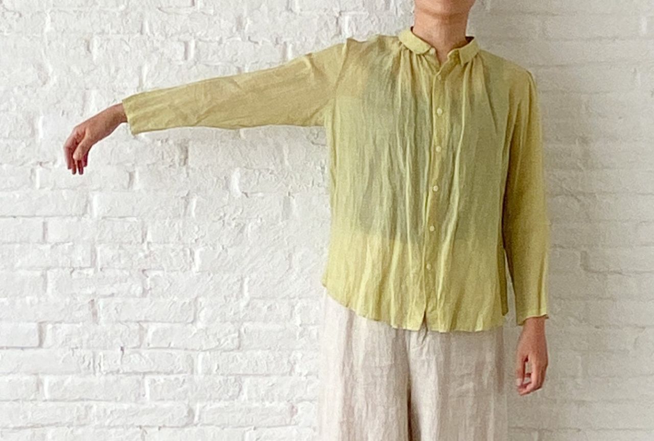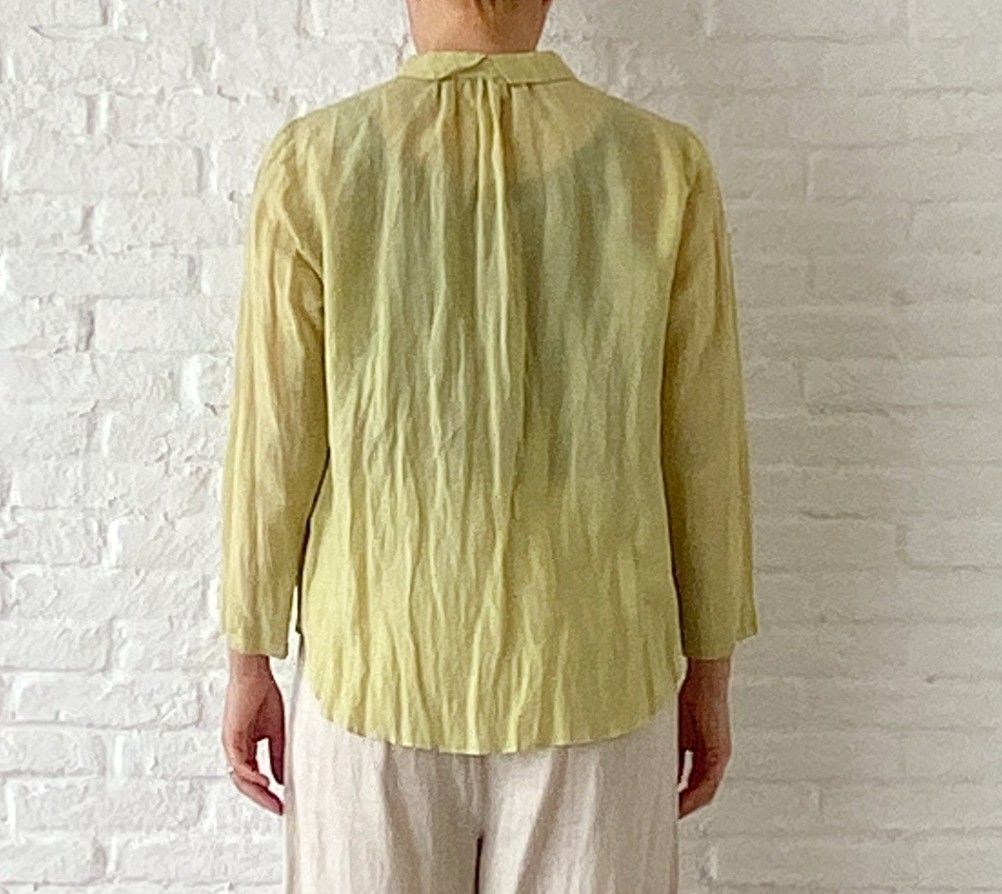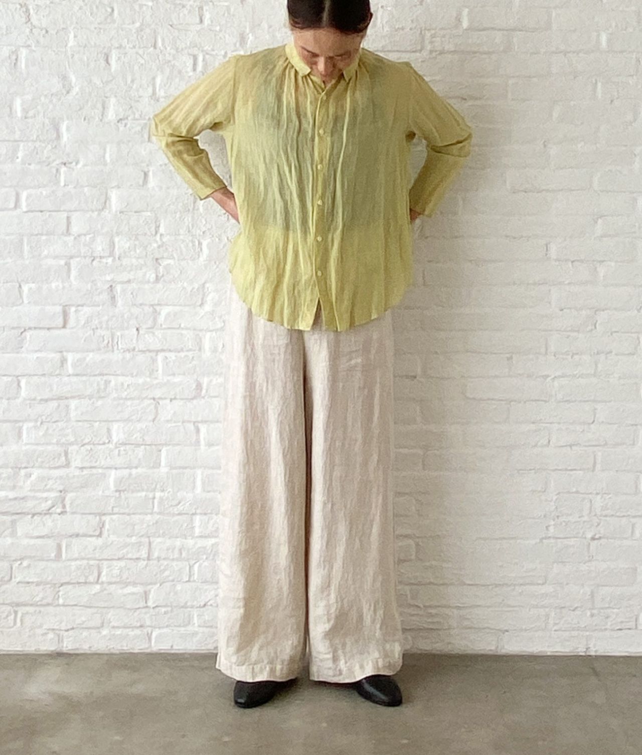 薄手の柔らかな素材感と、イエローの色味が春夏らしい印象に。